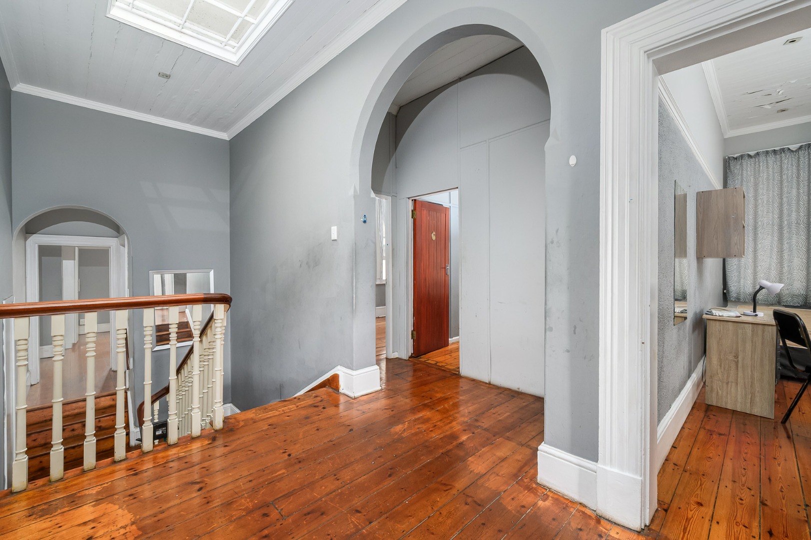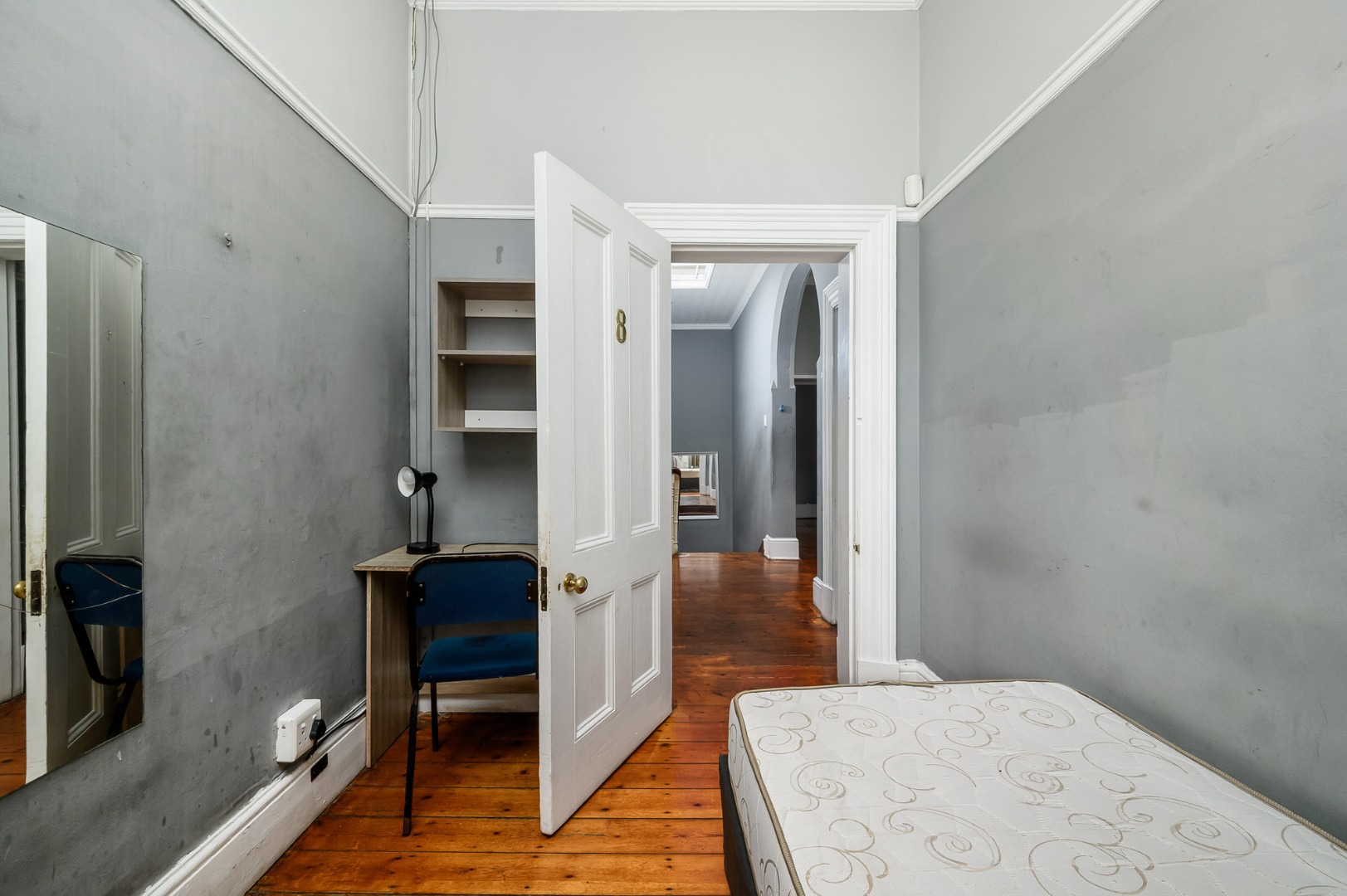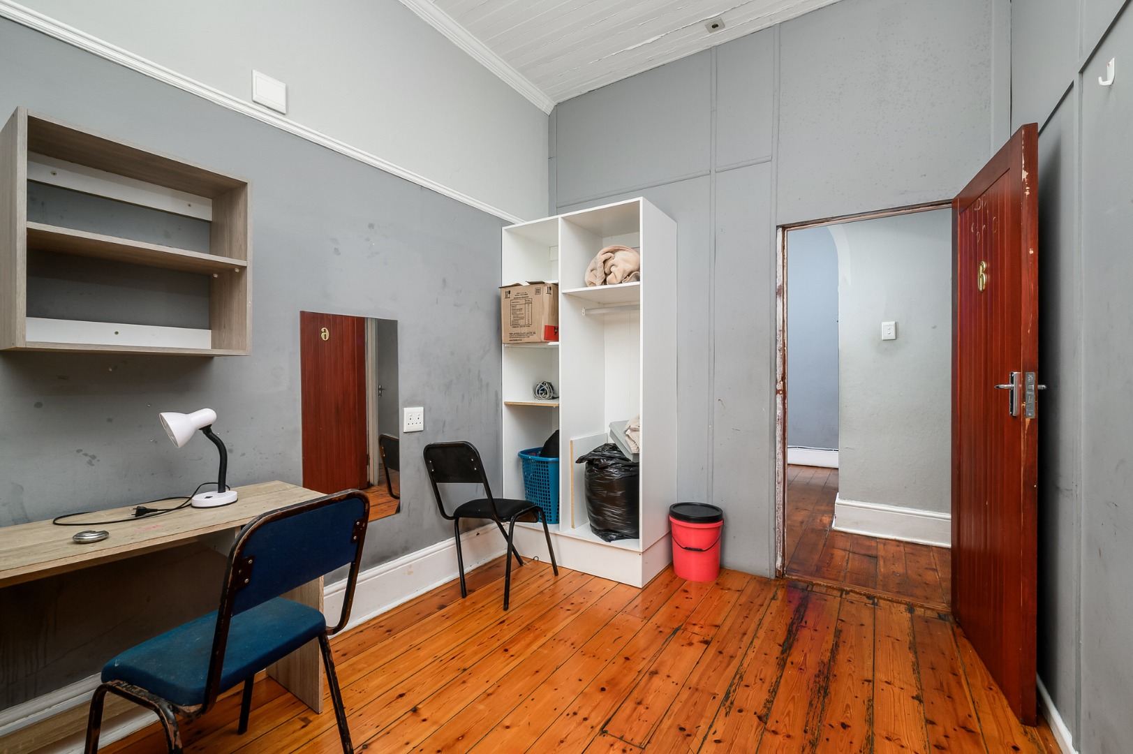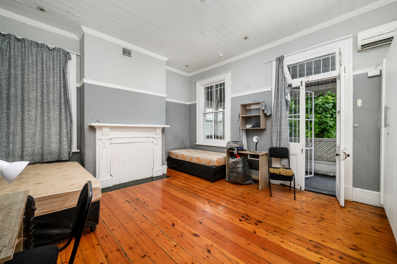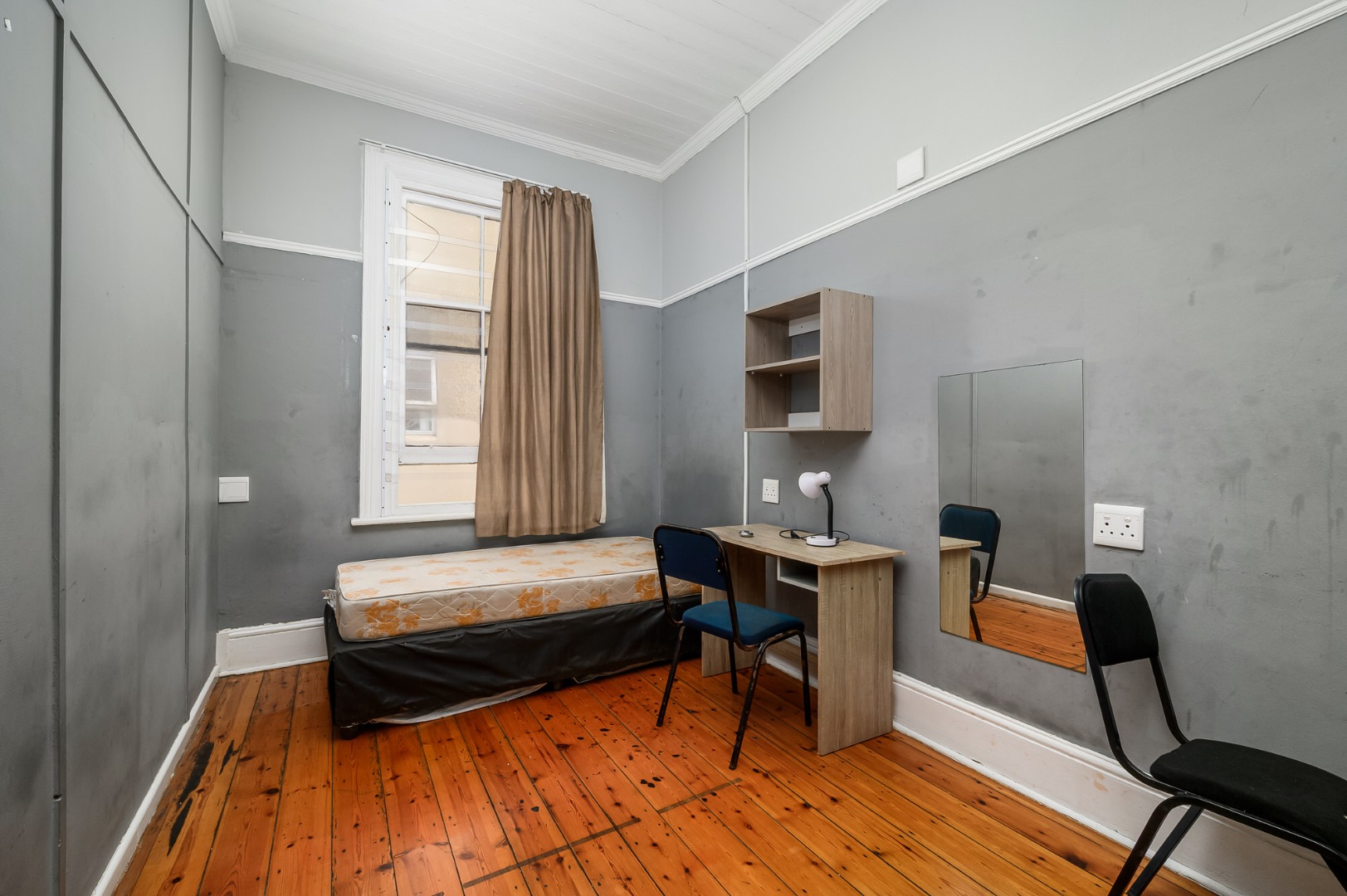 Most of the home features exposed wooden flooring, enhancing both character and durability. The property is double volume, contributing to a sense of space throughout. Four of the seven bedrooms are fitted with air-conditioning units, and built-in cupboards are provided in the bedrooms as well as desks. Accommodation includes a mix of single-occupancy and shared rooms, allowing for flexible rental configurations.