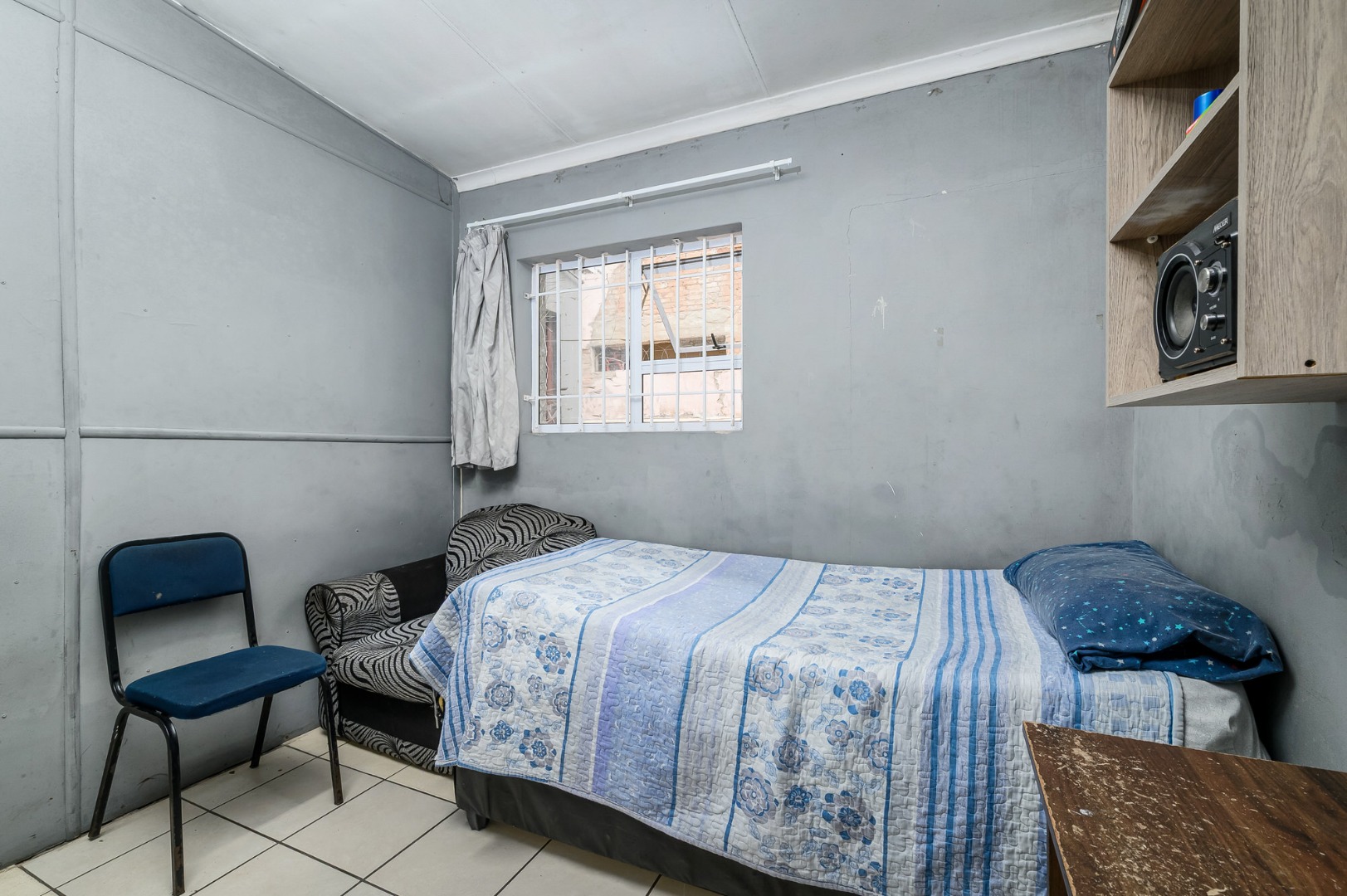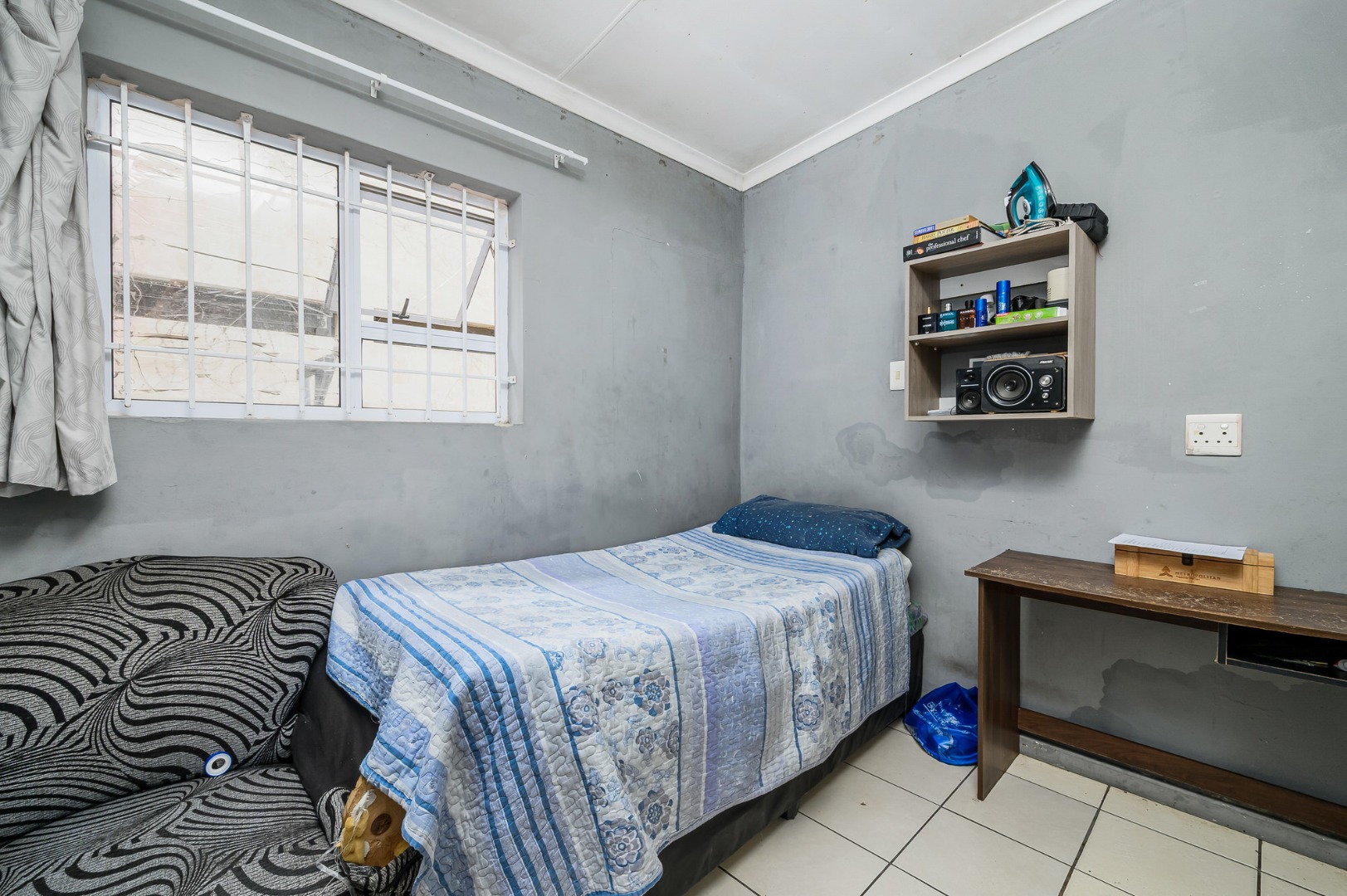 Security is well considered, with security gates, burglar bars, and an alarm system in place.