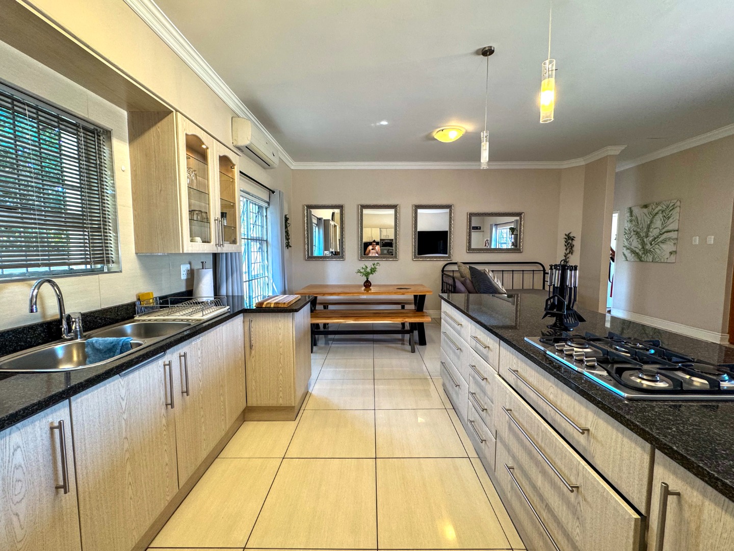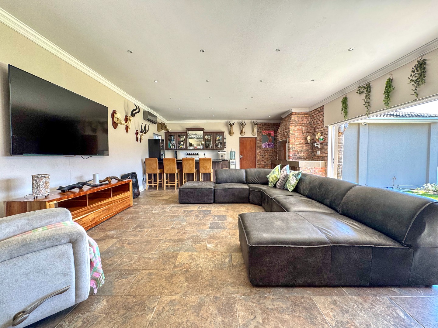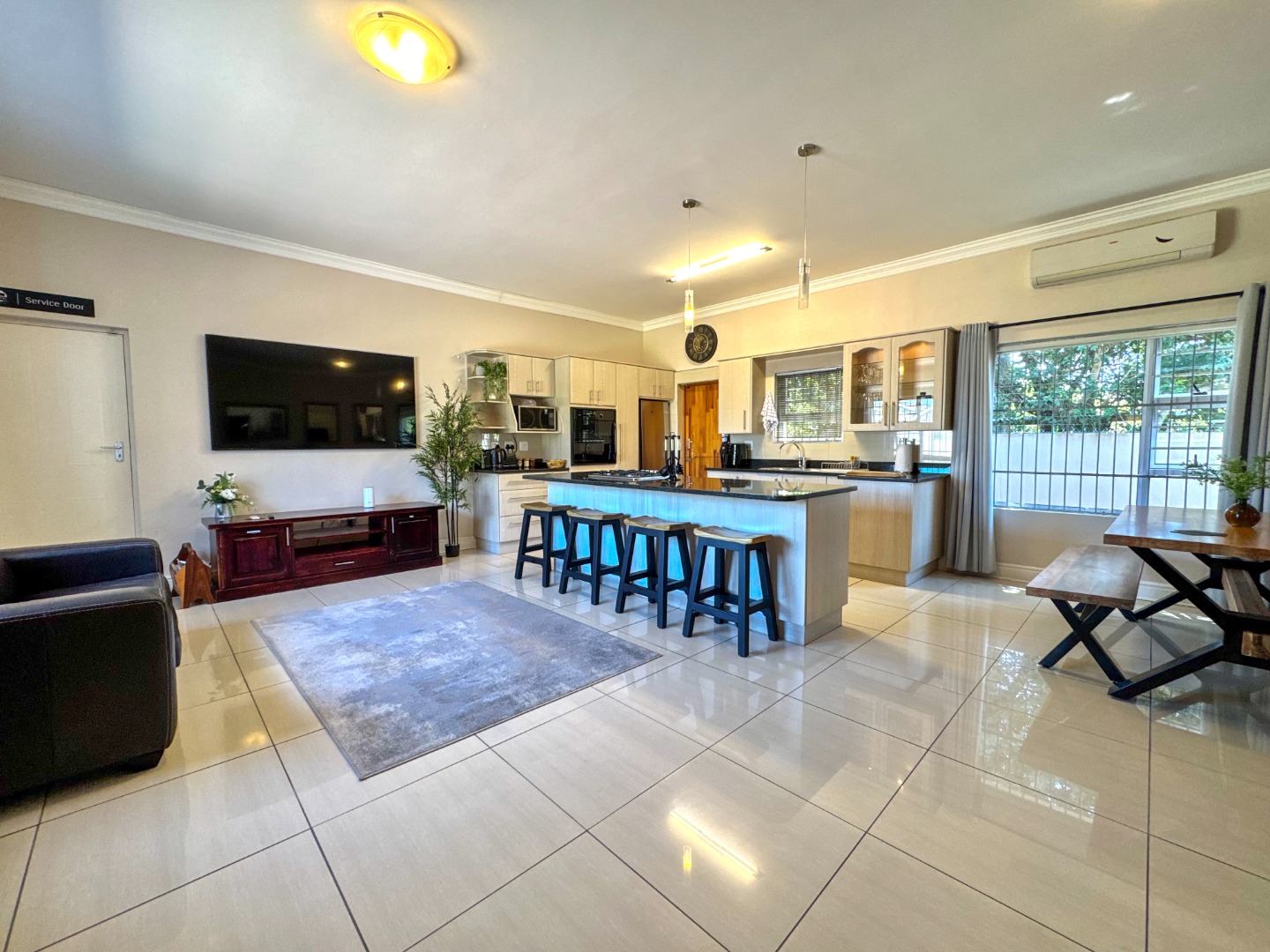 Energy autonomy is guaranteed with a 26.4 kW inverter, 80 kW battery bank, and 35 kW solar array valued at R1.2 million. A 6 500 L/hour borehole with a 20 000 L filtration system ensures a clean, sustainable water supply. With 11 air conditioners and three hot-water systems (two solar, one heat pump), the home is designed for year-round comfort.