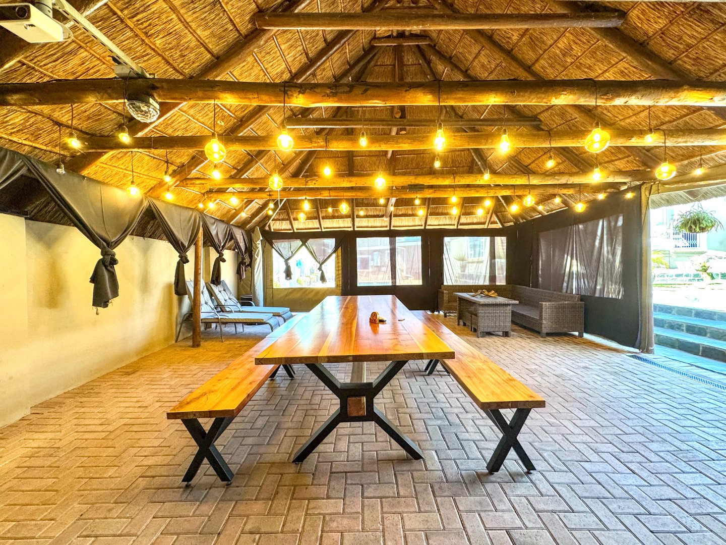 A stylish entertainment lapa and pool area comfortably seat up to 22 guests, perfect for relaxed weekends or corporate gatherings. The property offers 11 parking bays, a double-volume workshop (easily converted to guest suites or offices), and a single garage currently utilised as an office.