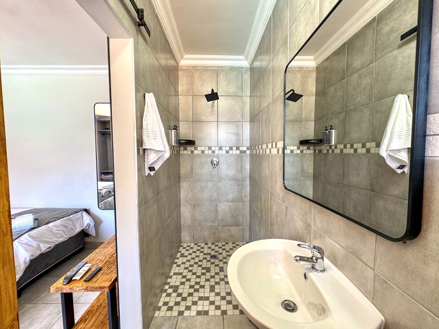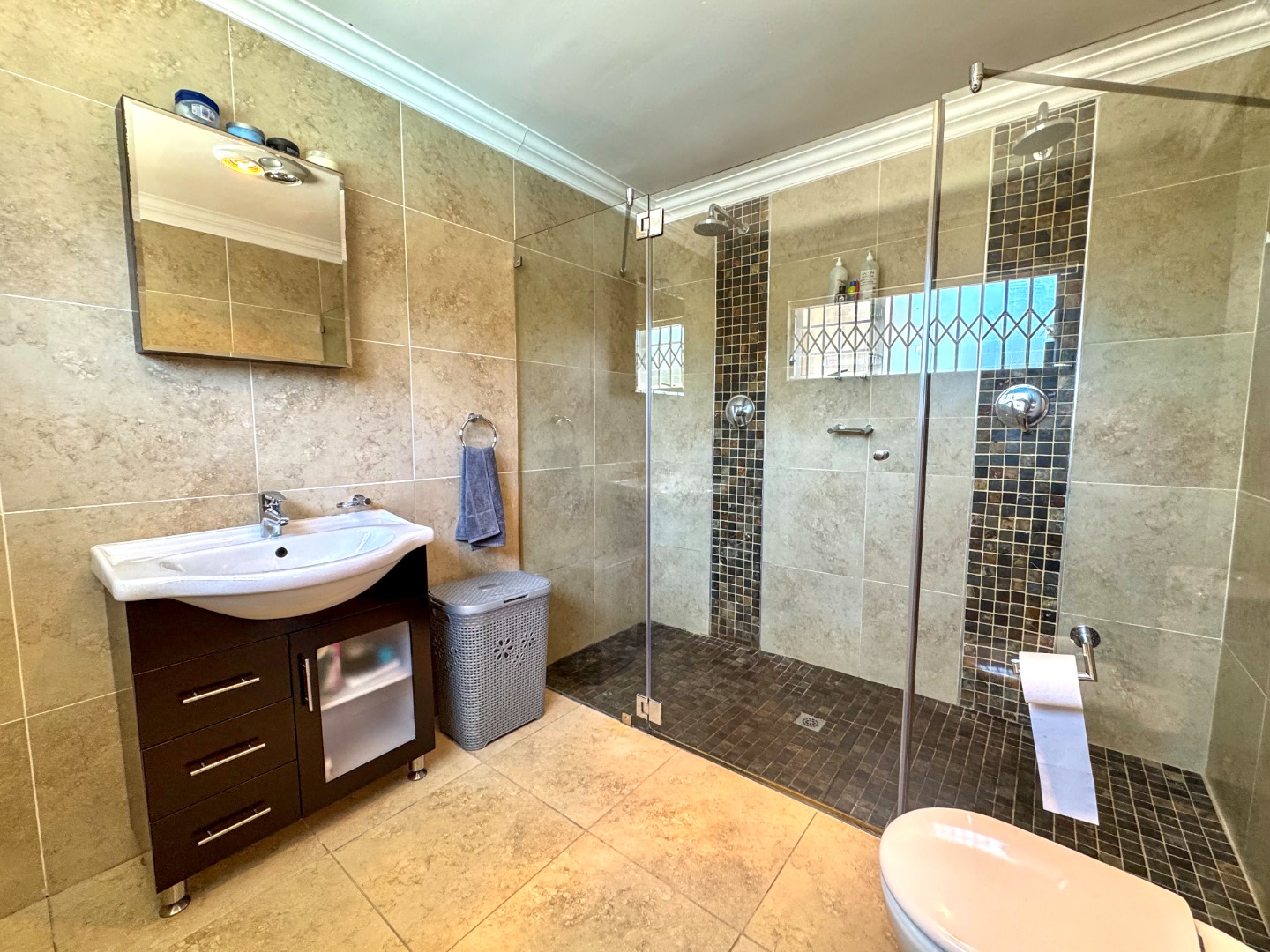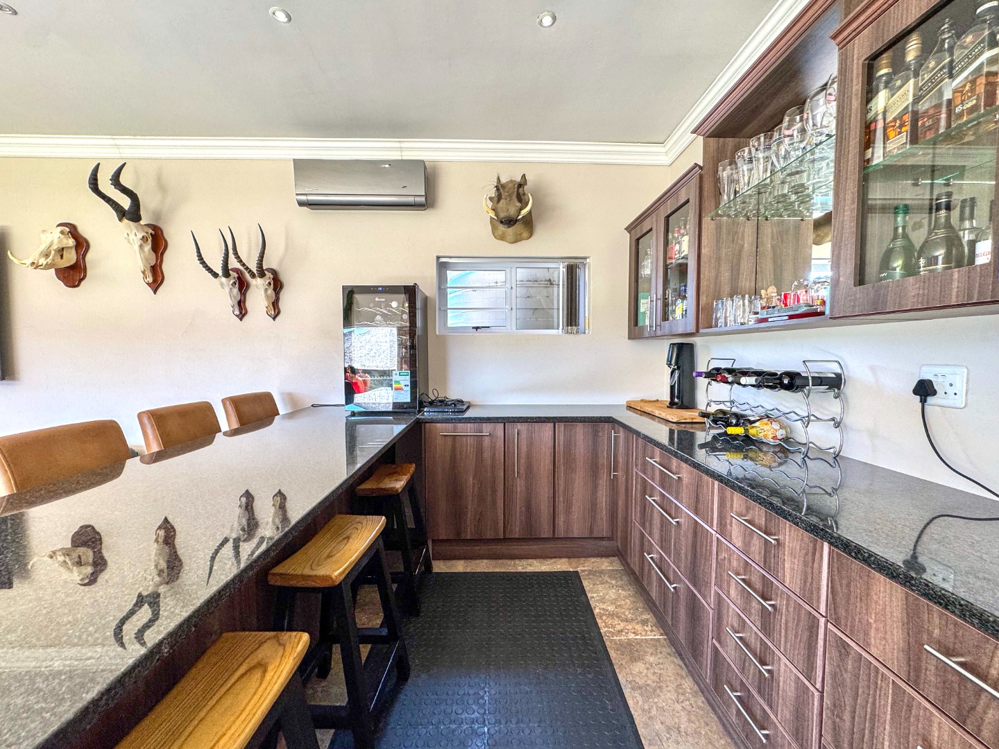 Energy autonomy is guaranteed with a 26.4 kW inverter, 80 kW battery bank, and 35 kW solar array valued at R1.2 million. A 6 500 L/hour borehole with a 20 000 L filtration system ensures a clean, sustainable water supply. With 11 air conditioners and three hot-water systems (two solar, one heat pump), the home is designed for year-round comfort.