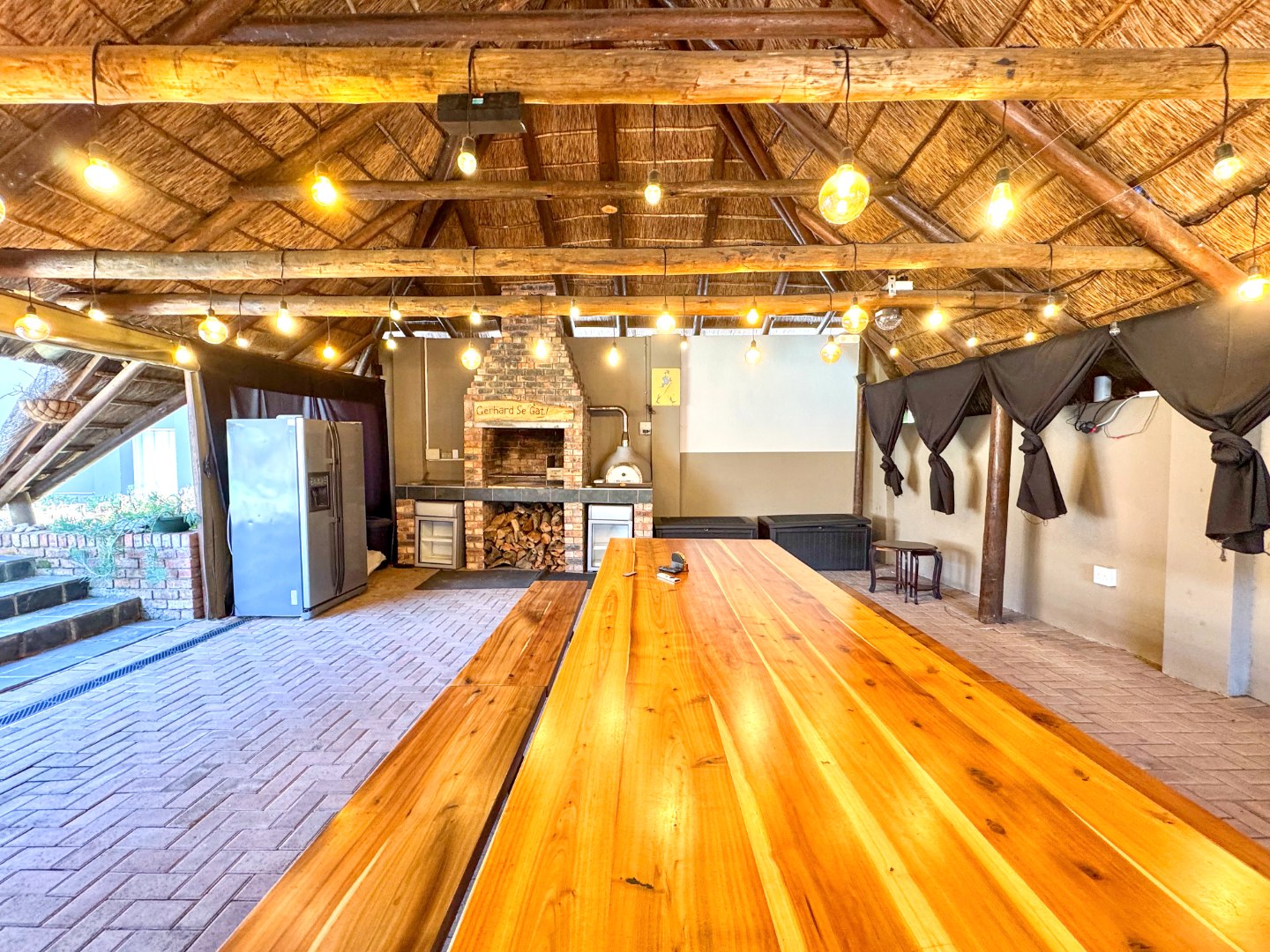 A stylish entertainment lapa and pool area comfortably seat up to 22 guests, perfect for relaxed weekends or corporate gatherings. The property offers 11 parking bays, a double-volume workshop (easily converted to guest suites or offices), and a single garage currently utilised as an office.