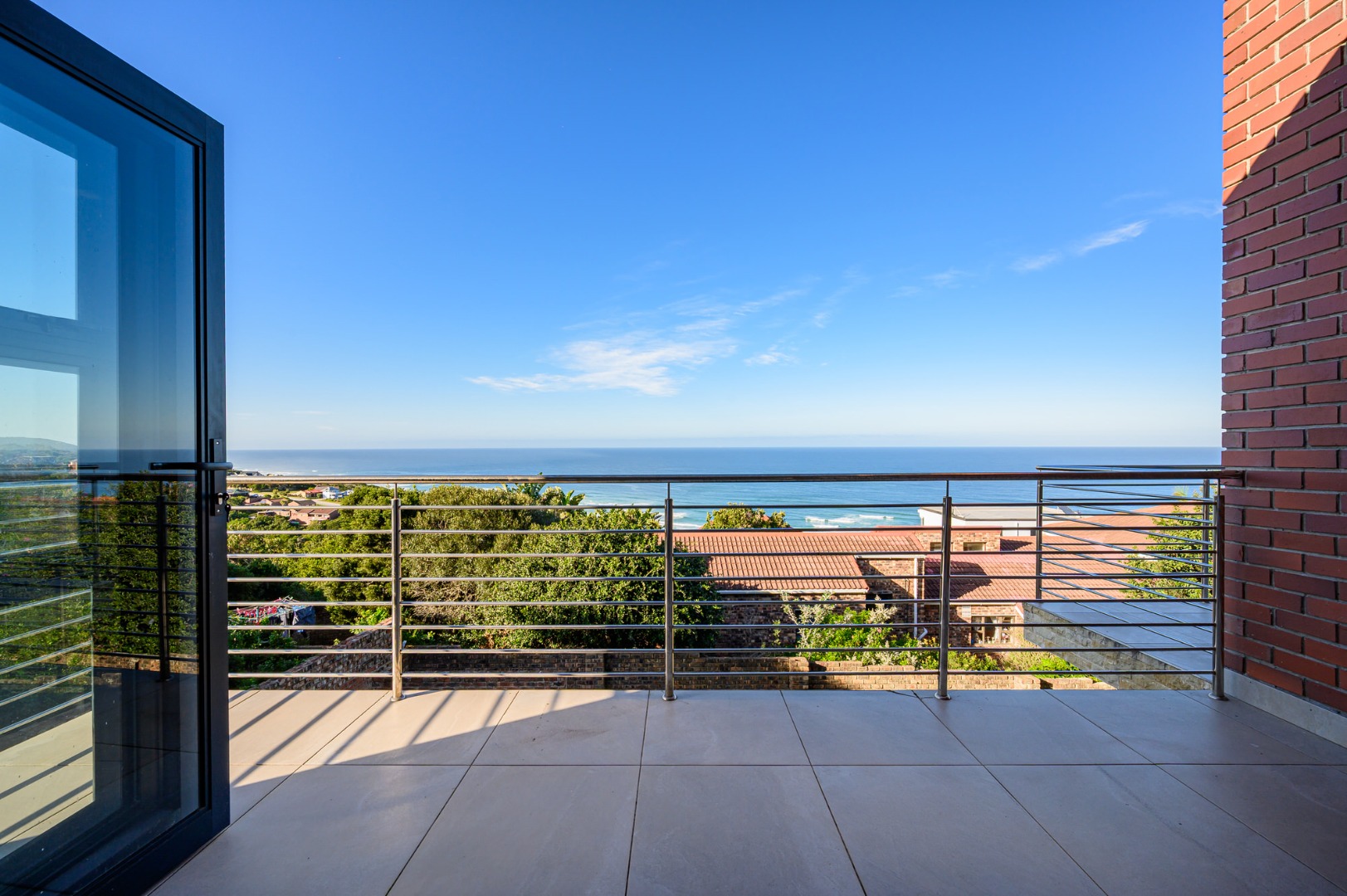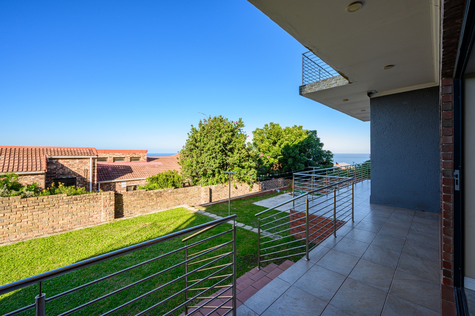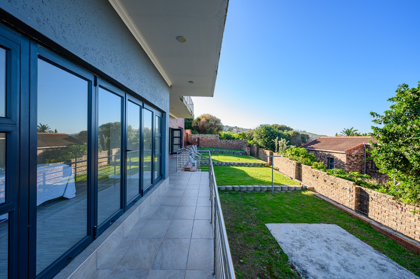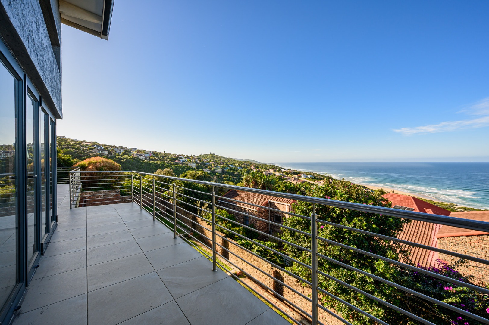 Downstairs, a fully equipped Kitchenette serves a generous open plan dinning and a lounge area . Three beautifully appointed bedrooms ,each offers an an-suit bathrooms and ample cupboards space, ensuring privacy and comfort for family or guests. Stacker doors open unto covered patio where the sea breeze and stunning views create the perfect setting for outdoor relaxation or entertain .