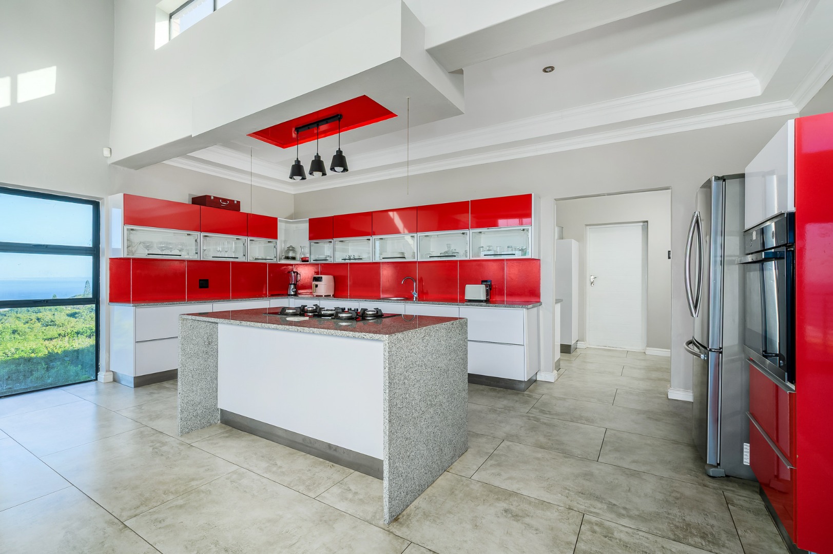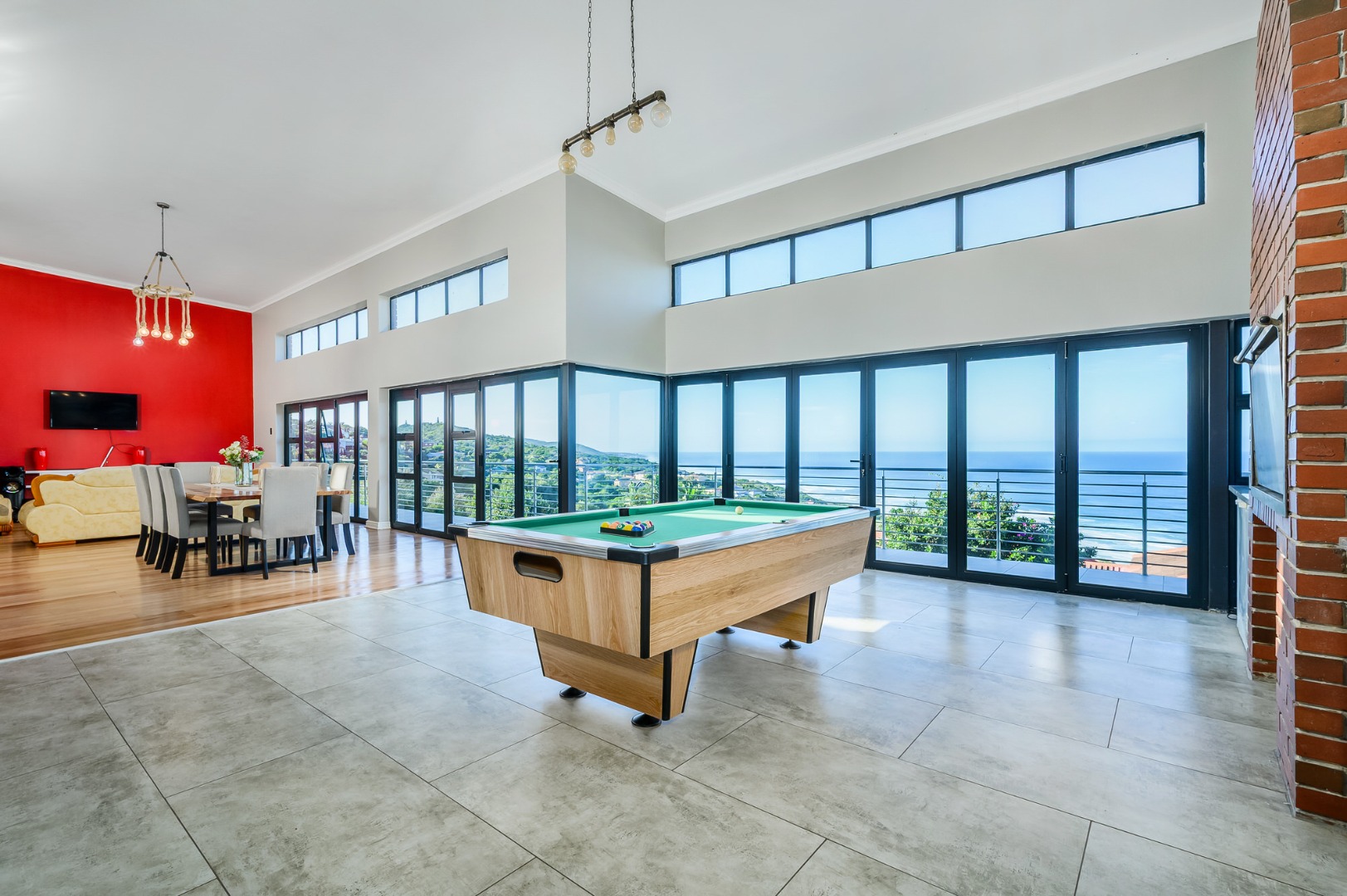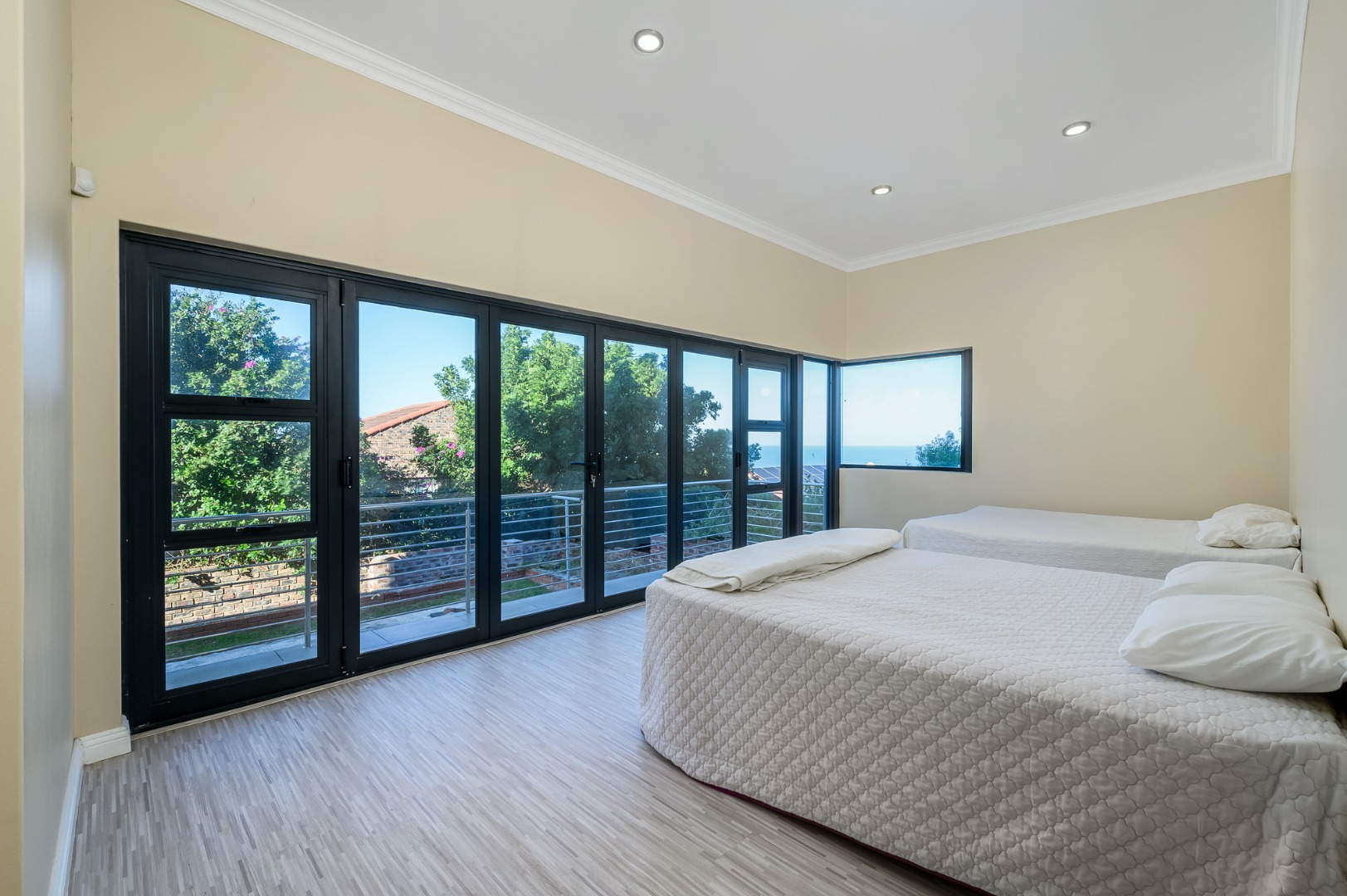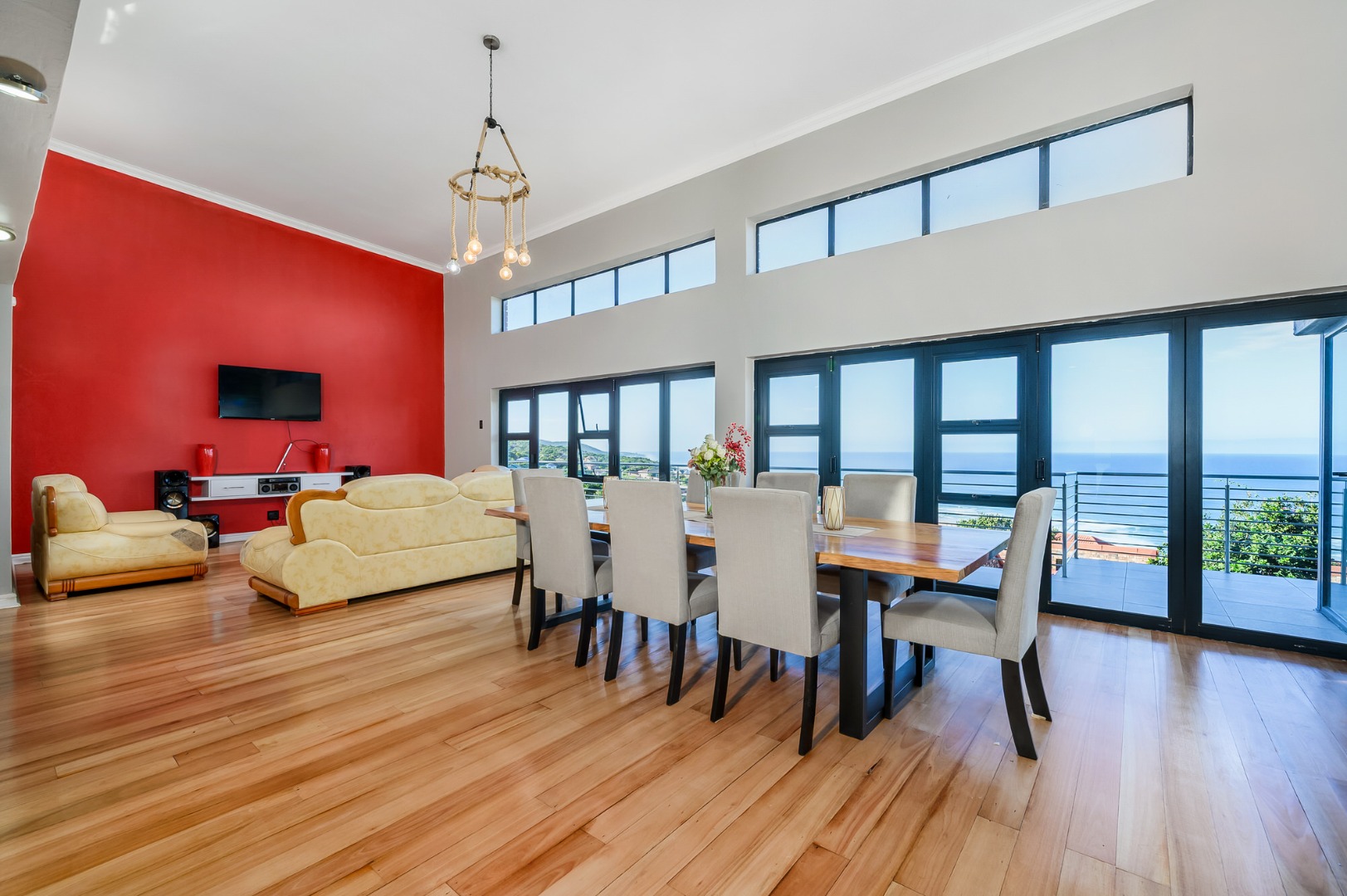 Downstairs, a fully equipped Kitchenette serves a generous open plan dinning and a lounge area . Three beautifully appointed bedrooms ,each offers an an-suit bathrooms and ample cupboards space, ensuring privacy and comfort for family or guests. Stacker doors open unto covered patio where the sea breeze and stunning views create the perfect setting for outdoor relaxation or entertain .