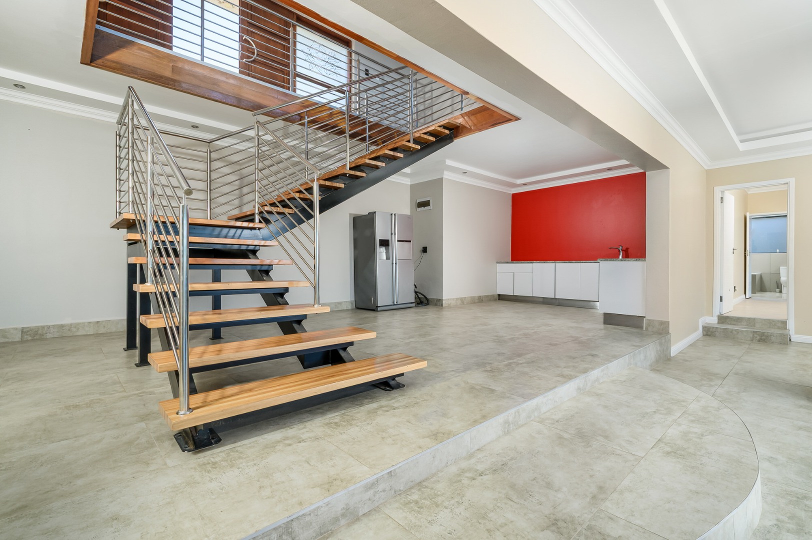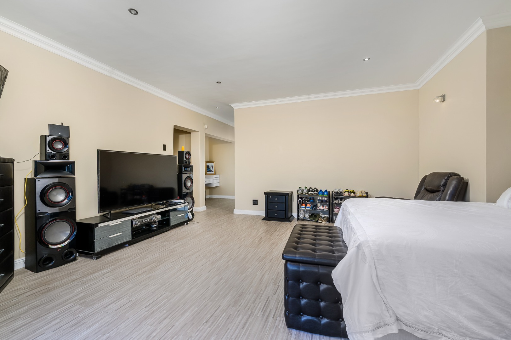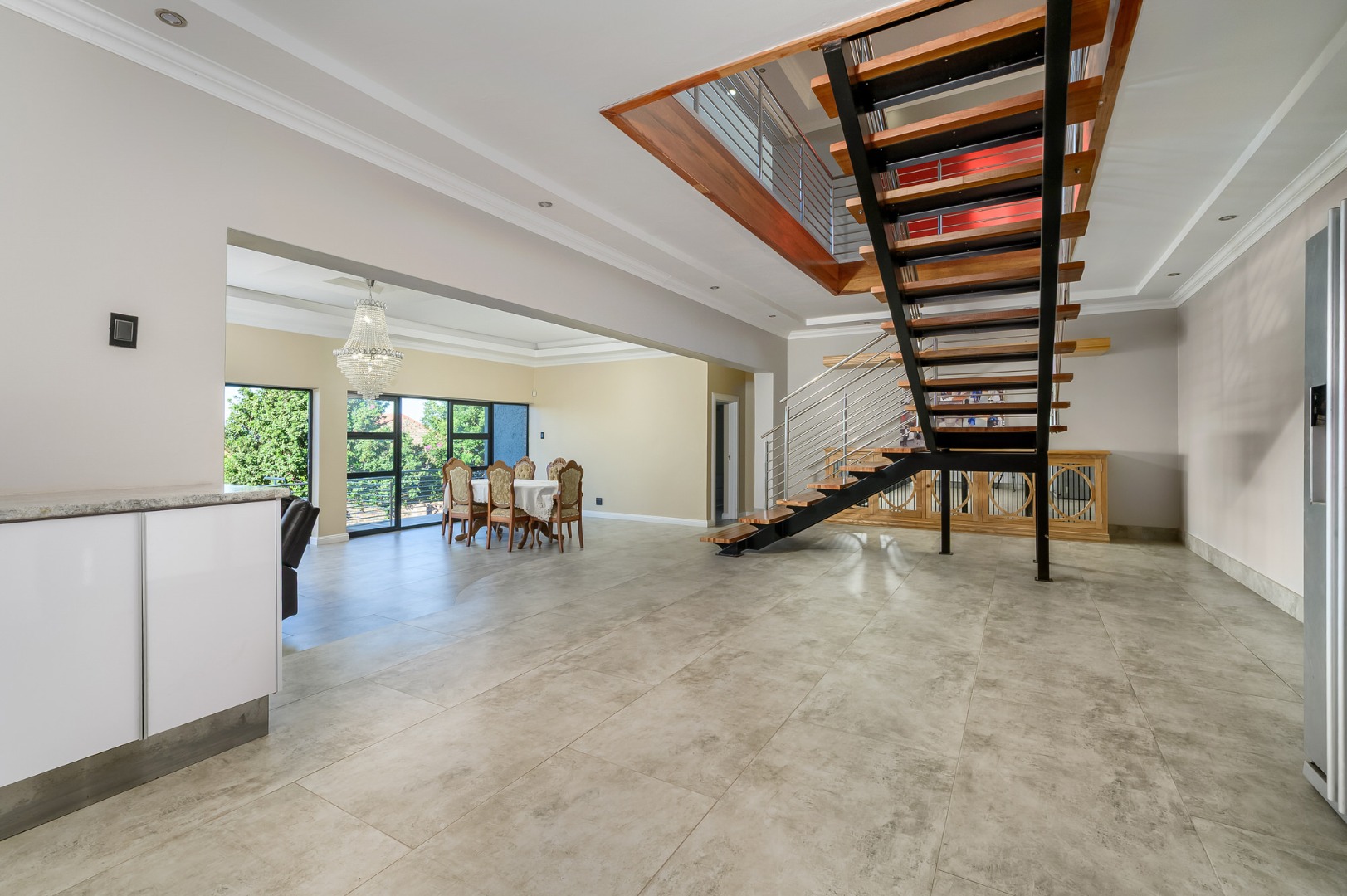 Step into a grand entrance hall that leads into a modern open- plan Kitchen with high end finishes and a separate scullery .The spacious dinning area is perfect for entertaining , complemented by a stylish guest bathroom. The Expensive main Bedroom is a sanctuary on its own, featuring a luxurious an-suite bathroom, a walk in closet and an additional private space, ideal for a home gym, tranquil studio , or executive office.