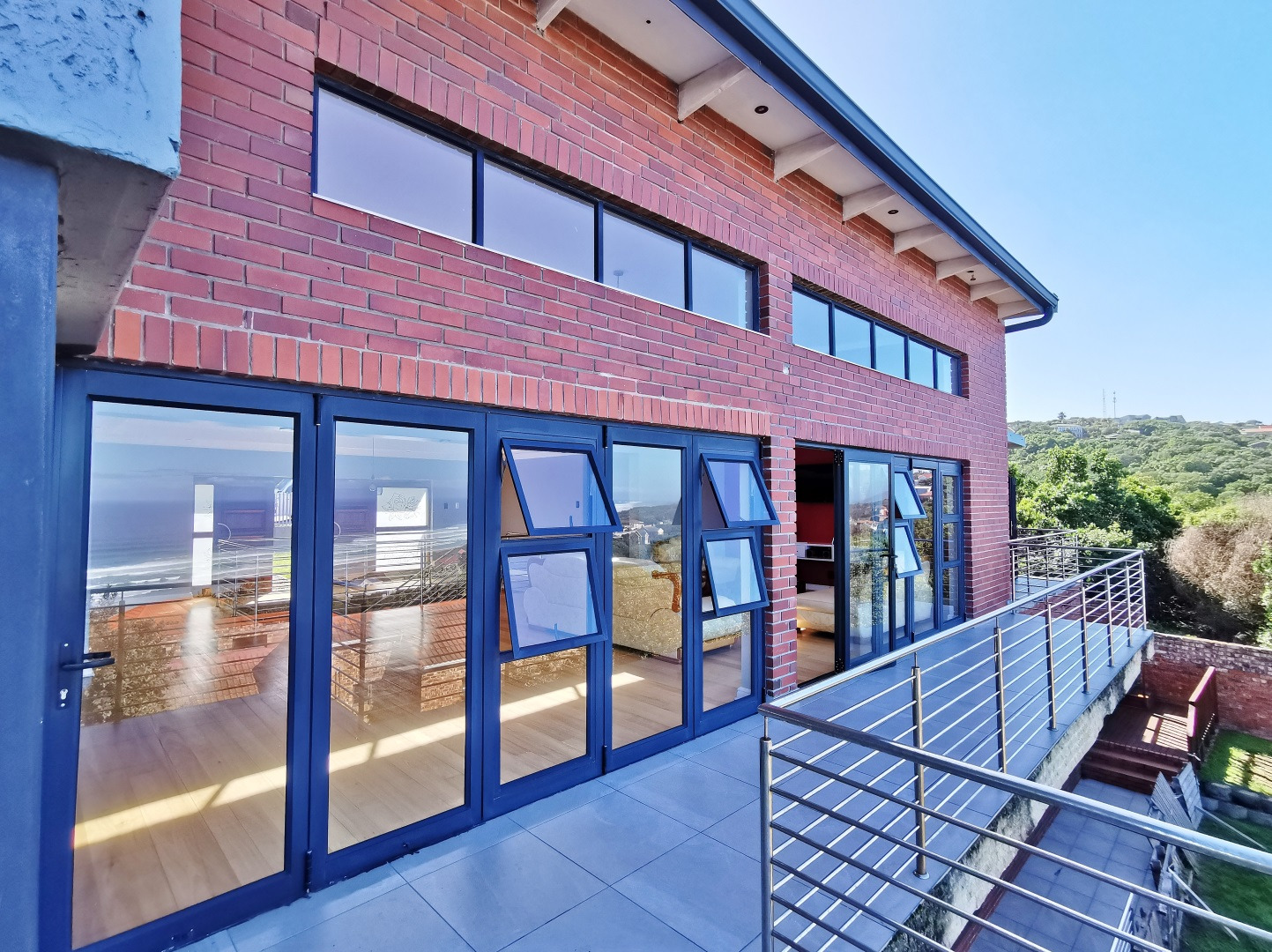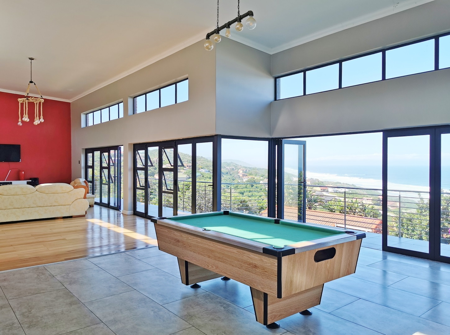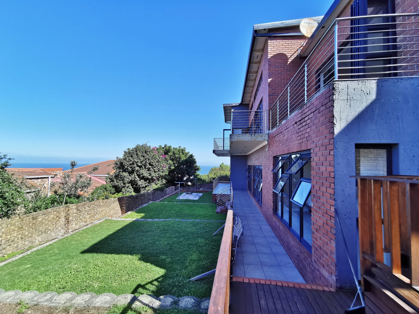 The terraced garden offers ample space to add a swimming pool, while the wooden deck provides the perfect setting to unwind and enjoy spectacular sunsets over the ocean.