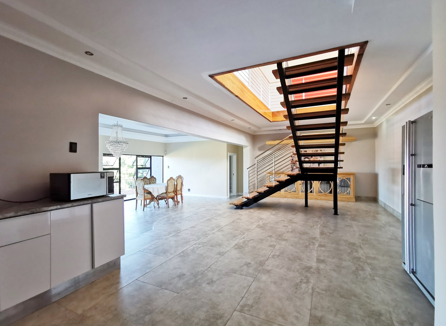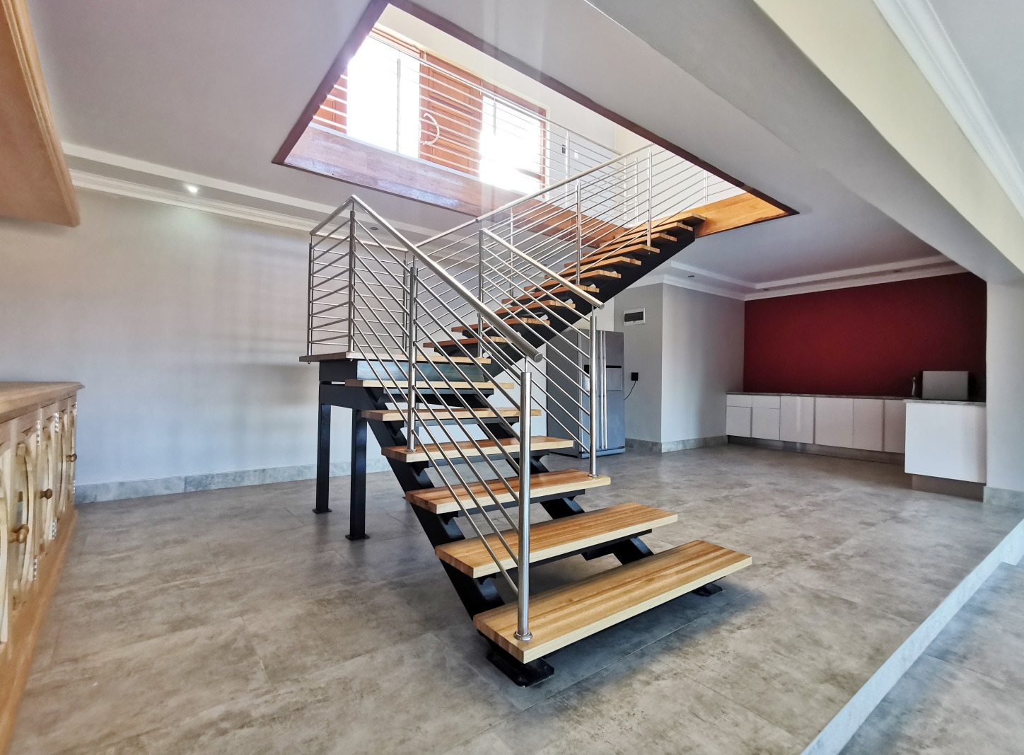 A fully equipped kitchenette serves a generous open-plan lounge and dining area, making this level ideal for extended family, guests or dual-living potential.