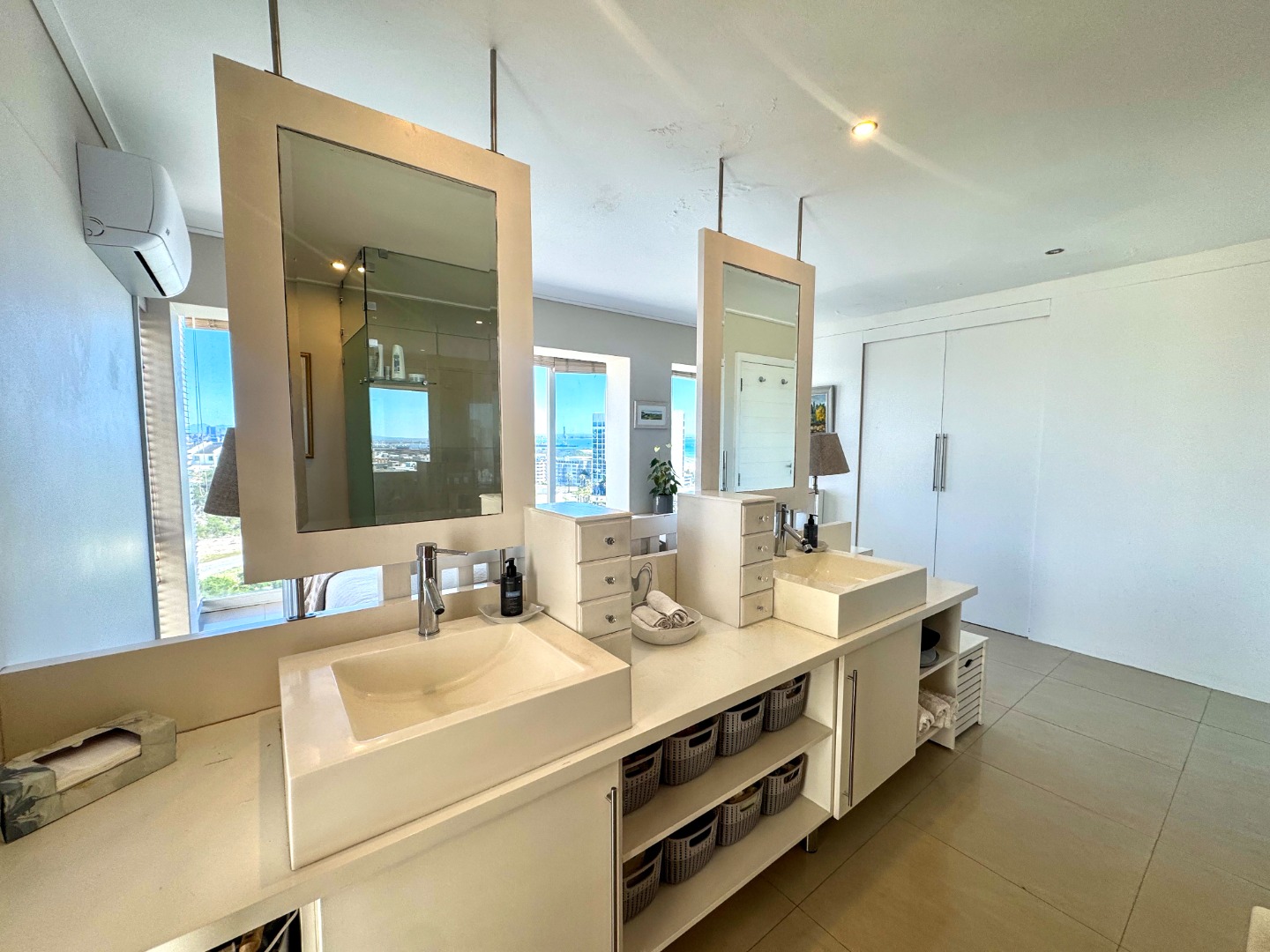The penthouse enjoys 2 secure basement parking bays and a private rooftop pad with breathtaking 360-degree views of the city skyline and sea-facing horizon, perfect for sunset soirées or intimate gatherings. Positioned just 5 km from the airport and all major amenities, the address attracts an upmarket, international investor market seeking premium luxury apartments in a prime coastal location.