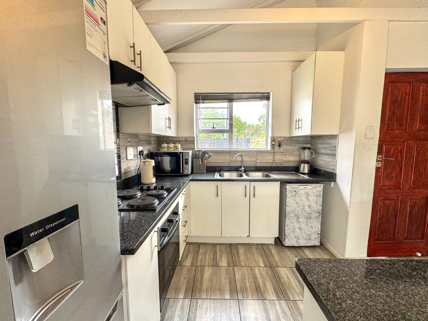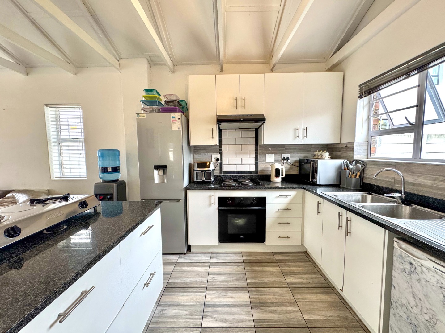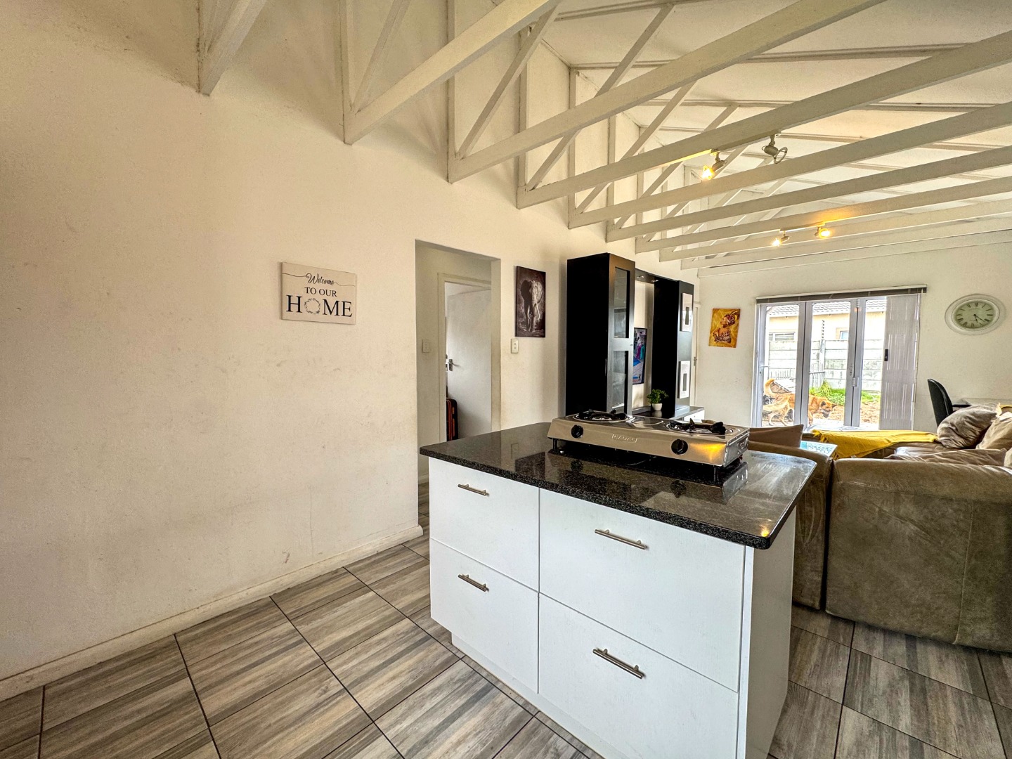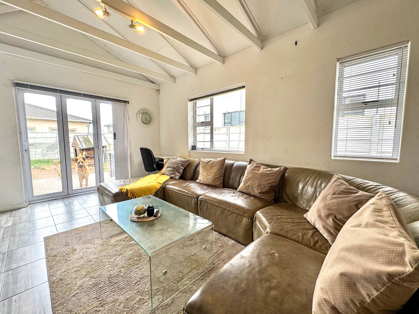 This inviting 3-bedroom, 2-bathroom residence offers comfortable suburban living in Fairview, Port Elizabeth. Designed for modern lifestyles, this well-appointed home in South Africa provides a welcoming atmosphere and practical layout, ensuring everyday convenience and peace of mind. Step inside to discover an open-plan living area, seamlessly connecting the lounge and kitchen. Sliding doors enhance the indoor-outdoor connection, allowing natural light to fill the space. The functional kitchen is ready to accommodate culinary needs, making meal preparation effortless and promoting easy interaction. The home features three comfortable bedrooms, providing ample private space. Two well-appointed bathrooms serve the household, with one being an ensuite, offering added privacy and convenience. These spaces are designed for relaxation and functionality. Outside, the property boasts a private garden, perfect for outdoor enjoyment. Parking is abundant with a single garage and an additional four open parking spaces, catering to multiple vehicles. Pets are allowed, making this an ideal choice for animal lovers. The 92.00 sqm erf provides a manageable outdoor area. Security is a priority, with features including a security post, access gate, electric fencing, and a security gate, all contributing to a totally walled perimeter. These measures provide a secure environment for residents. Fairview is a well-established suburban area within Port Elizabeth, known for its family-friendly atmosphere and convenient access to local amenities. This location offers a balanced lifestyle, combining residential tranquility with urban accessibility. Key Features: * 3 Bedrooms, 2 Bathrooms (1 Ensuite) * Open-Plan Living Area with Sliding Doors * Functional Kitchen * Private Garden * 1 Garage, 4 Additional Parking Spaces * Pets Allowed * Enhanced Security (Security Post, Electric Fencing, Walled) * Suburban Port Elizabeth Location