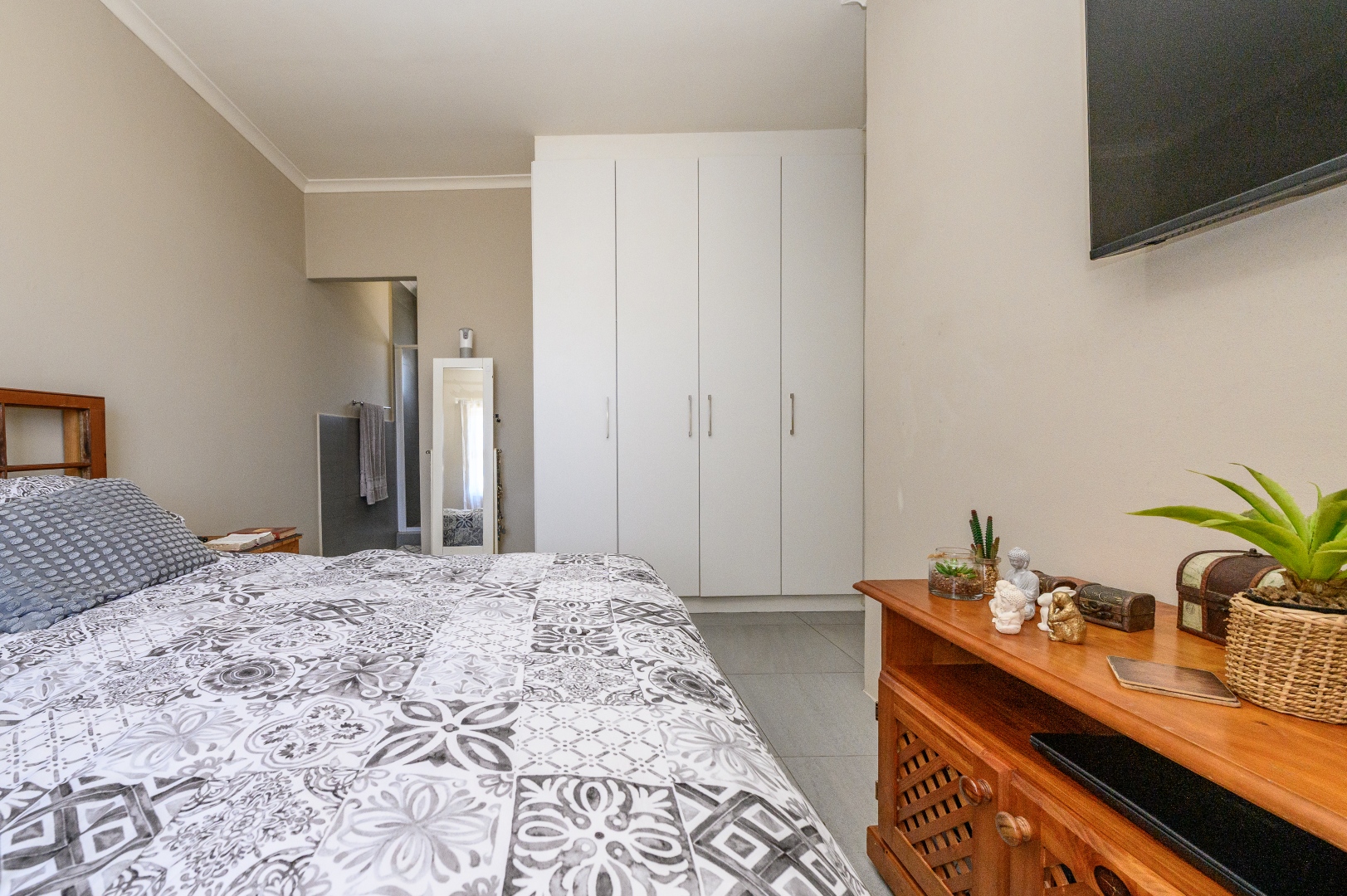 The home offers 3 bedrooms, all fitted with built-in cupboards: