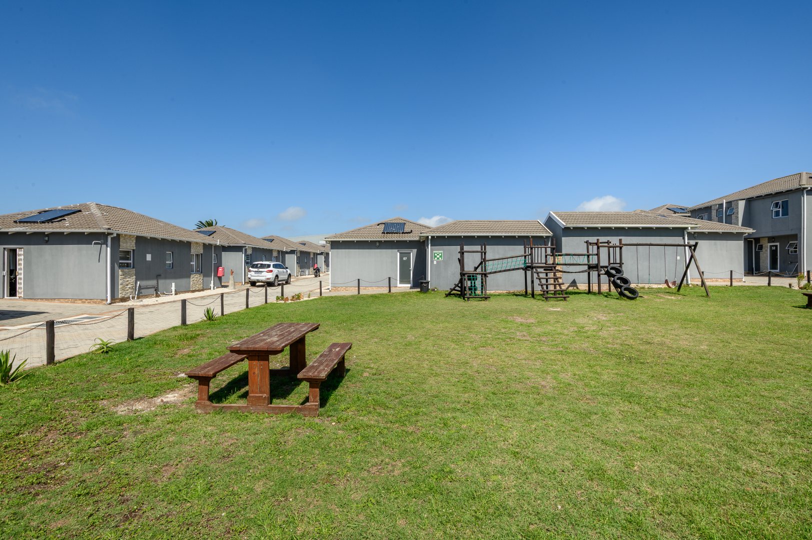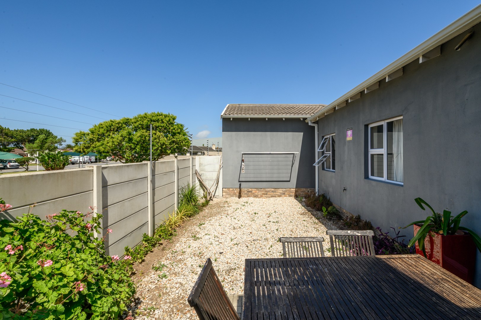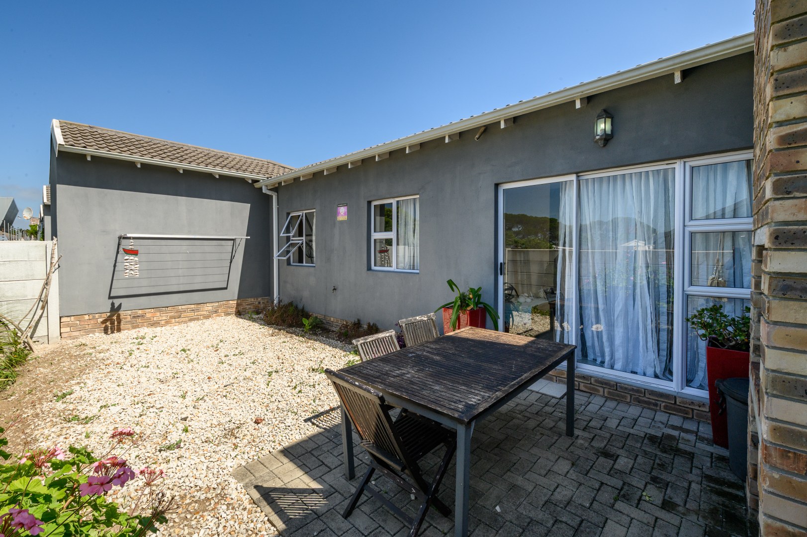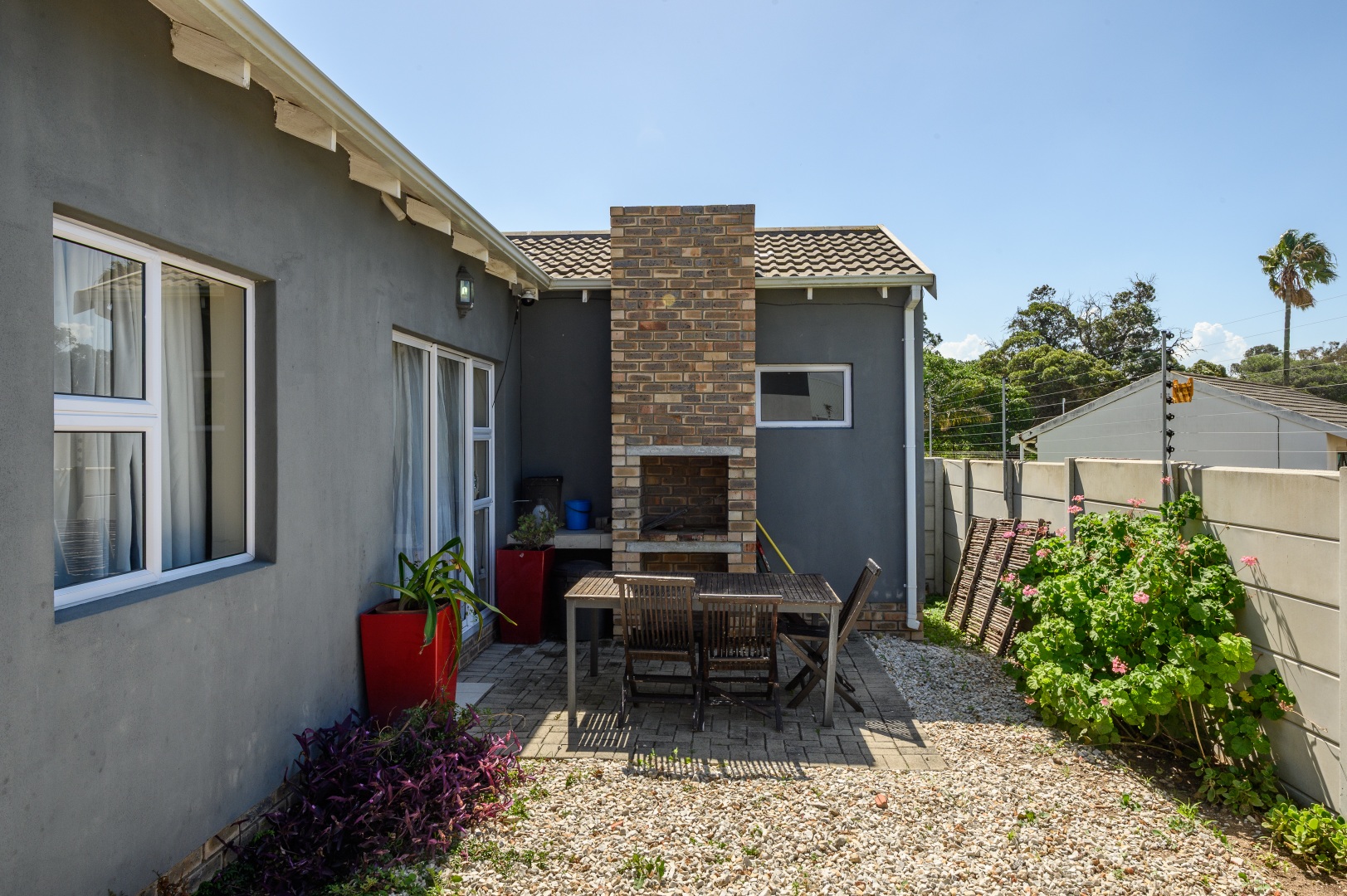 Step outside to a generously sized paved and stone courtyard, ideal for entertaining, complete with a built-in braai area.