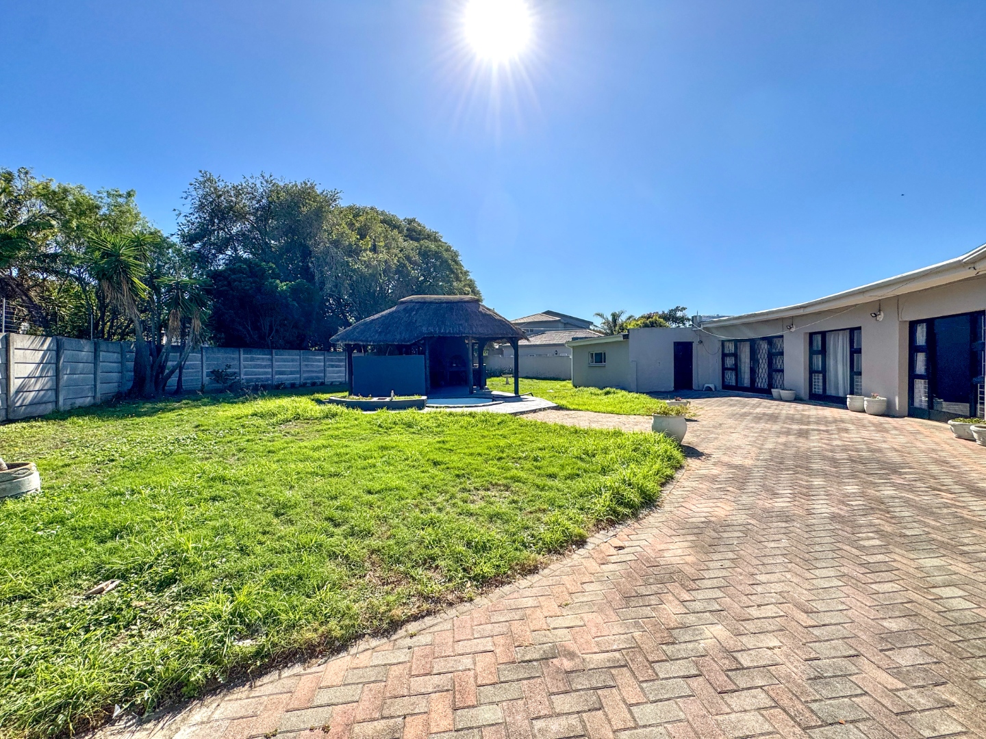 Nestled in the suburban tranquility of Fernglen, Port Elizabeth, this distinctive residence offers a unique blend of character and spacious living. Approached via a private gated entrance and paved driveway, the property boasts an impressive 1728 sqm erf, ensuring privacy and an established garden setting. The home's kerb appeal is enhanced by mature trees and a secure brick wall, providing a secluded haven.