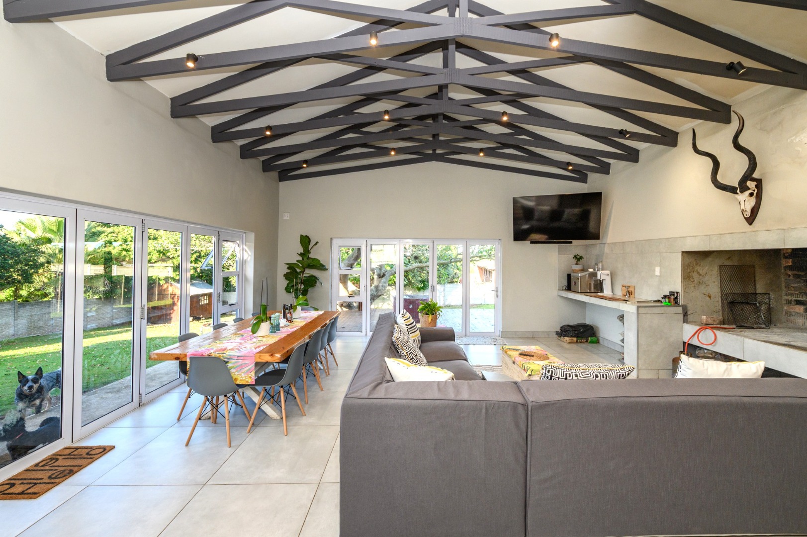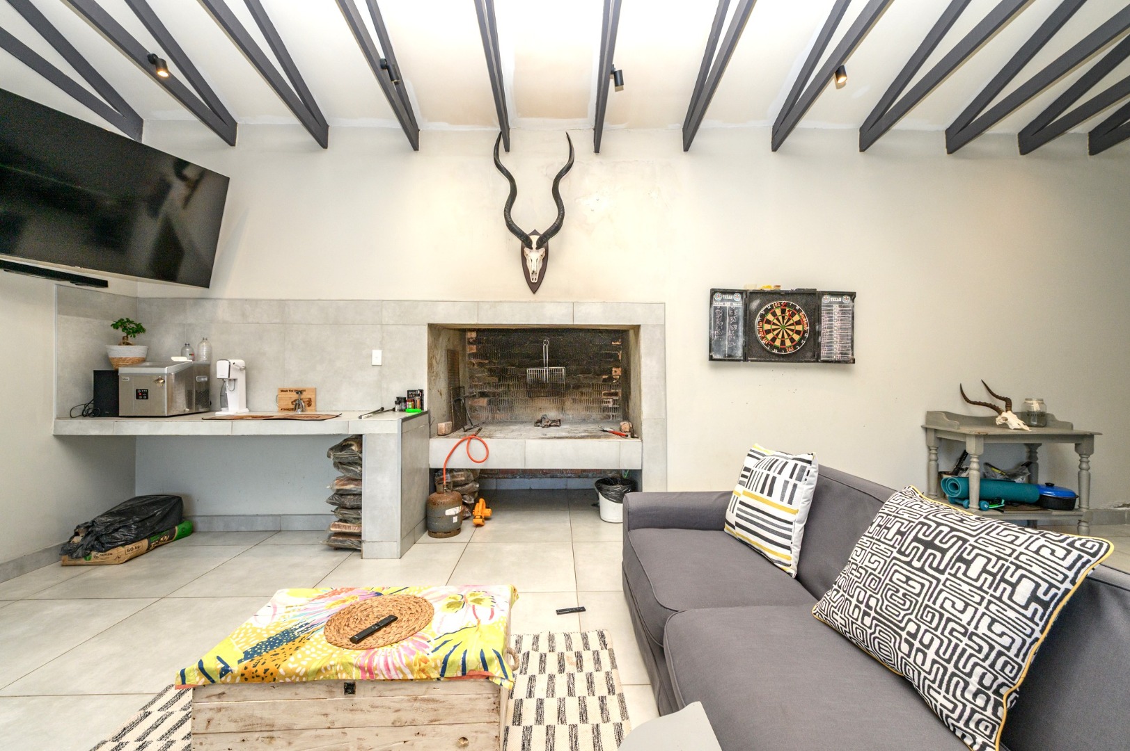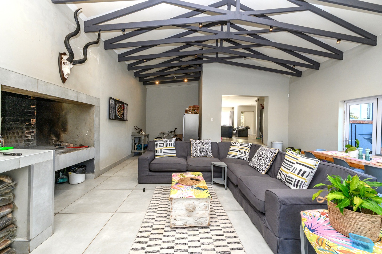 The heart of the home is the entertainment area, complete with a built-in braai, offering the perfect space to relax and host memorable gatherings no matter the season.