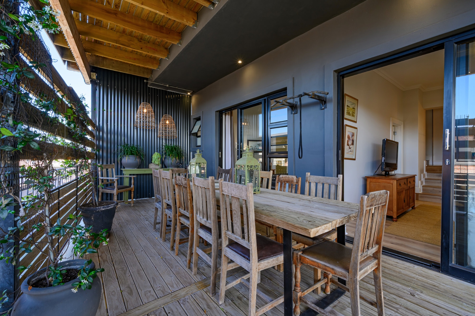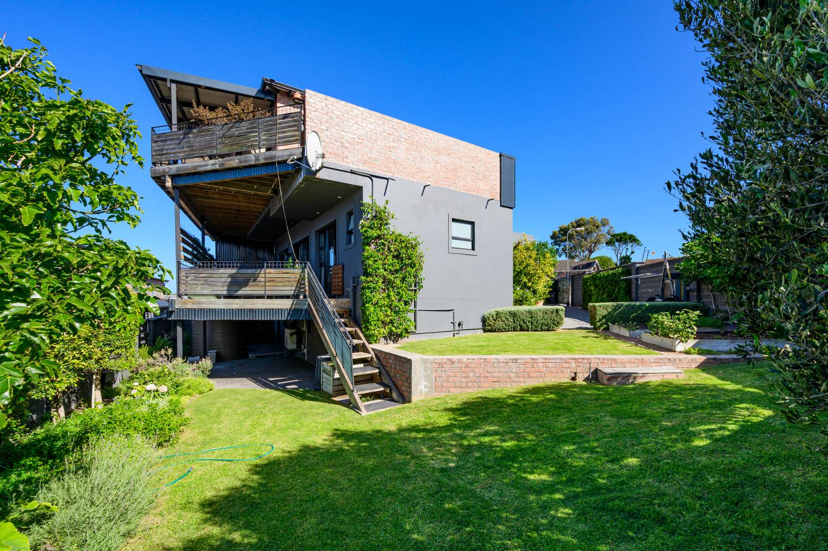 The ground floor is thoughtfully laid out and offers a guest toilet, a comfortable family TV lounge, and two generously sized bedrooms, both en-suite and opening via sliding doors onto an undercover deck – perfect for relaxed mornings or quiet evenings outdoors.