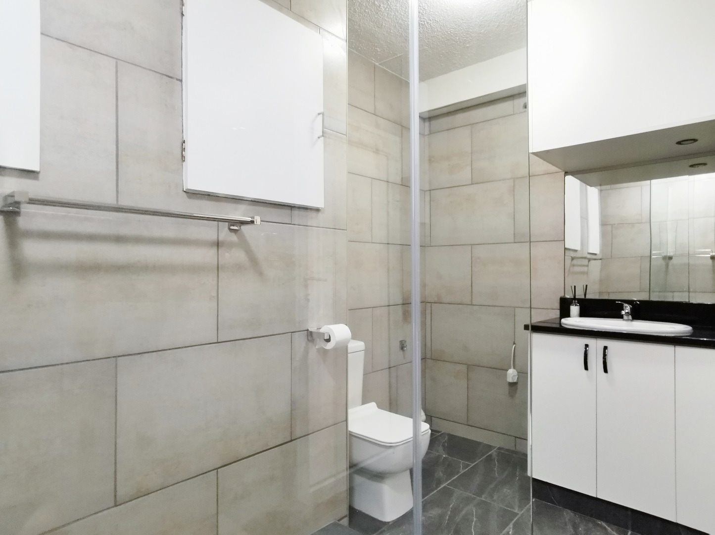 The spacious bathroom includes a shower, basin, toilet and a dedicated laundry area, adding to the apartment’s practicality and appeal. Both bedrooms are bright and well-proportioned.