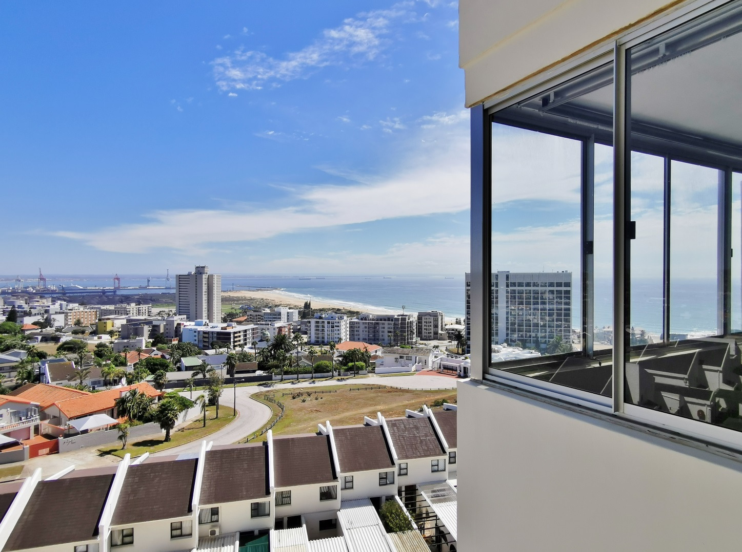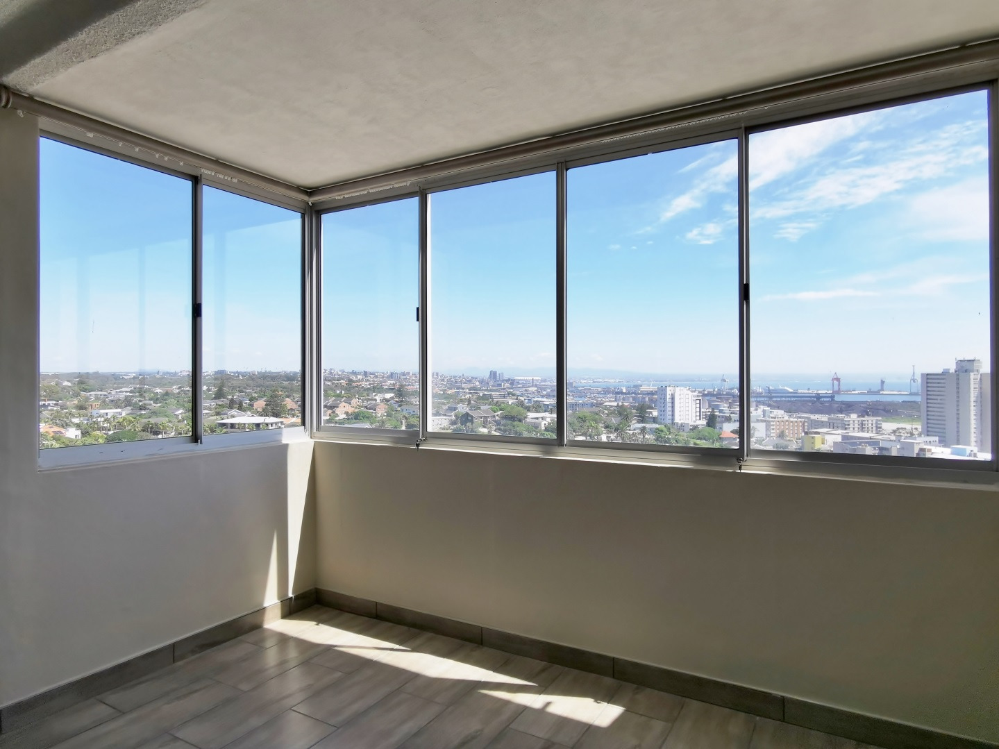 Perched on the seventh floor of the sought-after Lelanè Apartments in Humewood, this beautifully modern 2-bedroom unit offers panoramic views across the city skyline and out toward the sparkling beachfront.