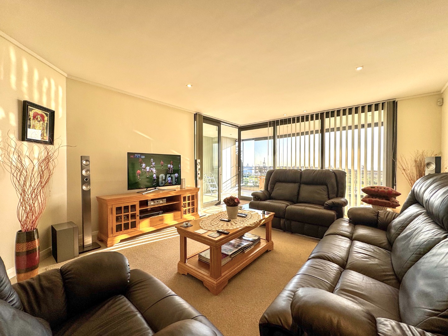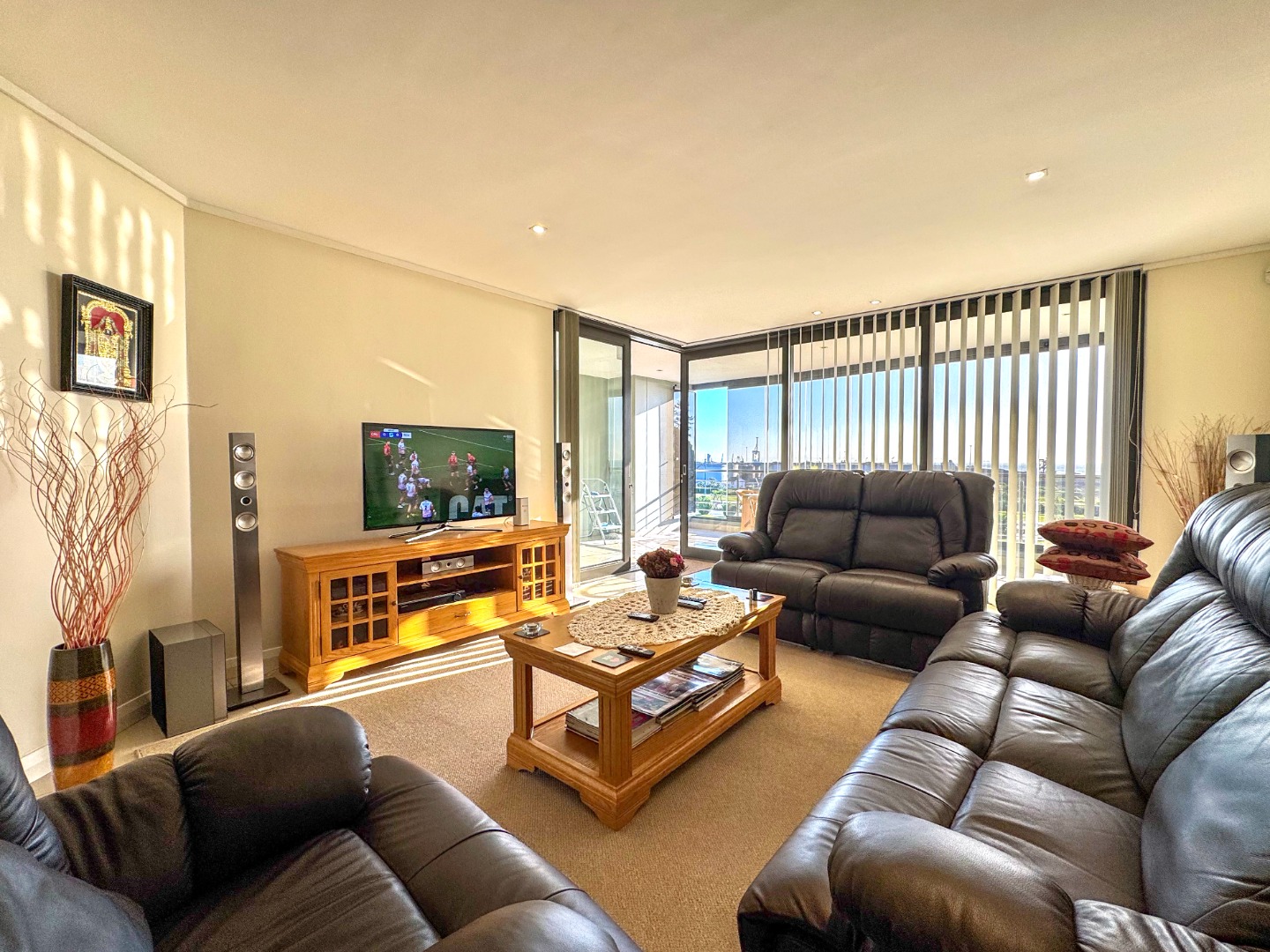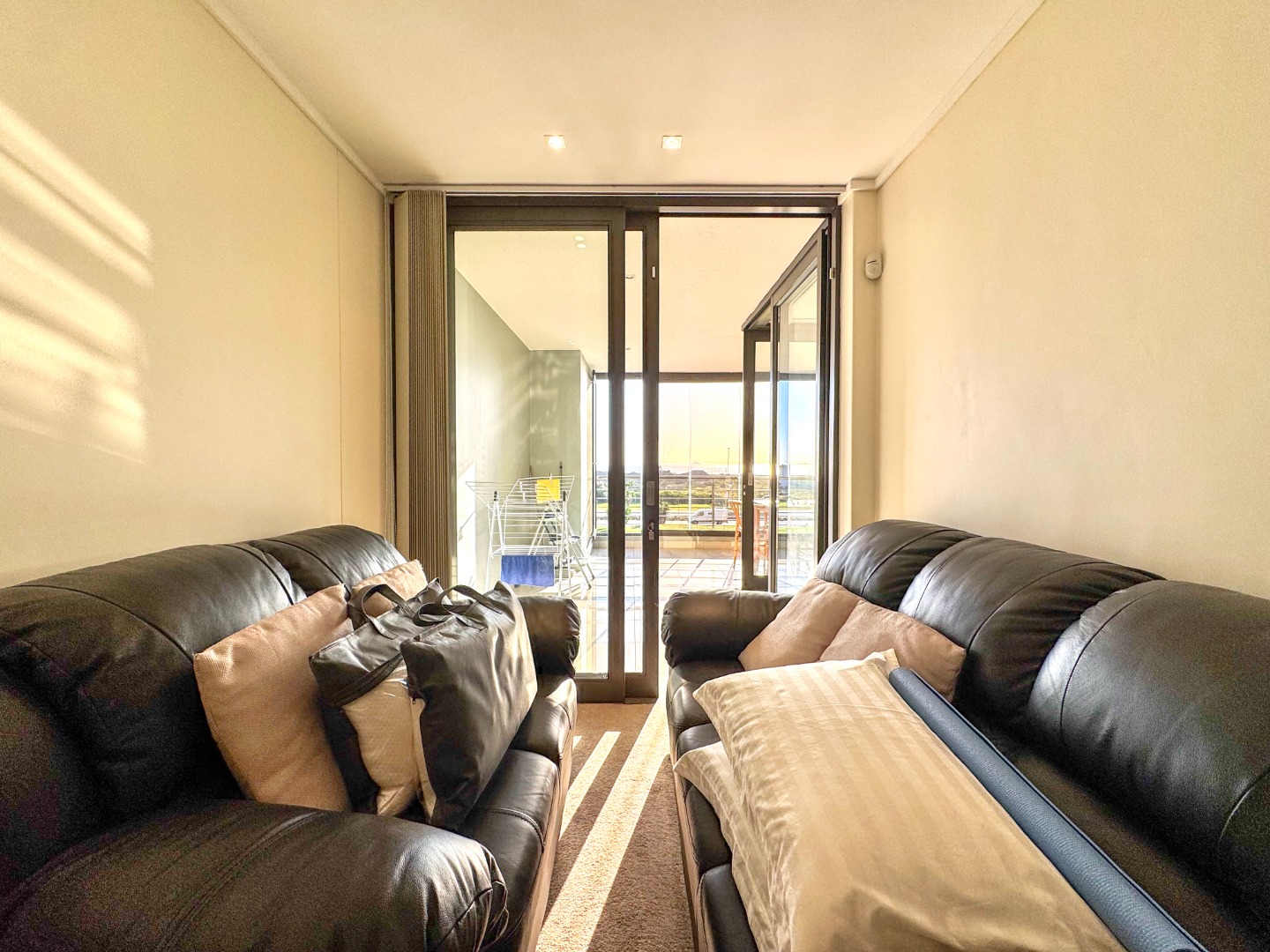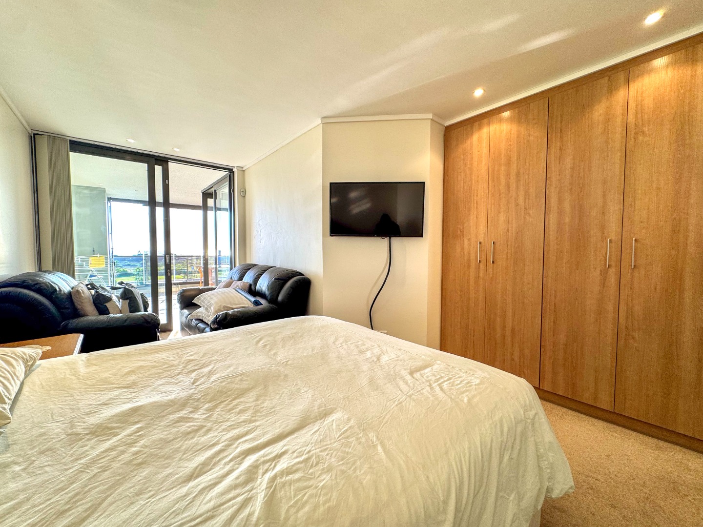The Open plan design provides for perfect entertainment flow from Kitchen, to dining area and lounge. The modern kitchen is well fitted with a breakfast bar as well as space for washing machine and tumble-dryer or dishwasher. Backup power is provided for by an inverter with LI battery. The lounge opens to a generous balcony featuring quality frameless stack windows and offers plenty of space for dining and appreciation of the ocean view in any weather. The balcony also has a fitted stainless-steel braai. The ample sized Main bedroom with ensuite also has direct access to the balcony. The second bedroom is spacious and has access to the guest bathroom. Living areas are fitted with up market floor tiling and the two bedrooms have plush carpeting.