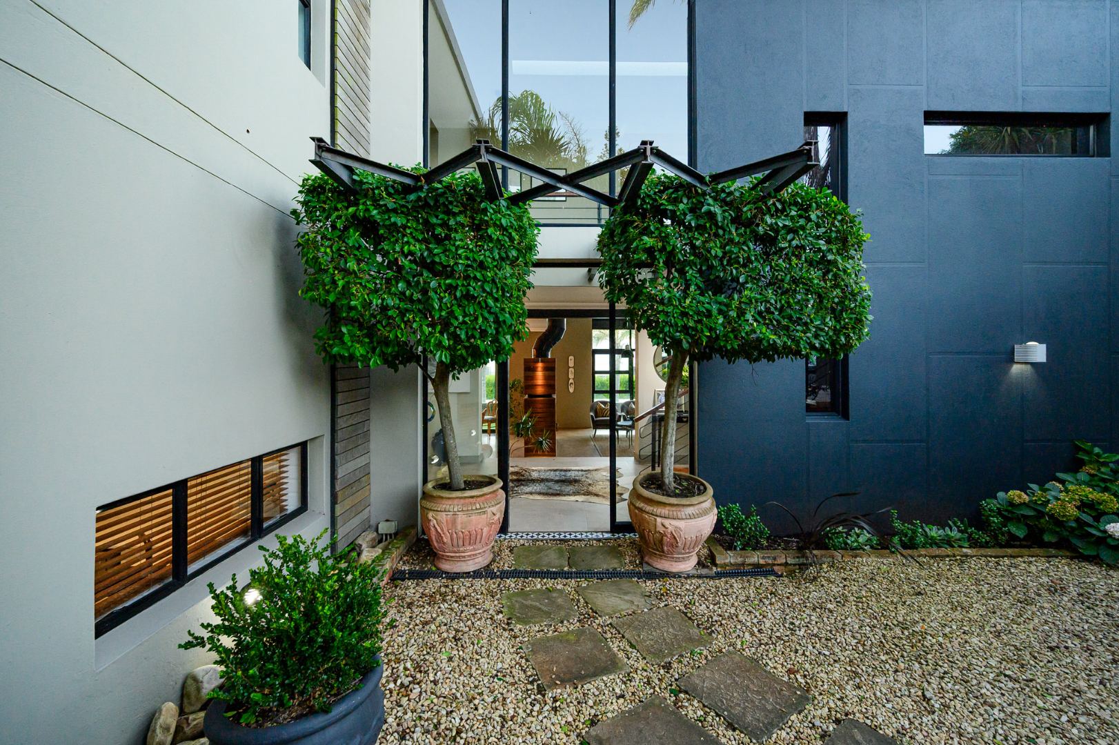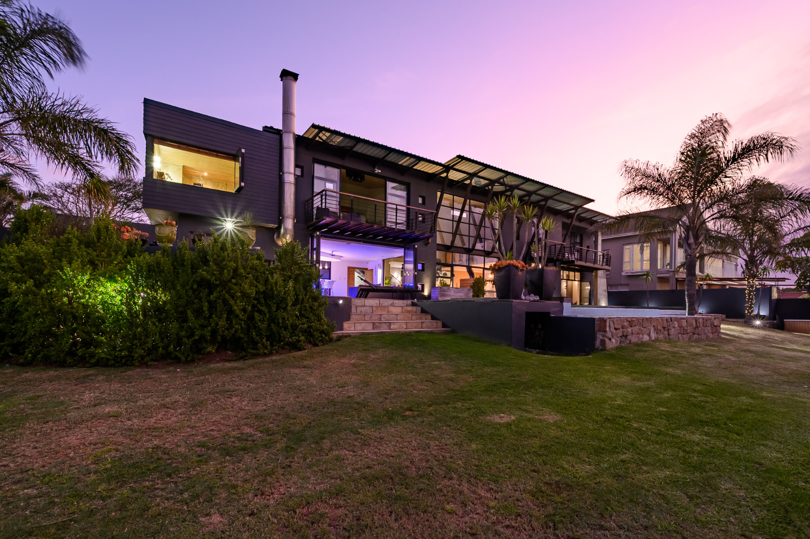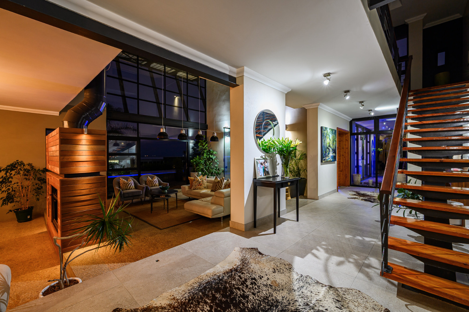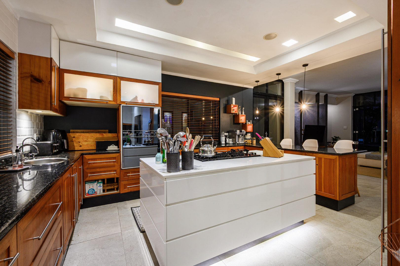 Additional highlights include a self-contained flatlet with separate entrance, perfect for extended stays or passive income, plus a domestic suite, private gym and dedicated office area. Sustainability meets innovation with a 10kVA inverter system, 10 solar panels and two 5,000L rainwater tanks, all seamlessly integrated.