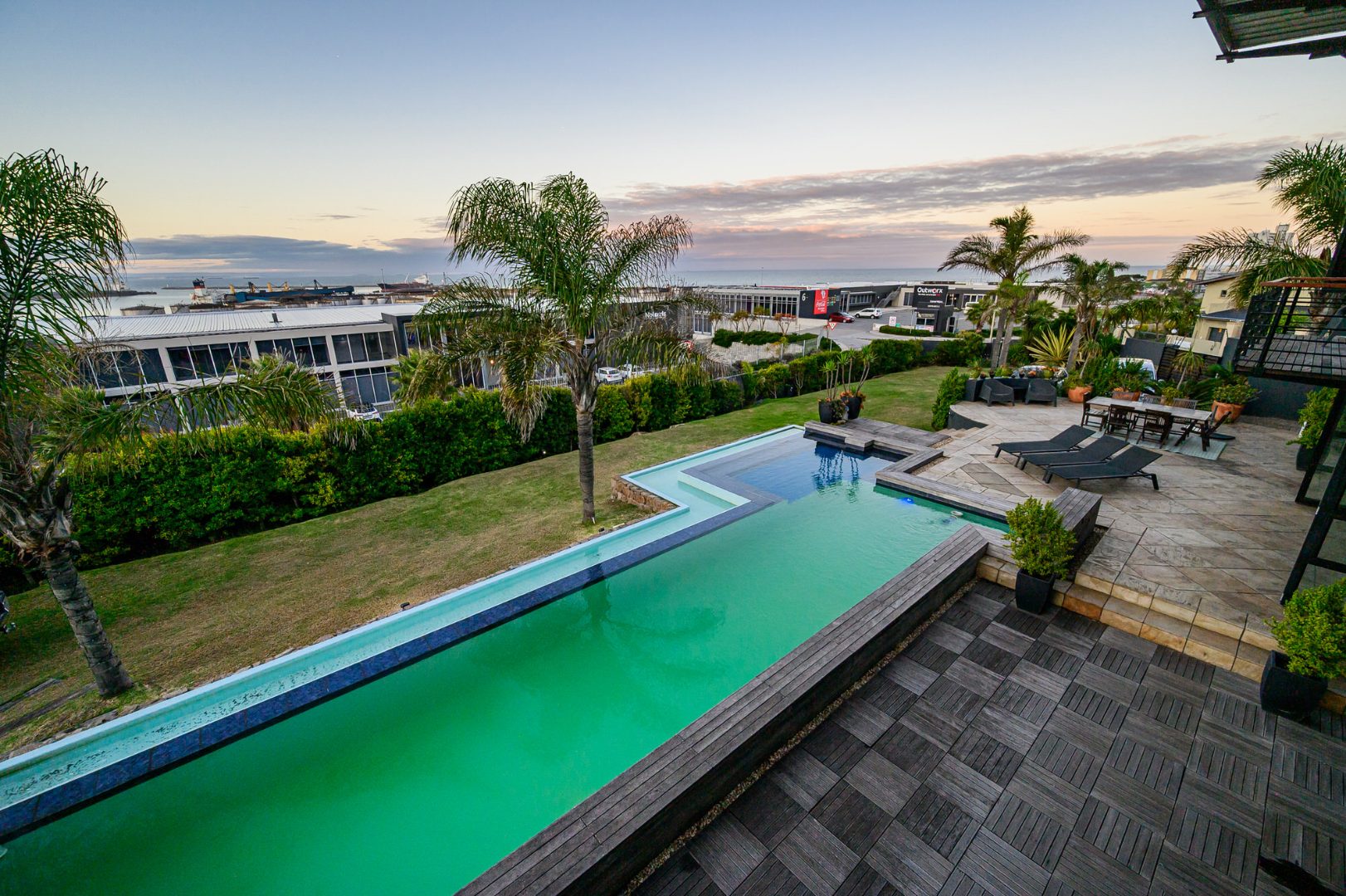 Set atop an elevated double plot in the heart of Humewood, this architect-designed masterpiece redefines luxurious coastal living. With sweeping, uninterrupted views of the Port Elizabeth harbour and ocean, this contemporary villa is more than a home, it’s a curated experience of space, light, and indulgence.