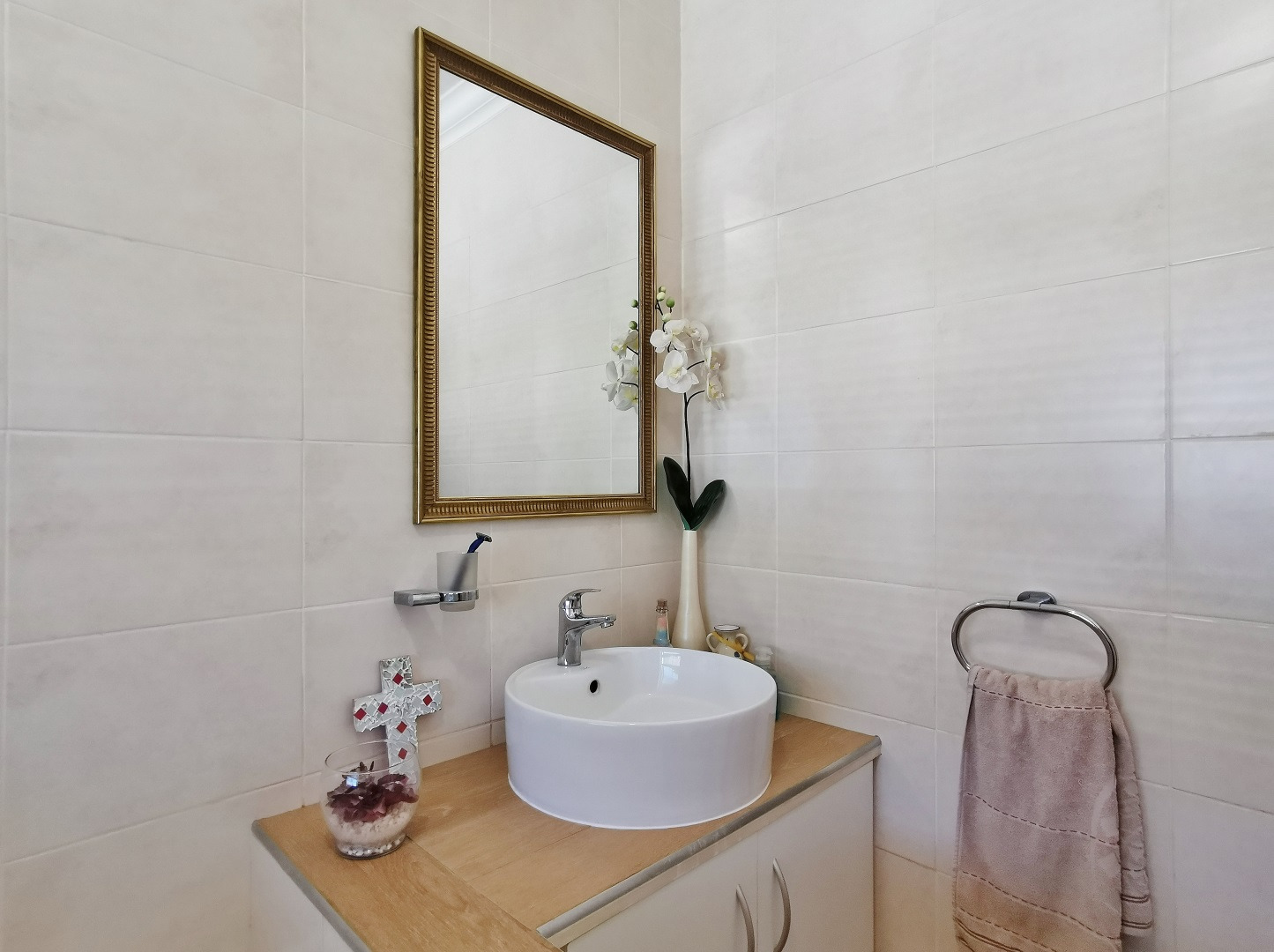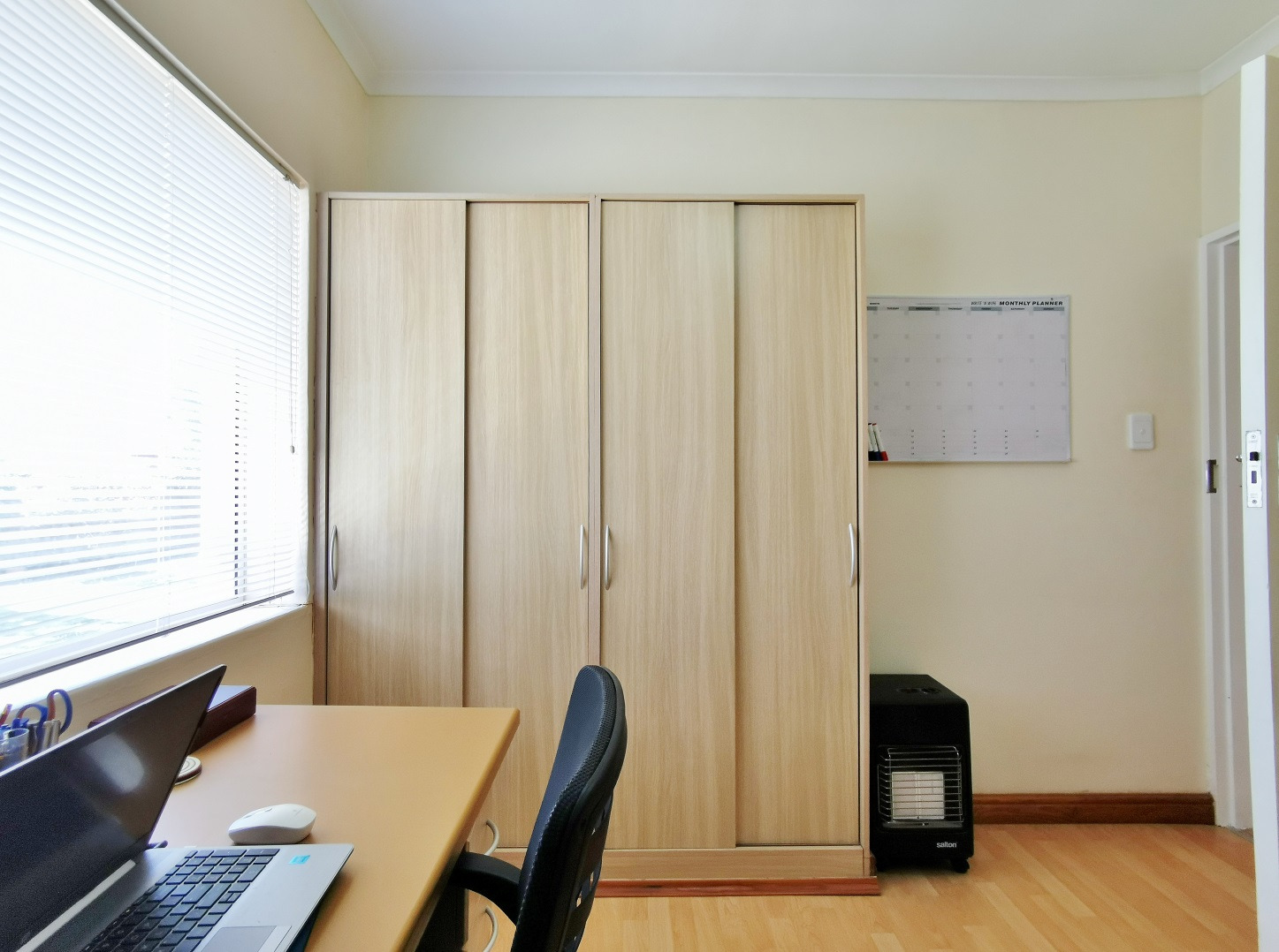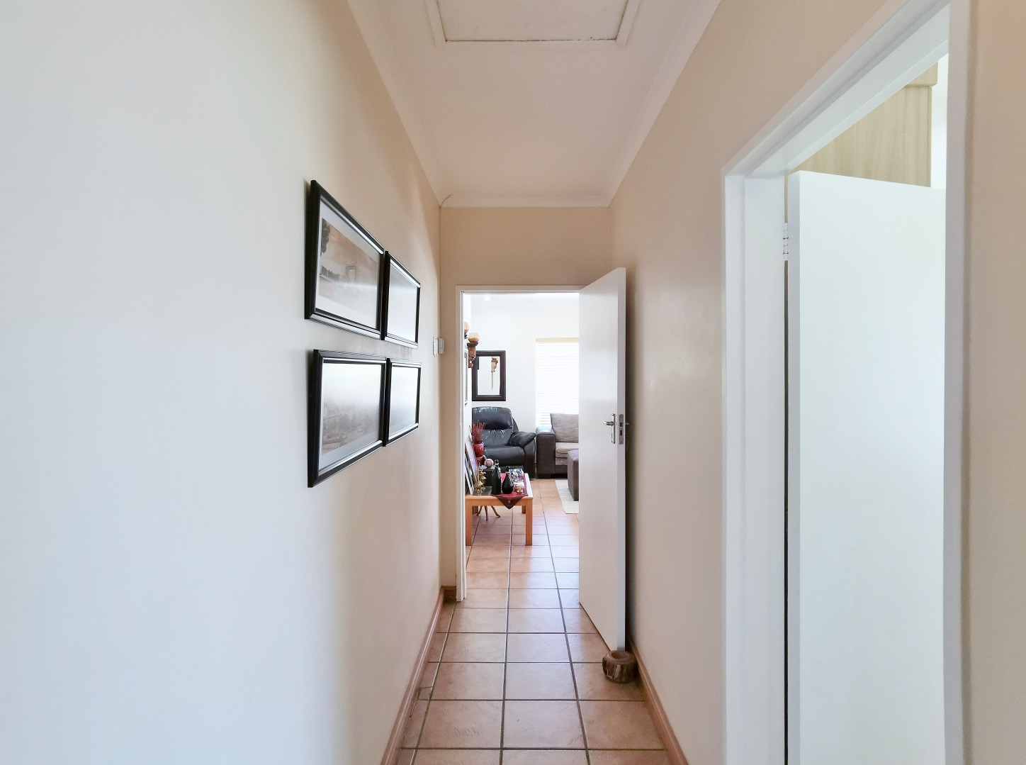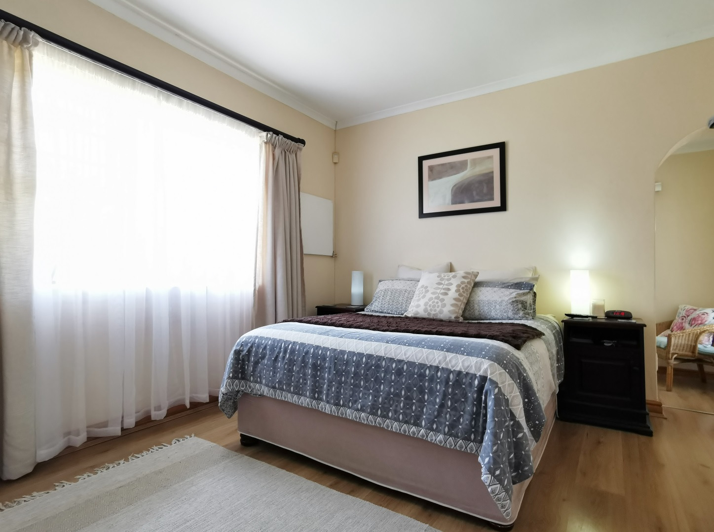Security features include trellis security doors and burglar bars fitted throughout the home. The property is tiled throughout, with laminate flooring in the bedrooms for added comfort.