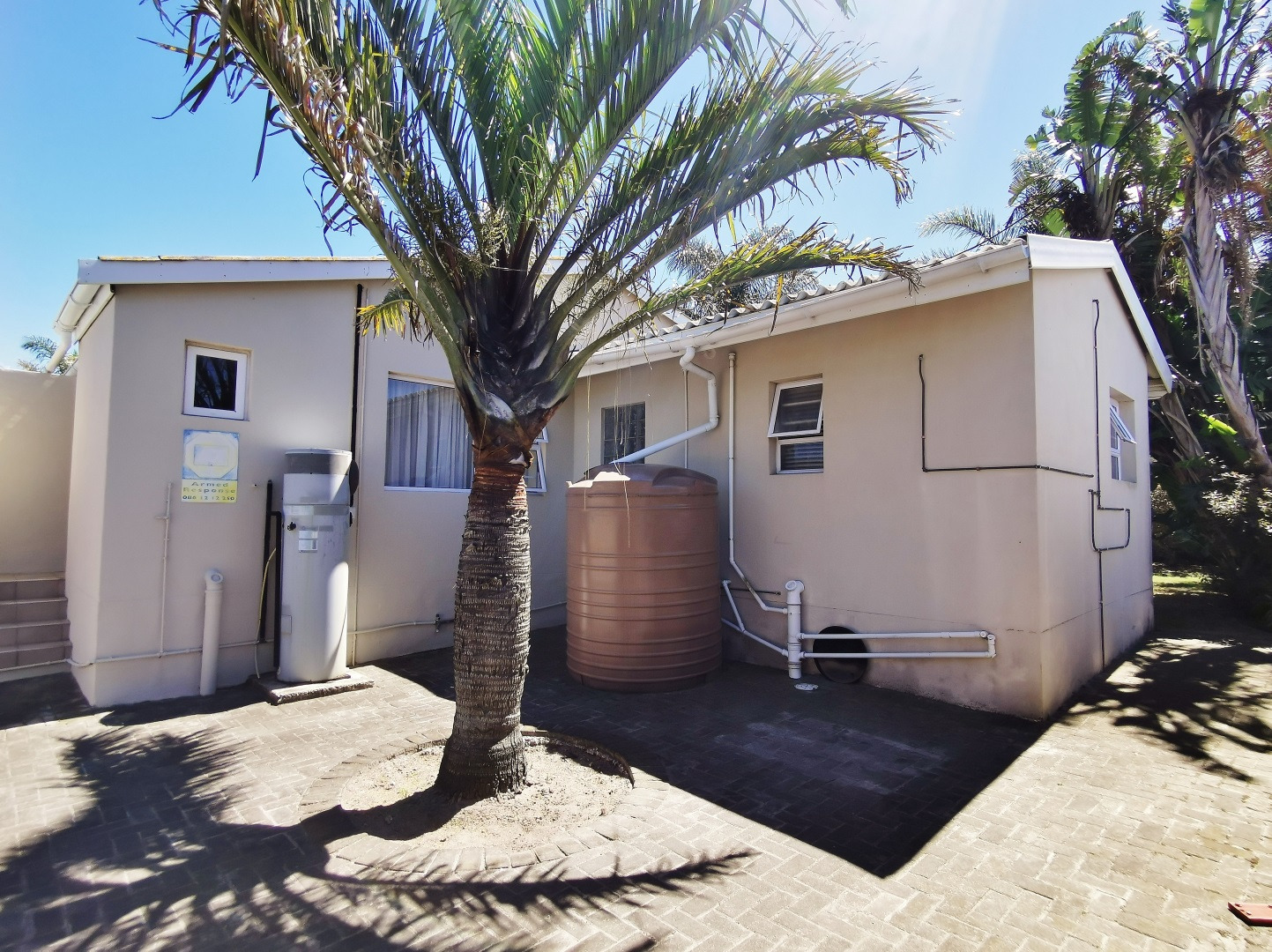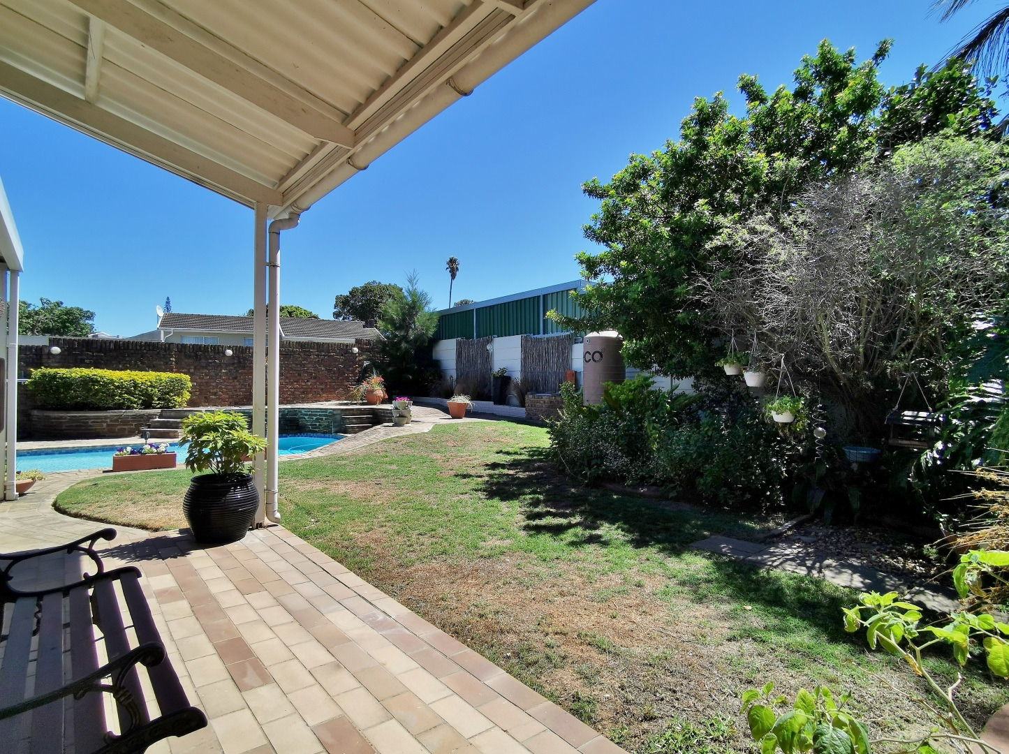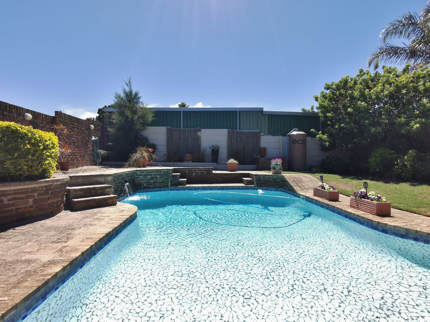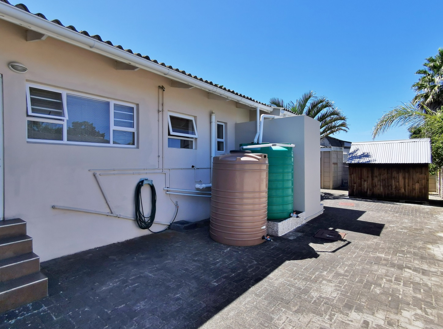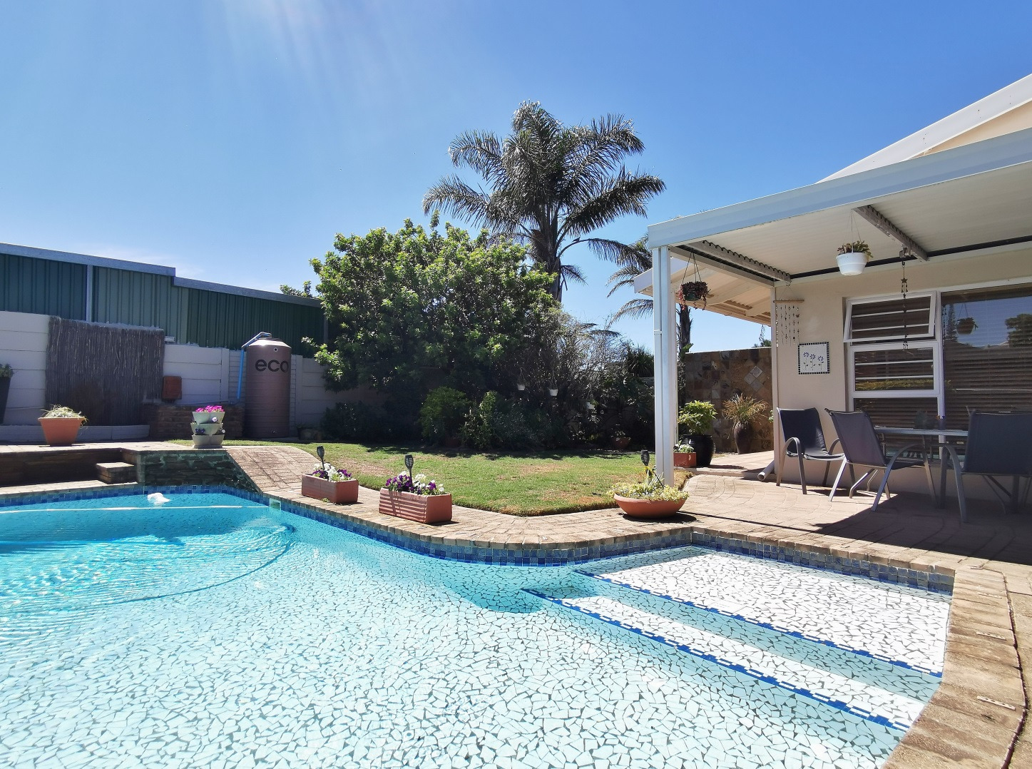 The garden is well established, with a gate leading through to the pool and patio area. Three rainwater tanks are installed and plumbed into the house, with an additional smaller tank servicing the pool backwash system.
