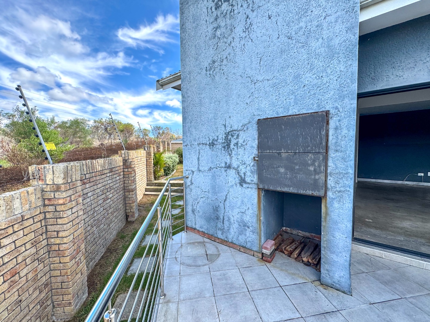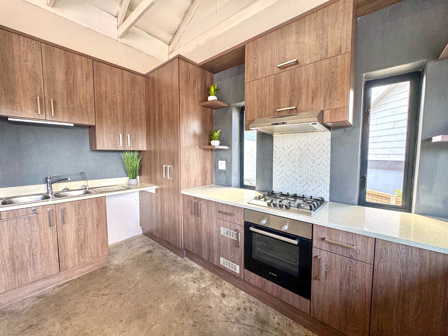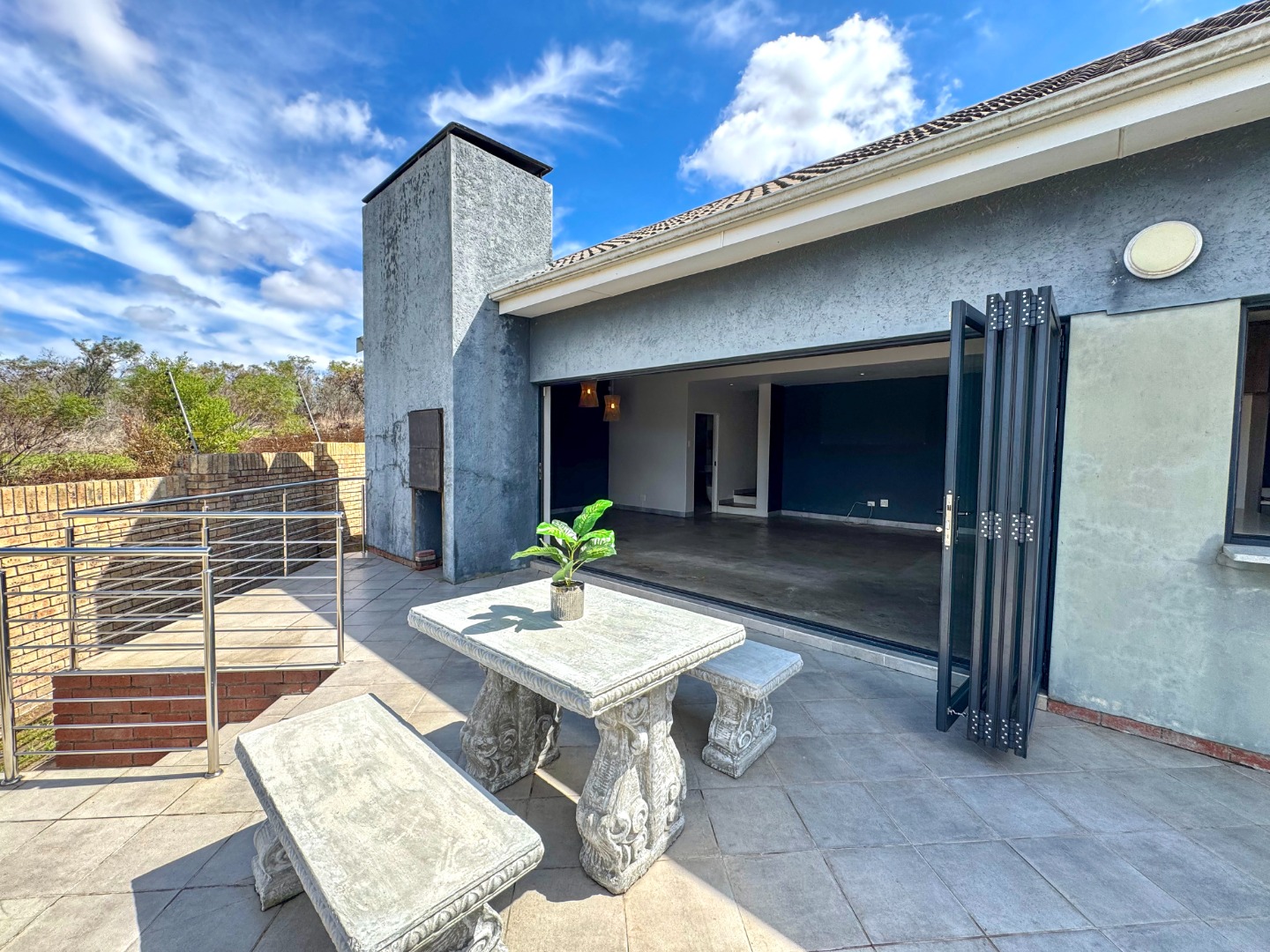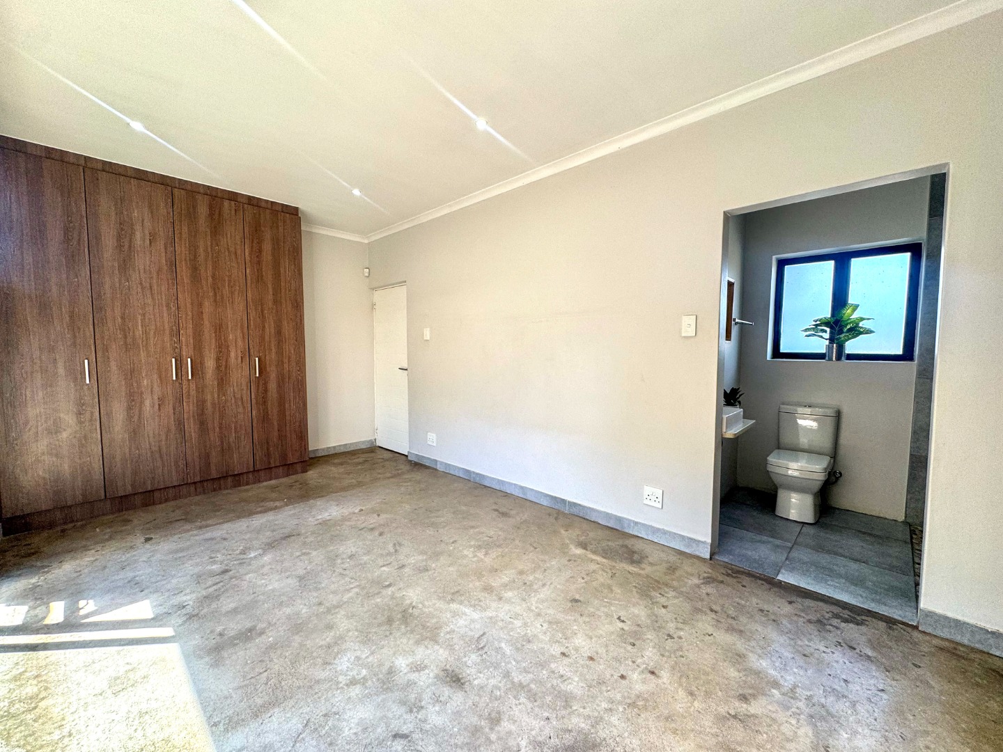 The spacious open-plan lounge, dining area, and kitchen flow seamlessly onto an entertainers’ deck through stacker doors, creating the perfect indoor-outdoor living experience. An indoor and outdoor braai ensures year-round entertaining.
