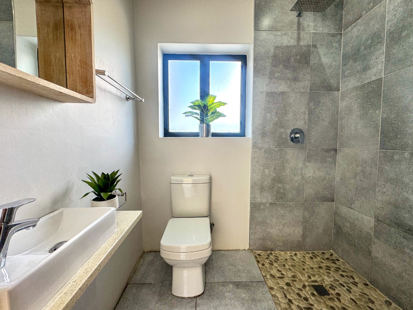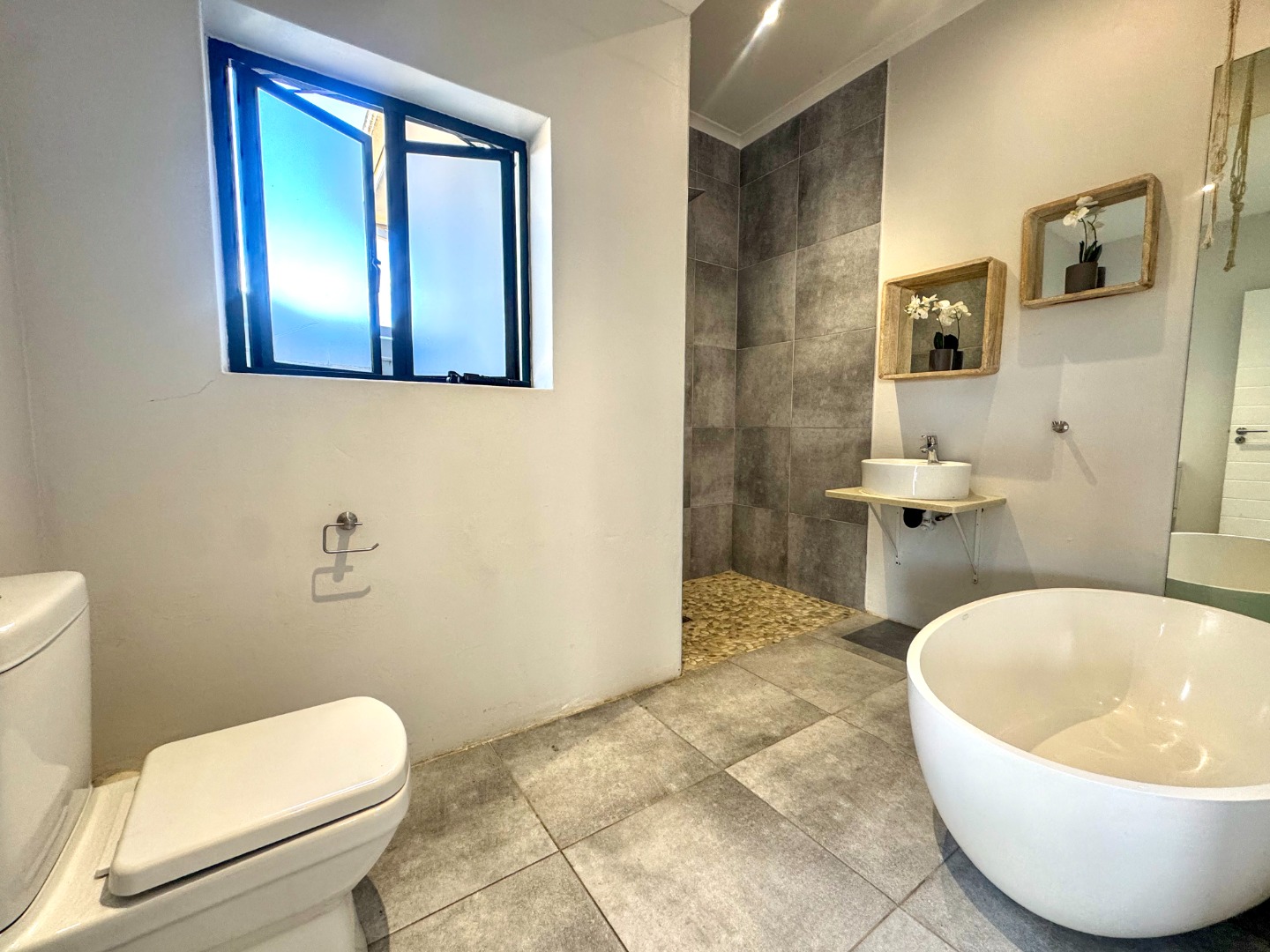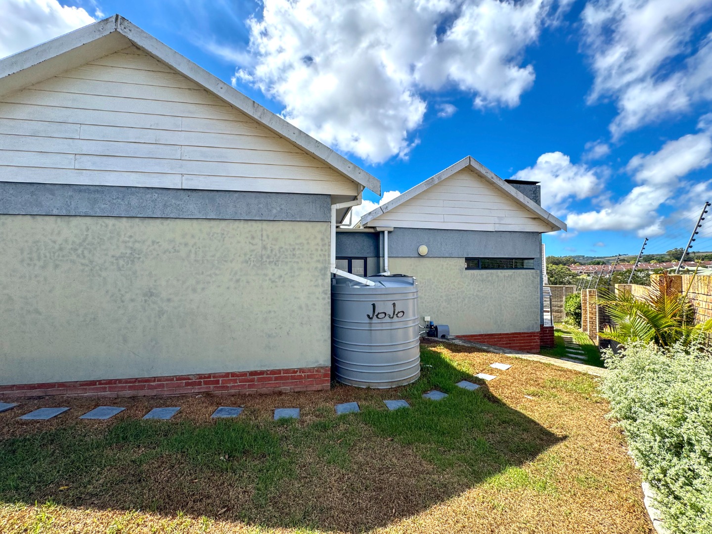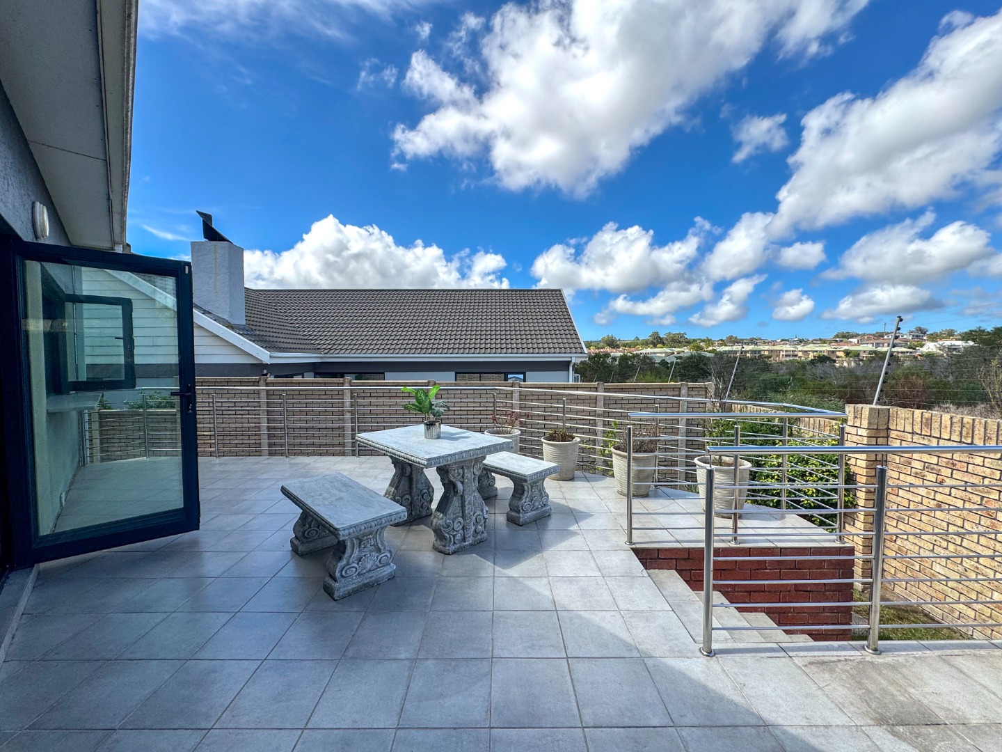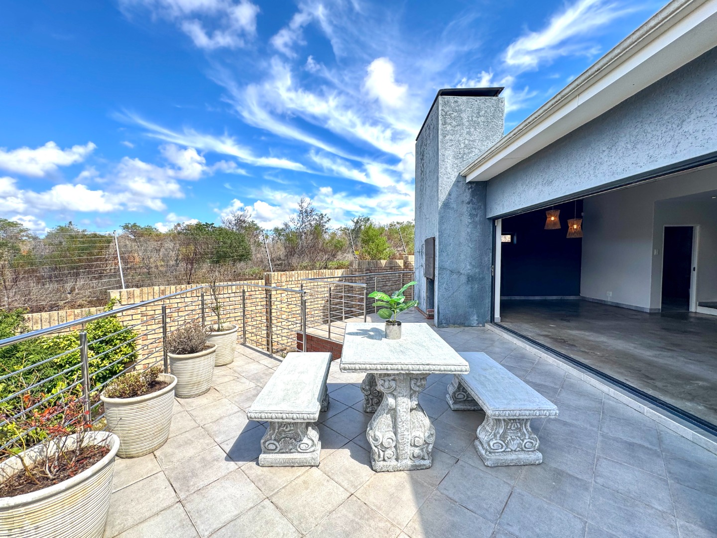 The spacious open-plan lounge, dining area, and kitchen flow seamlessly onto an entertainers’ deck through stacker doors, creating the perfect indoor-outdoor living experience. An indoor and outdoor braai ensures year-round entertaining.