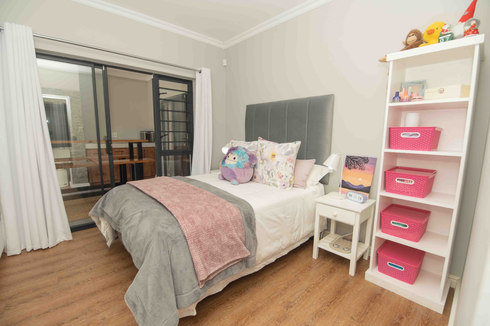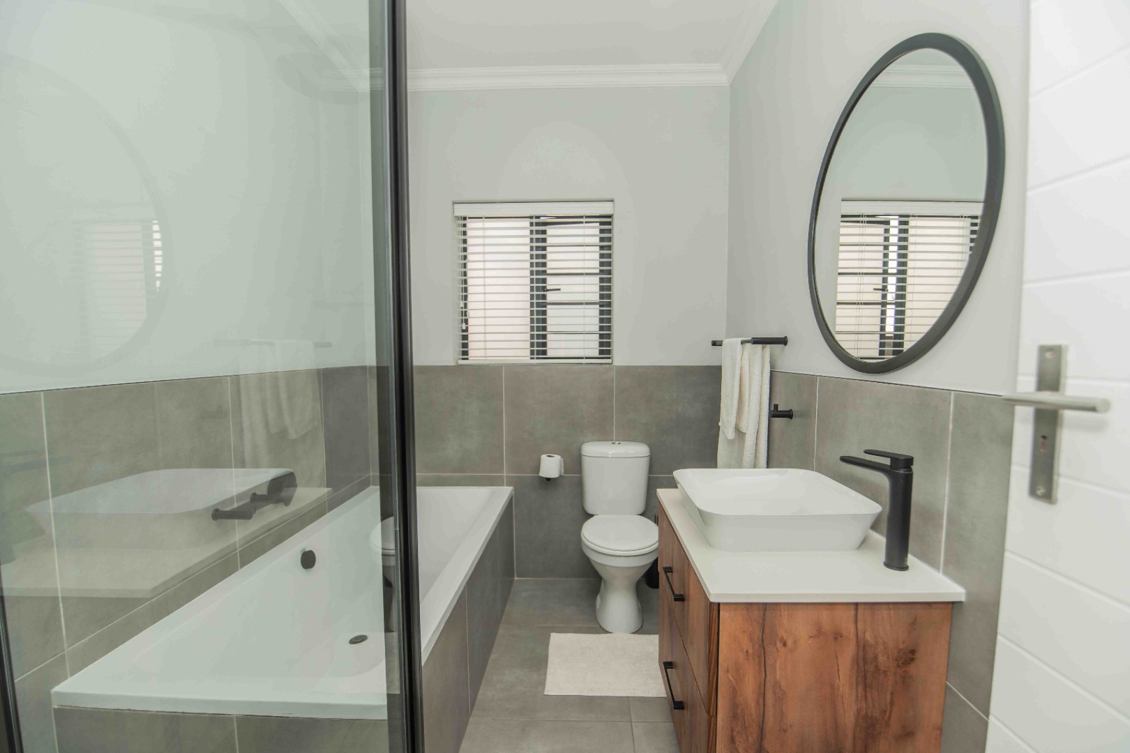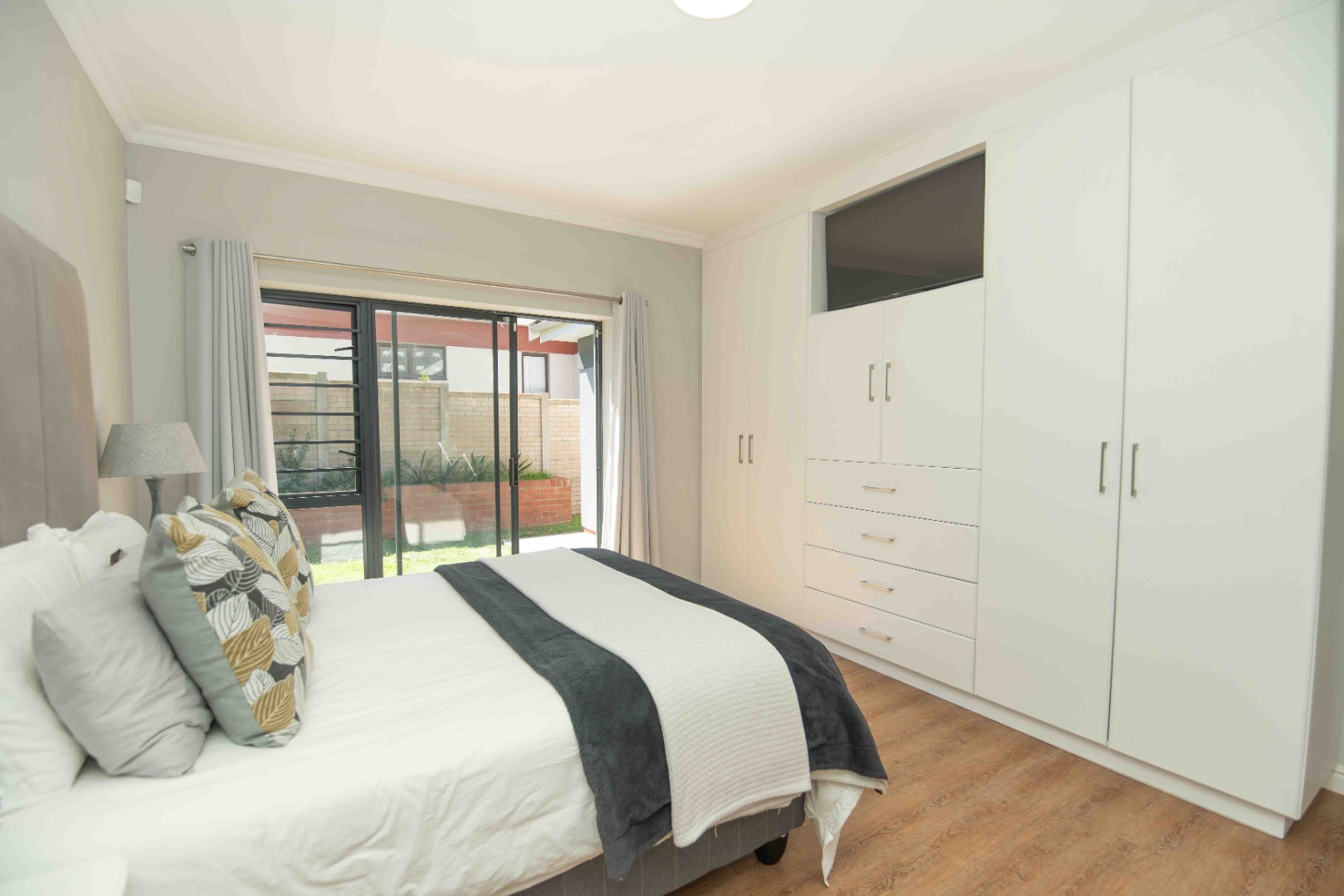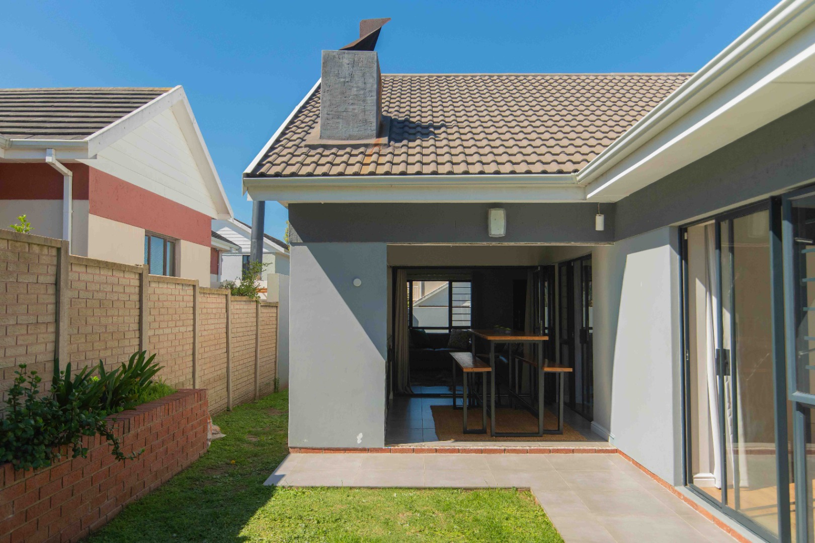 At the heart of the home, a beautifully appointed open-plan kitchen with scullery combine form and function, featuring a freestanding oven with gas hob and modern quartz counters throughout. Perfectly suited to both everyday living and stylish entertaining. The adjoining living areas extend effortlessly onto a covered verandah with a built-in braai, creating a seamless indoor/outdoor lifestyle ideal for year-round enjoyment.