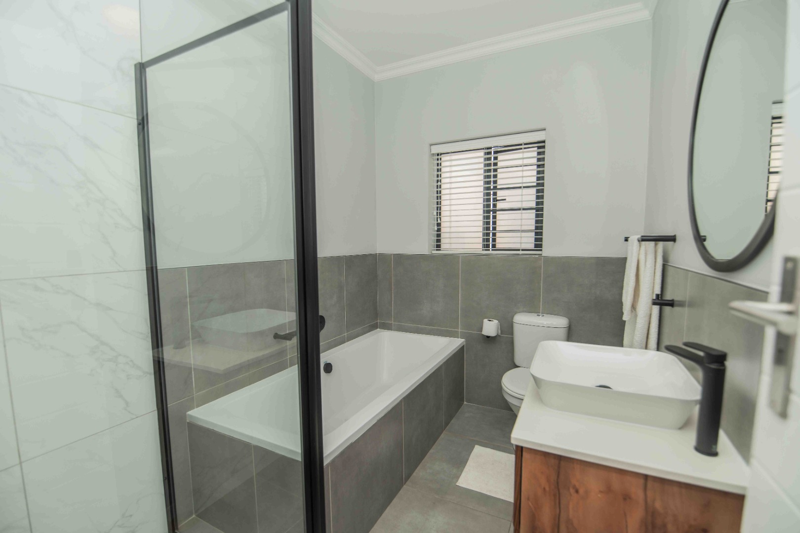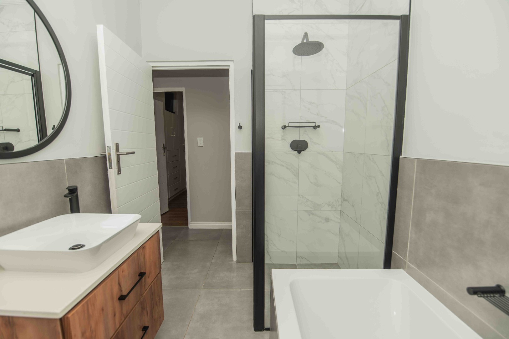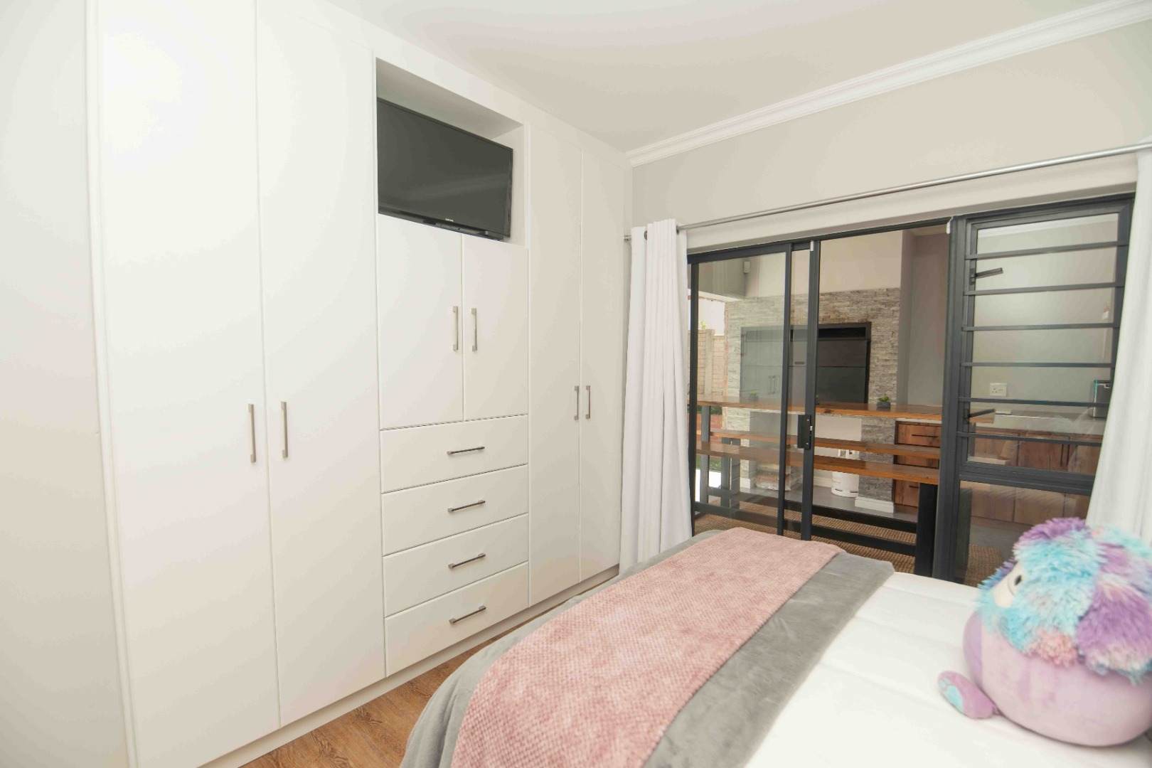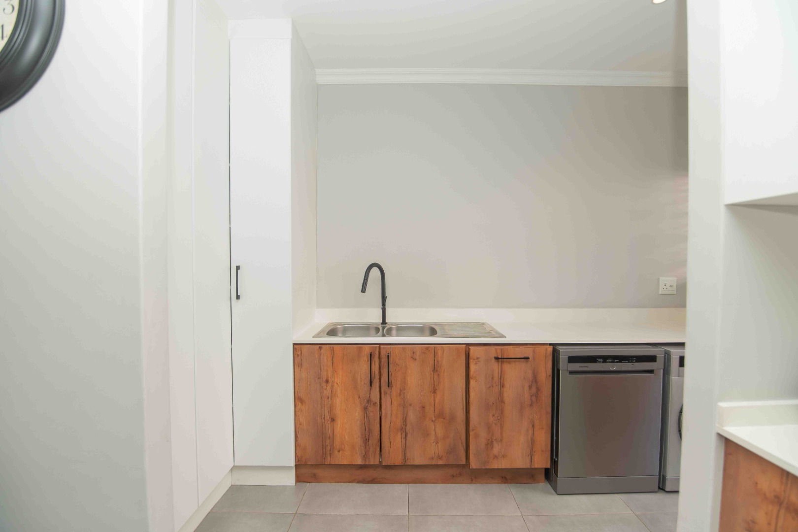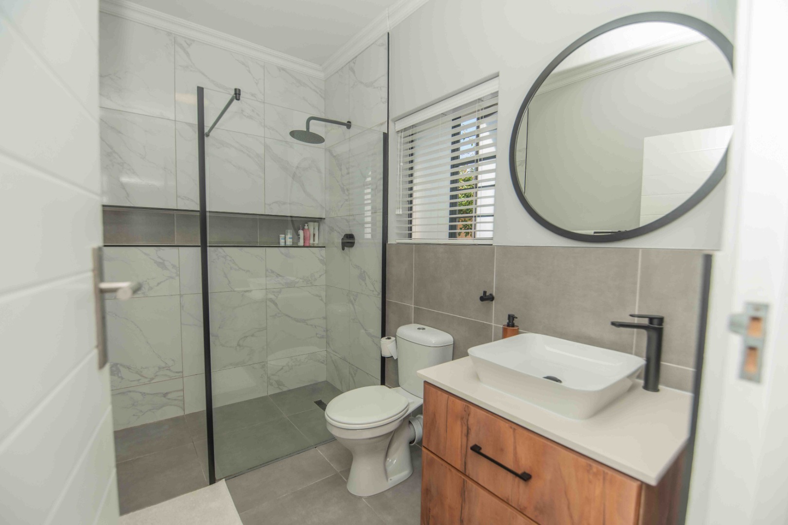 At the heart of the home, a beautifully appointed open-plan kitchen with scullery combine form and function, featuring a freestanding oven with gas hob and modern quartz counters throughout. Perfectly suited to both everyday living and stylish entertaining. The adjoining living areas extend effortlessly onto a covered verandah with a built-in braai, creating a seamless indoor/outdoor lifestyle ideal for year-round enjoyment.