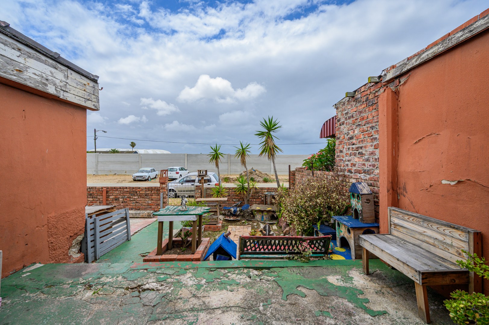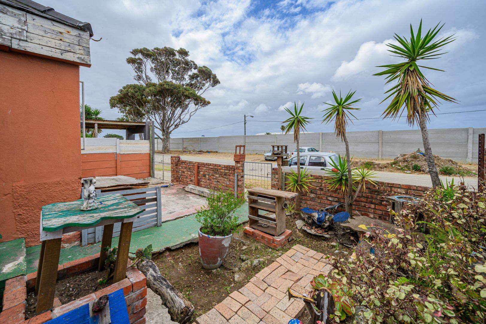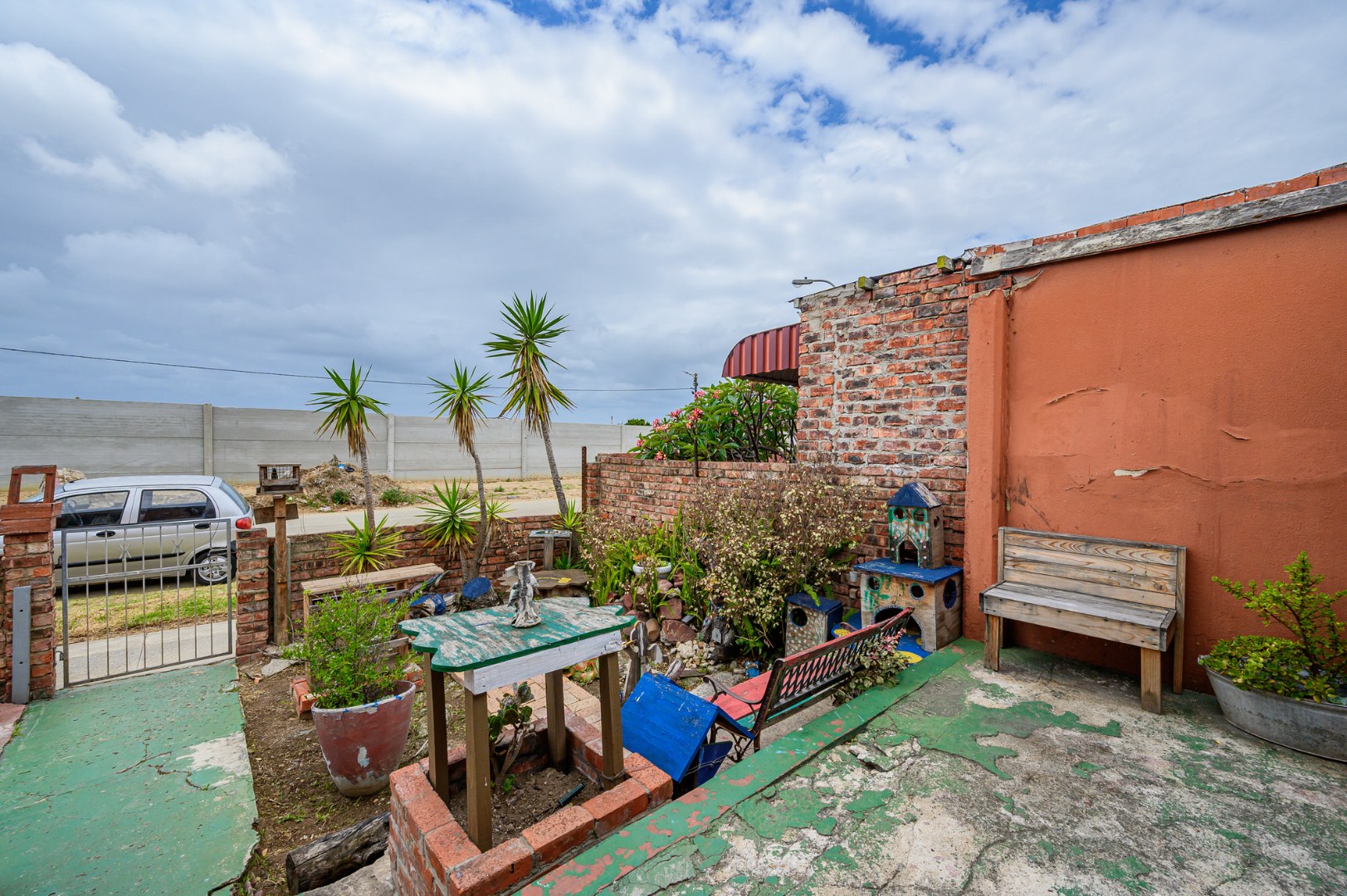 Inside, the home comprises a sunny lounge, a functional kitchen, and a welcoming front porch area. The bathroom is fitted with a bath, toilet, and wash basin. Flooring is a combination of tiled and wooden floors, adding character throughout the home.