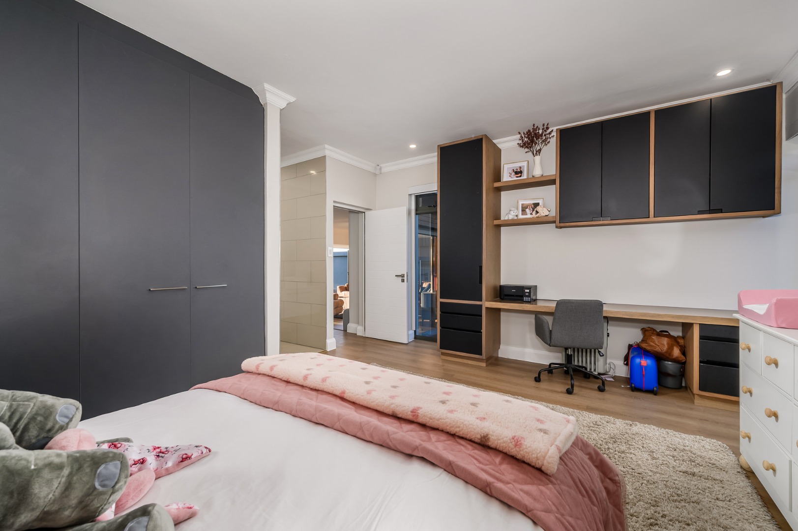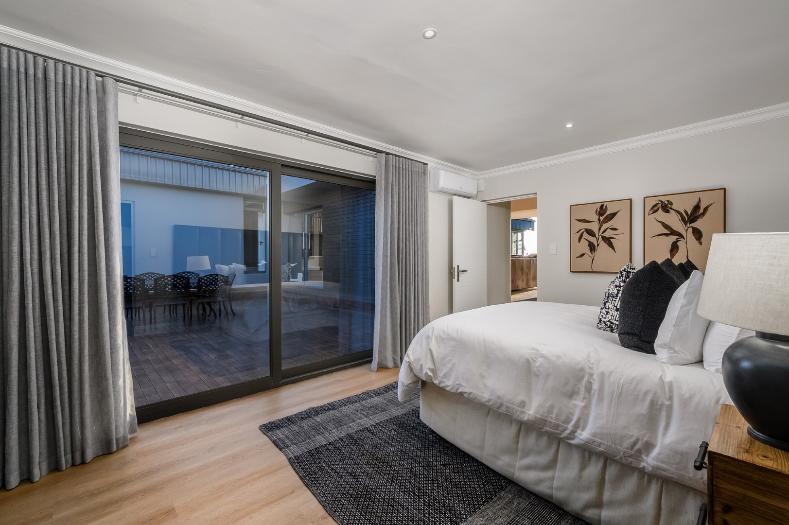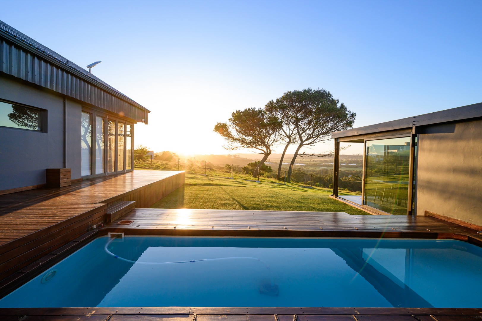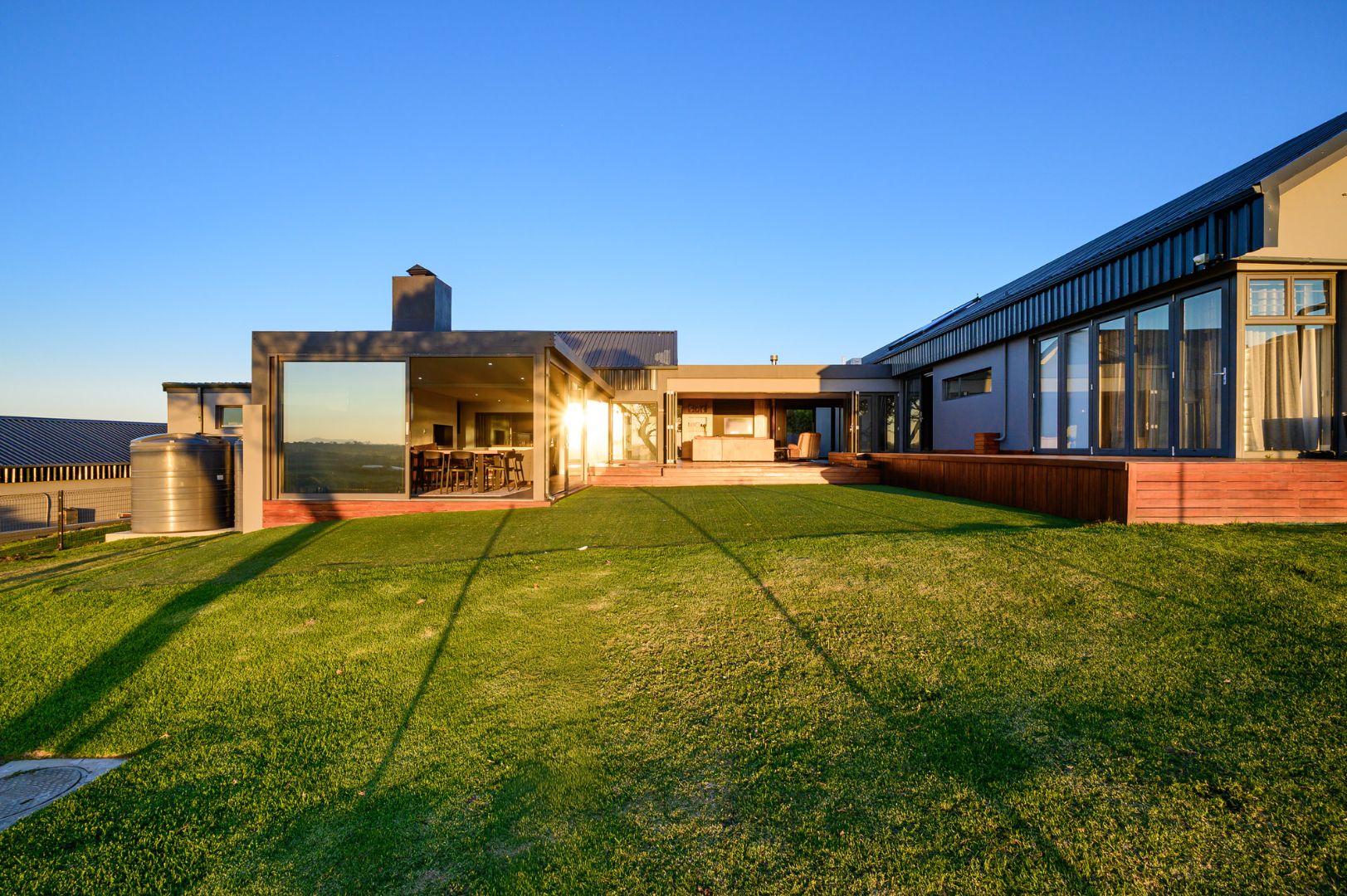 Inside, the home boasts modern finishes and a seamless open-plan layout connecting the lounge, dining area, and designer kitchen. The stylish kitchen includes a centre island, separate scullery, and a convenient serving hatch to the entertainment area. The entertainment room is perfect for hosting, complete with a built-in braai, comfortable seating, and dining area - all overlooking the park and spectacular sunsets.