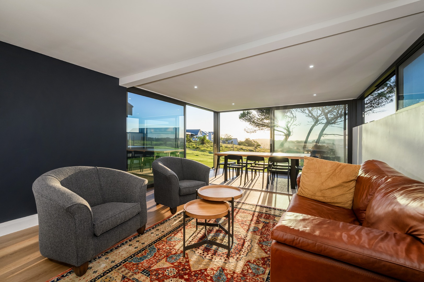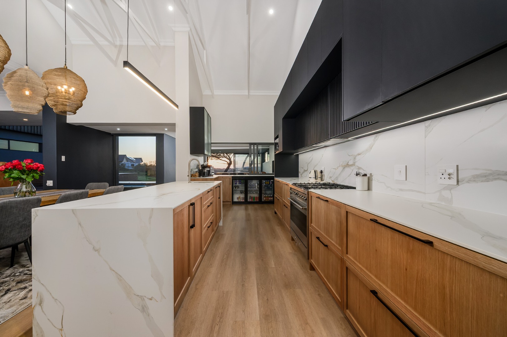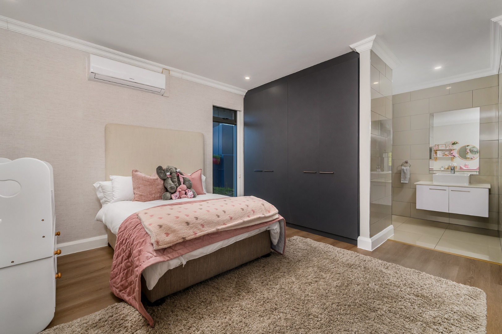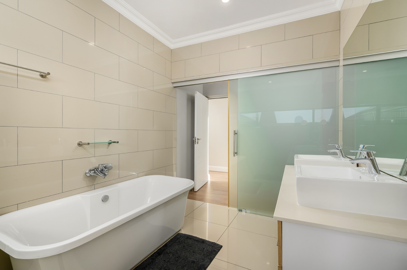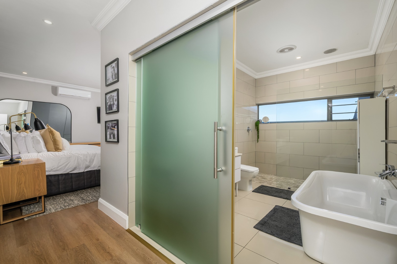Inside, the home boasts modern finishes and a seamless open-plan layout connecting the lounge, dining area, and designer kitchen. The stylish kitchen includes a centre island, separate scullery, and a convenient serving hatch to the entertainment area. The entertainment room is perfect for hosting, complete with a built-in braai, comfortable seating, and dining area - all overlooking the park and spectacular sunsets.