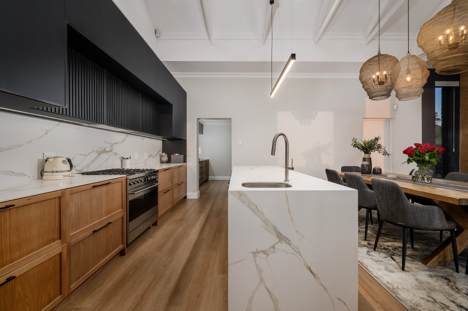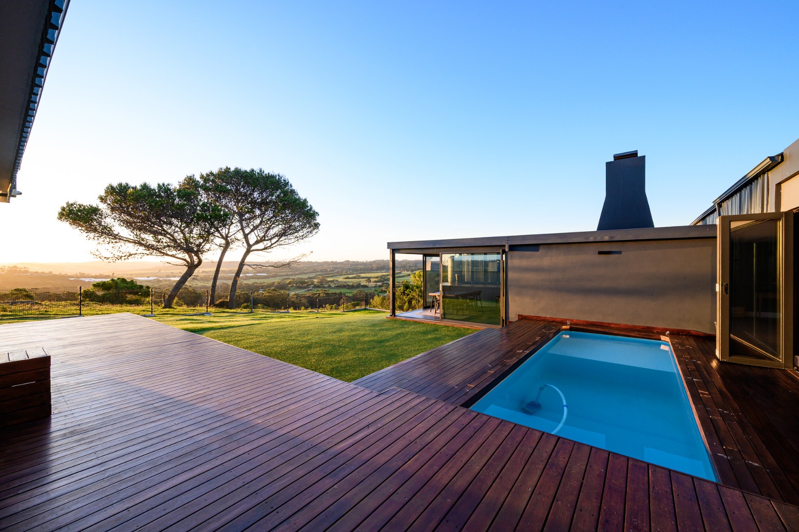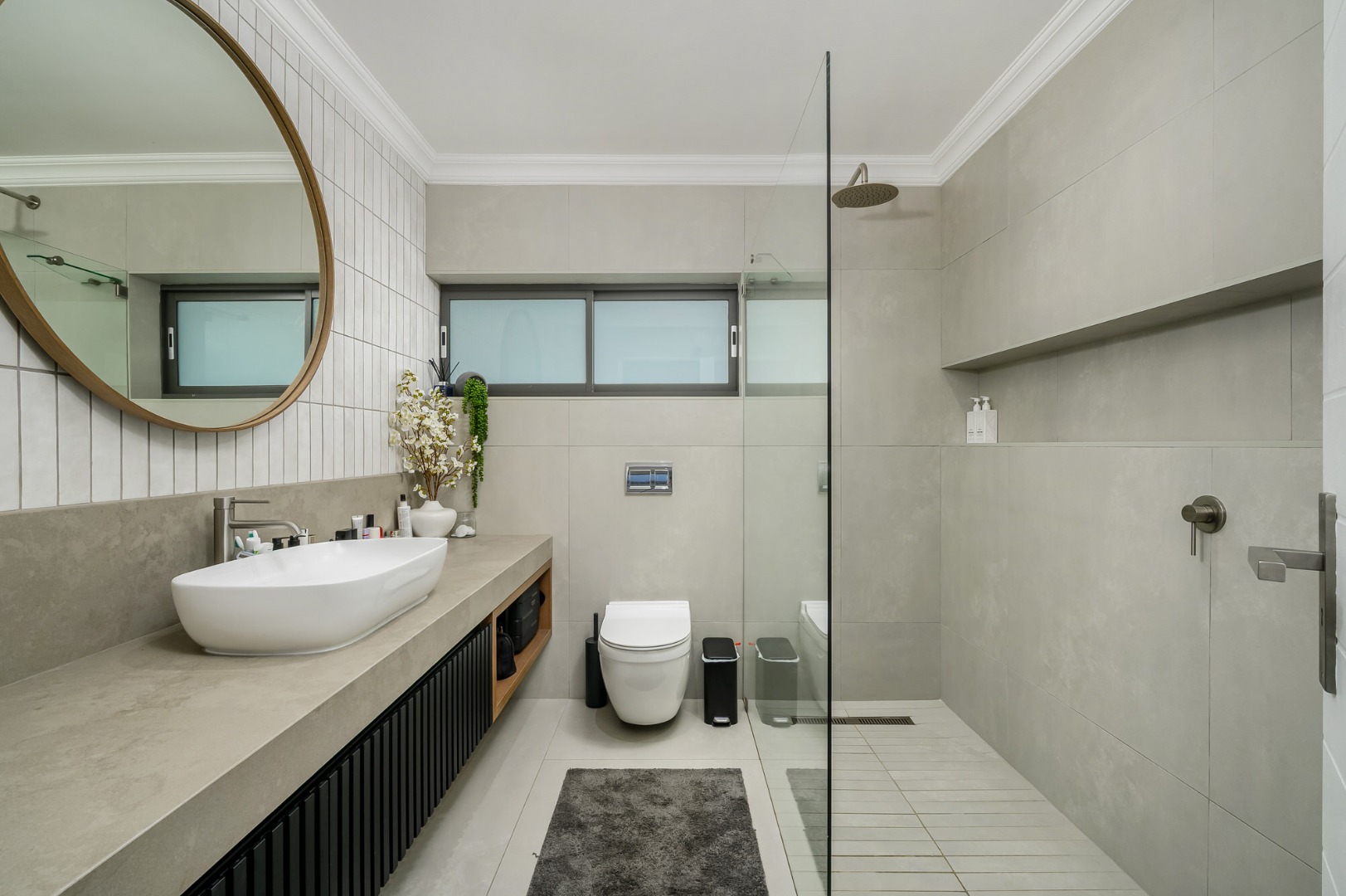 At the back, a wooden deck and pool area create a peaceful retreat, with the main and third bedrooms opening directly onto this space. From here, you can soak in panoramic views of the park and enjoy exclusive resident access to its tranquil surrounds.
