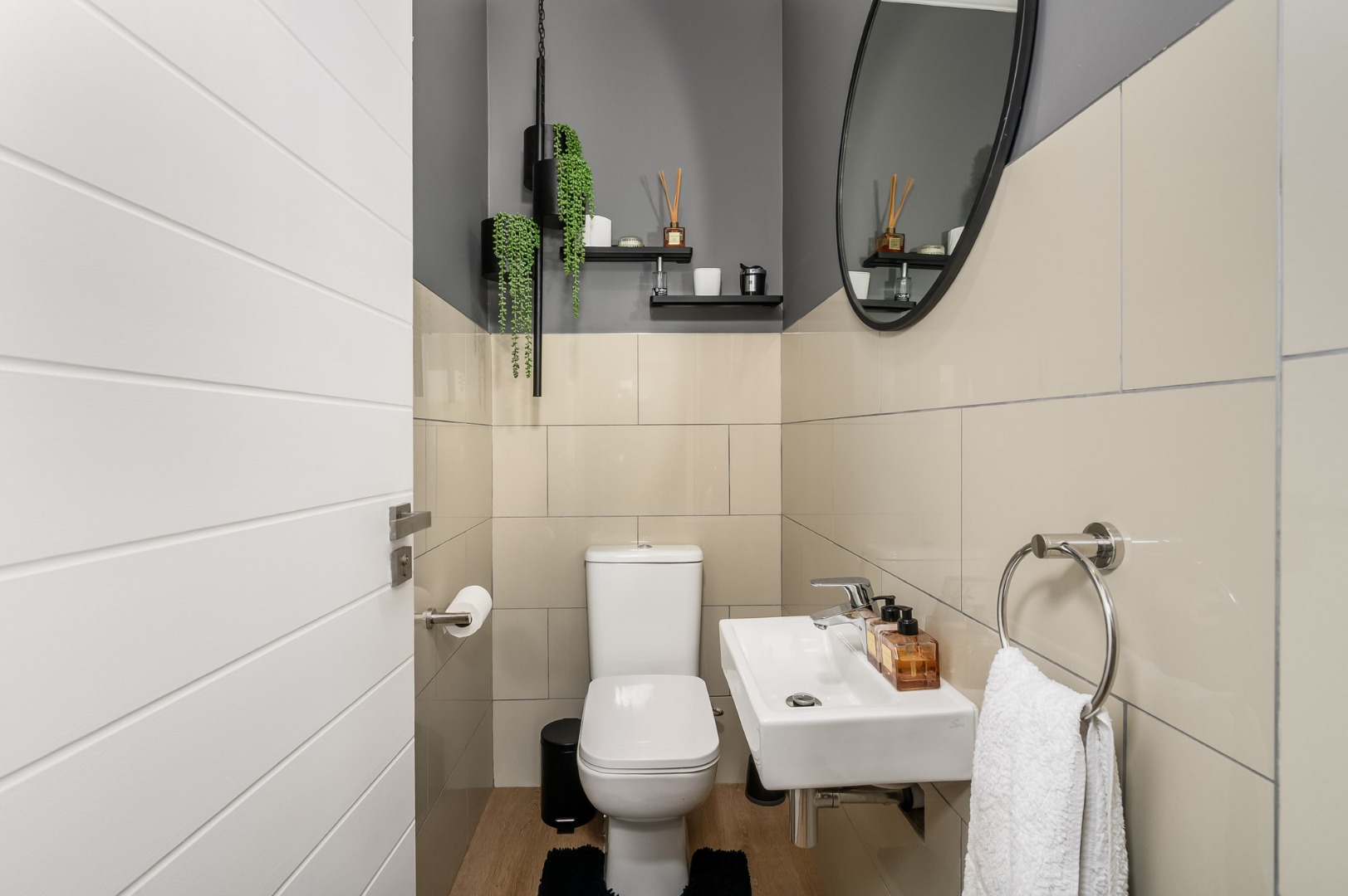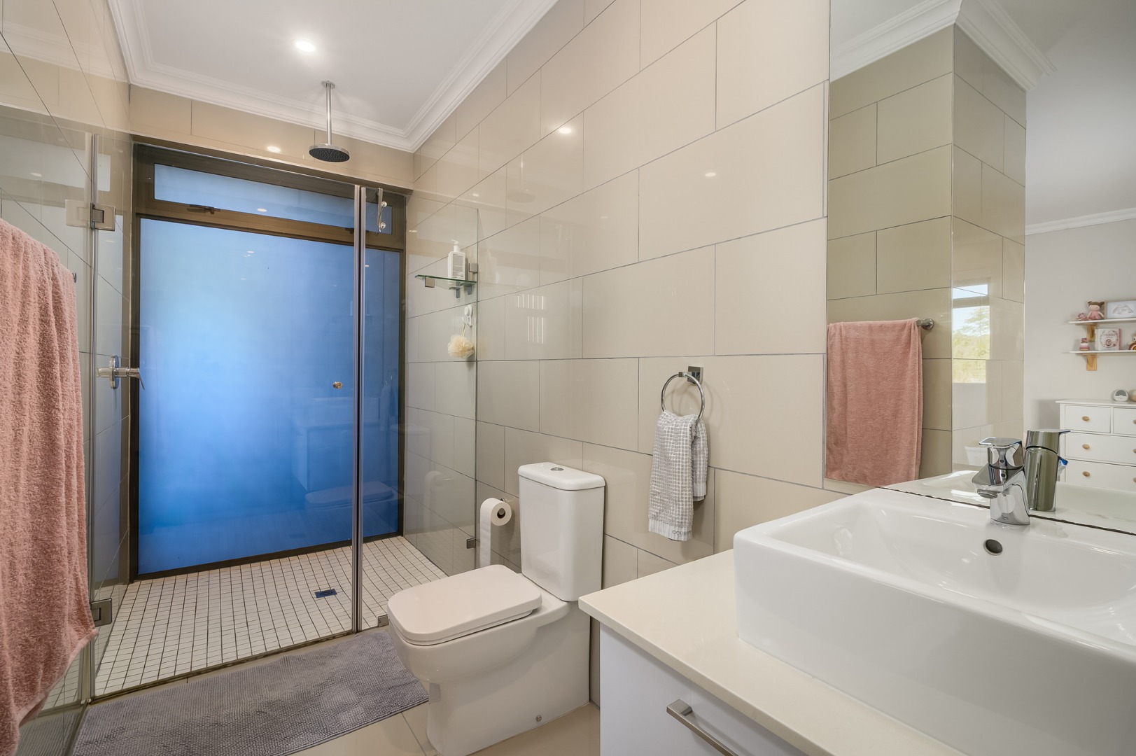 All four bedrooms feature luxury vinyl flooring, ample built-in cupboards, and luxurious en-suite bathrooms. The fourth bedroom, ideal for guests, is positioned off the main living areas and opens onto the front deck.