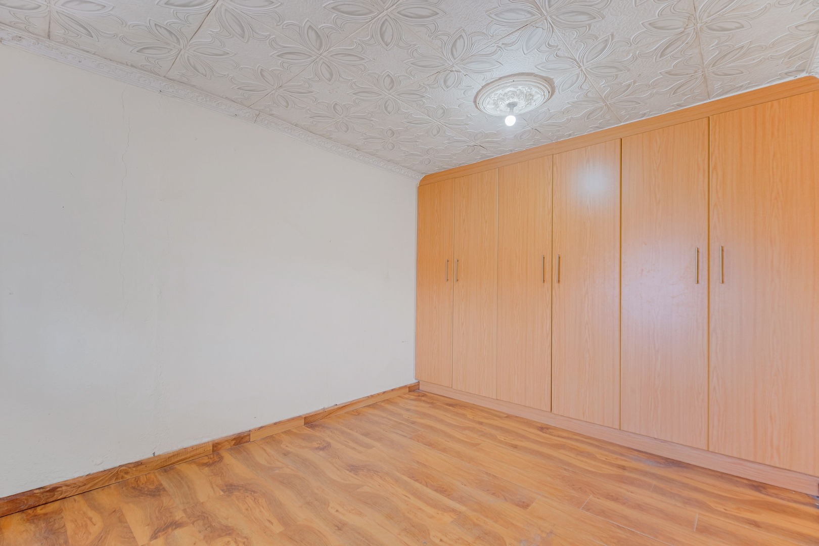 Inside, the home features a lounge and a kitchen, providing essential living . Accommodation comprises two bedrooms and one bathroom, catering to a small family or individual. The bedrooms also benefit from the consistent laminate wood flooring found throughout much of the home, offering a cohesive interior feel.
