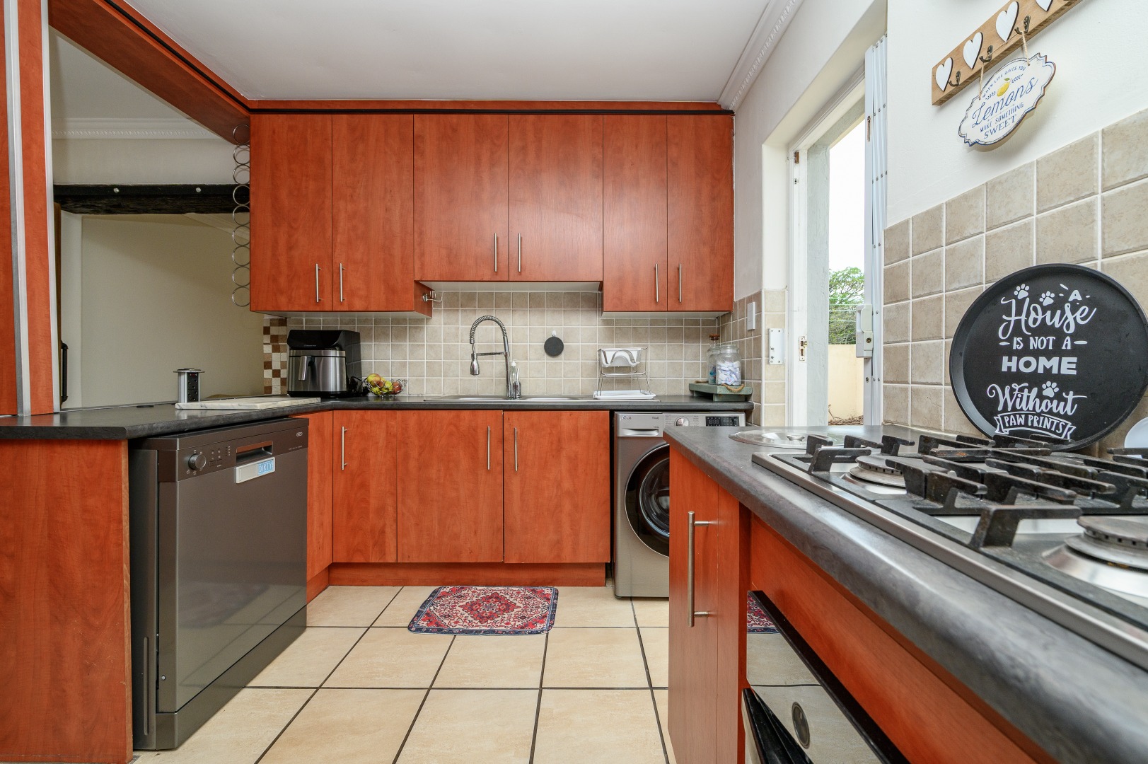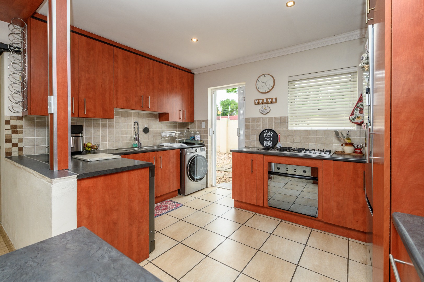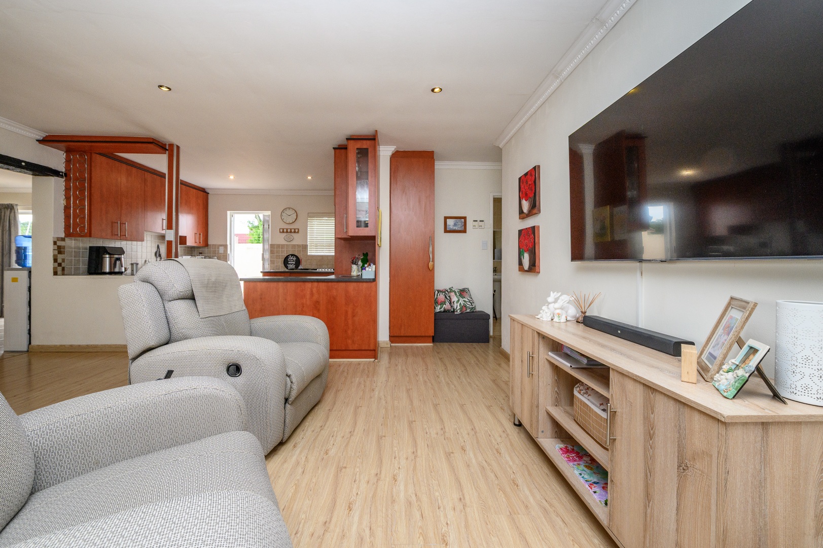 Step outside to discover a stunning entertainment area, perfect for hosting guests or enjoying quiet evenings. This space connects to an enclosed back garden, providing a private outdoor sanctuary. The property also boasts a dedicated braai room, ideal for year-round outdoor cooking. With two dedicated parking spaces and a pet-friendly policy, this townhouse combines practicality with comfort.
