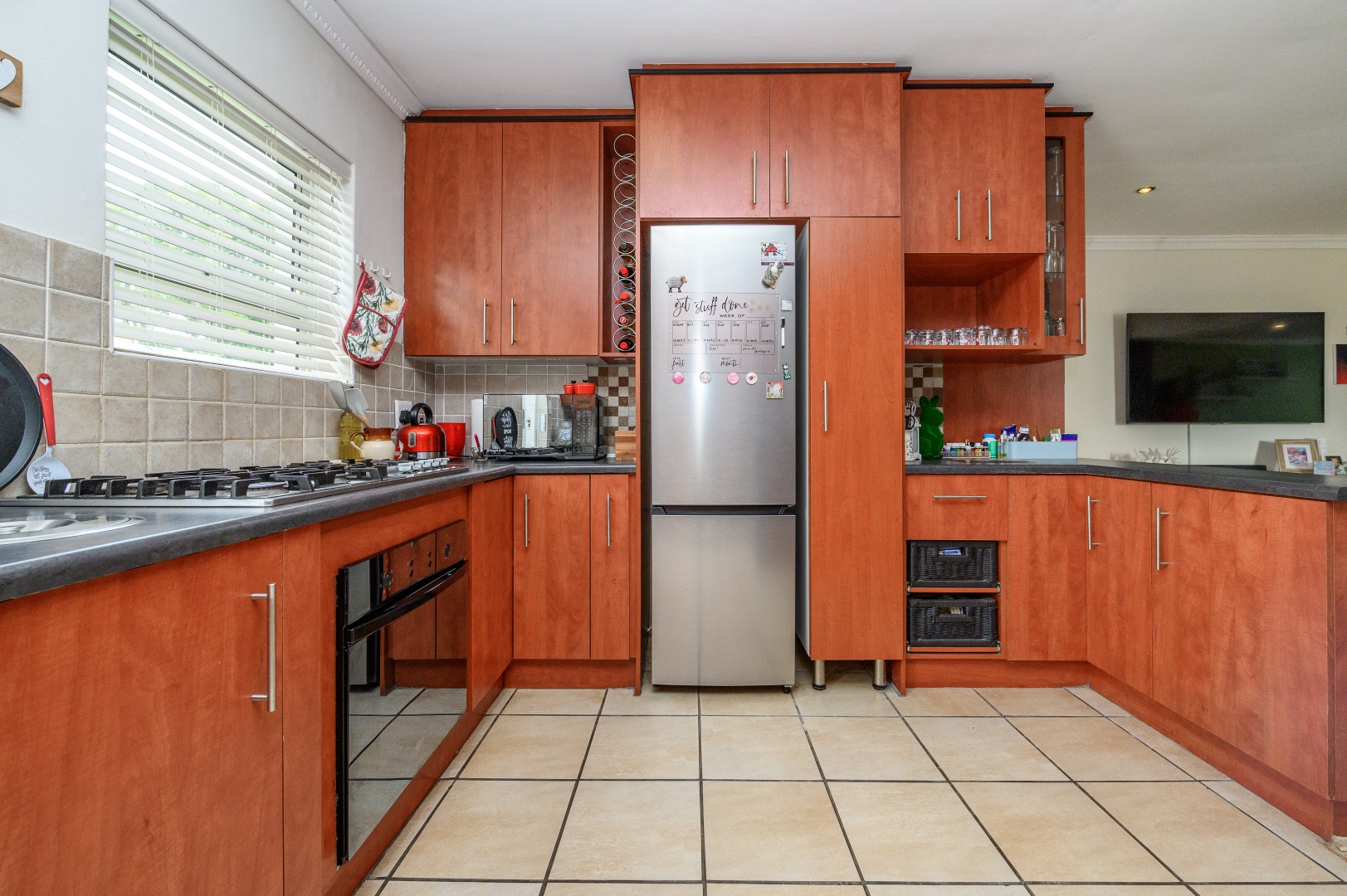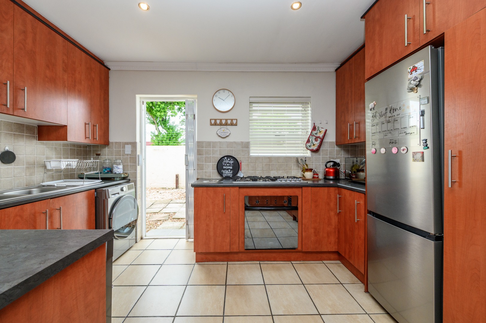 Step outside to discover a stunning entertainment area, perfect for hosting guests or enjoying quiet evenings. This space connects to an enclosed back garden, providing a private outdoor sanctuary. The property also boasts a dedicated braai room, ideal for year-round outdoor cooking. With two dedicated parking spaces and a pet-friendly policy, this townhouse combines practicality with comfort.