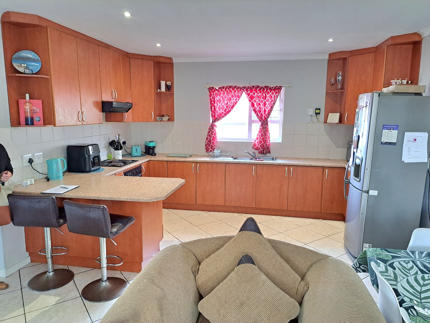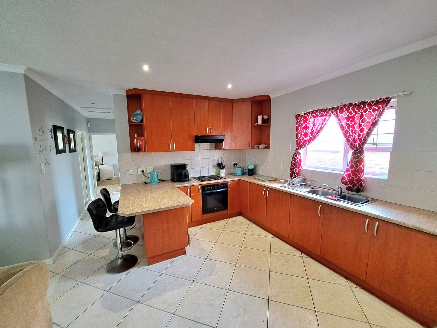 This charming residential property features three comfortable bedrooms and two modern bathrooms, including a private en-suite for the main bedroom, ensuring convenience and privacy. The home presents an open-plan layout, seamlessly connecting the well-appointed kitchen, dining and lounge. This space connects with a covered braai patio, perfect for both everyday living, entertaining and relaxation. Outdoor living is enhanced by a private garden, fully walled and perfect for kids and their pets as well as your gardening projects.