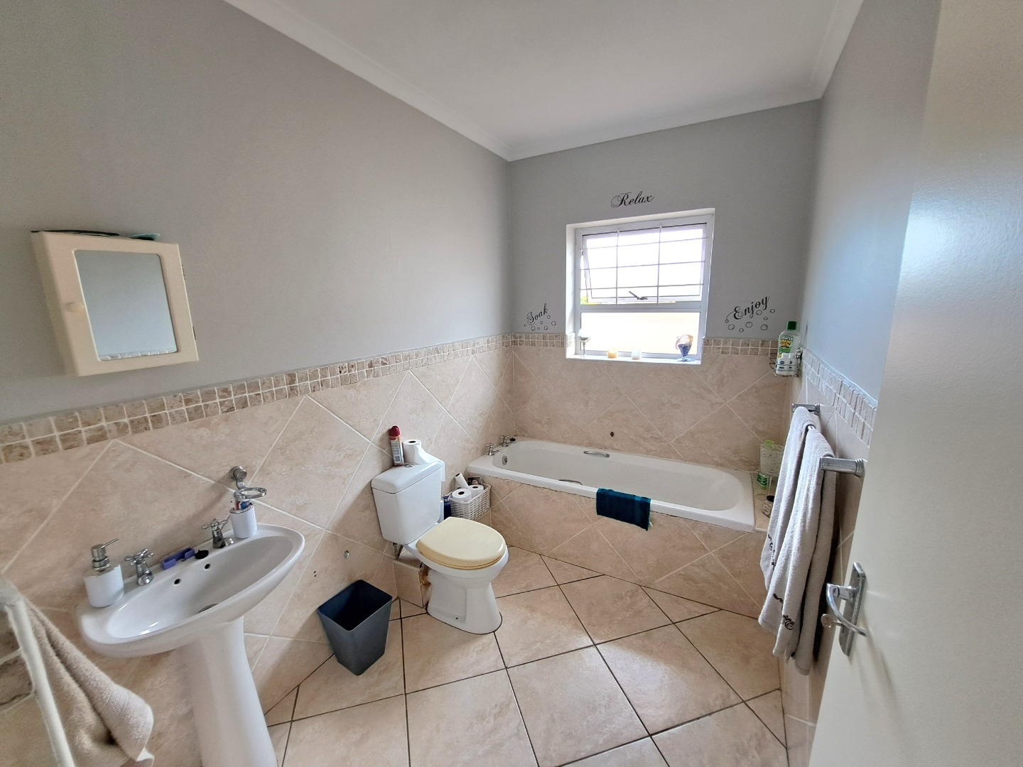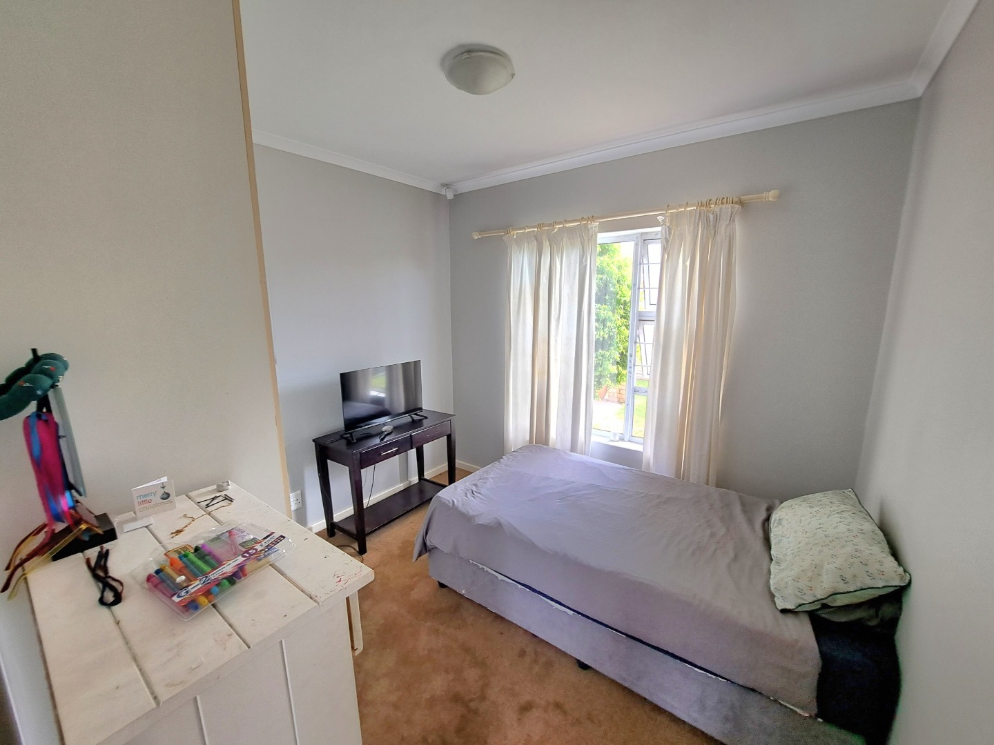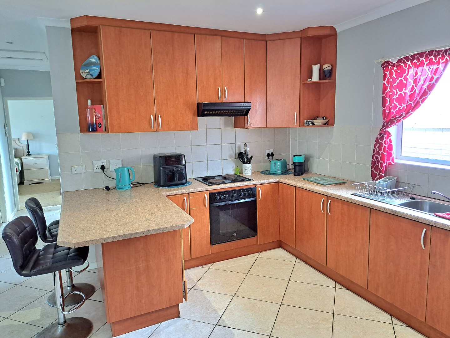This charming residential property features three comfortable bedrooms and two modern bathrooms, including a private en-suite for the main bedroom, ensuring convenience and privacy. The home presents an open-plan layout, seamlessly connecting the well-appointed kitchen, dining and lounge. This space connects with a covered braai patio, perfect for both everyday living, entertaining and relaxation. Outdoor living is enhanced by a private garden, fully walled and perfect for kids and their pets as well as your gardening projects.