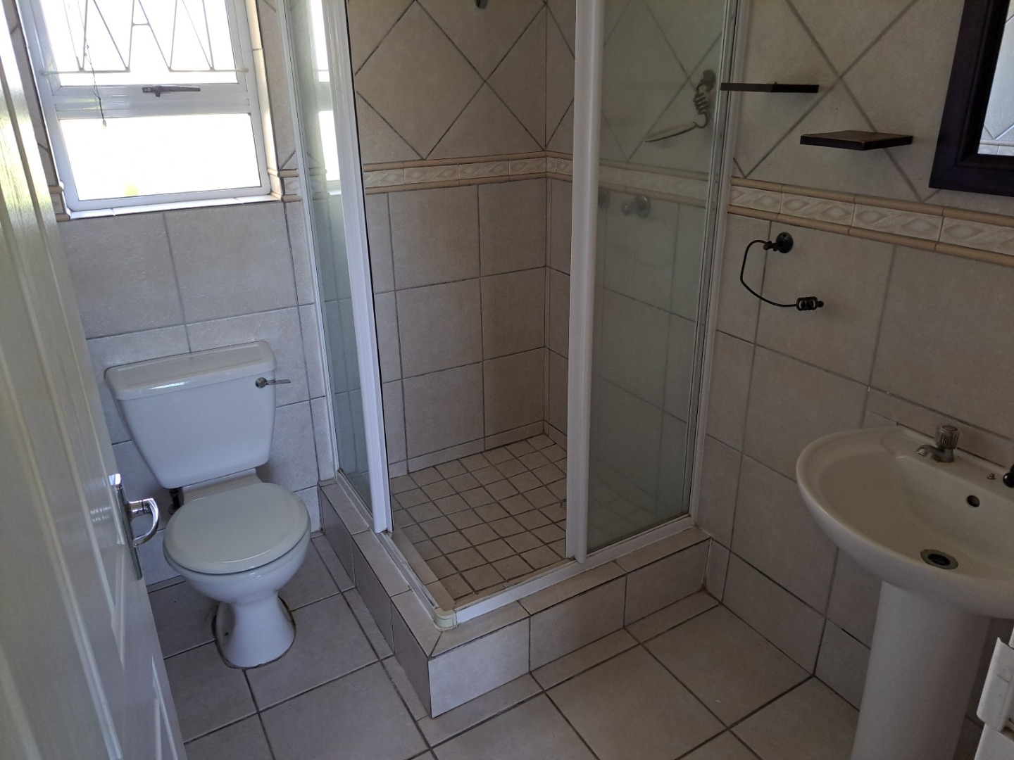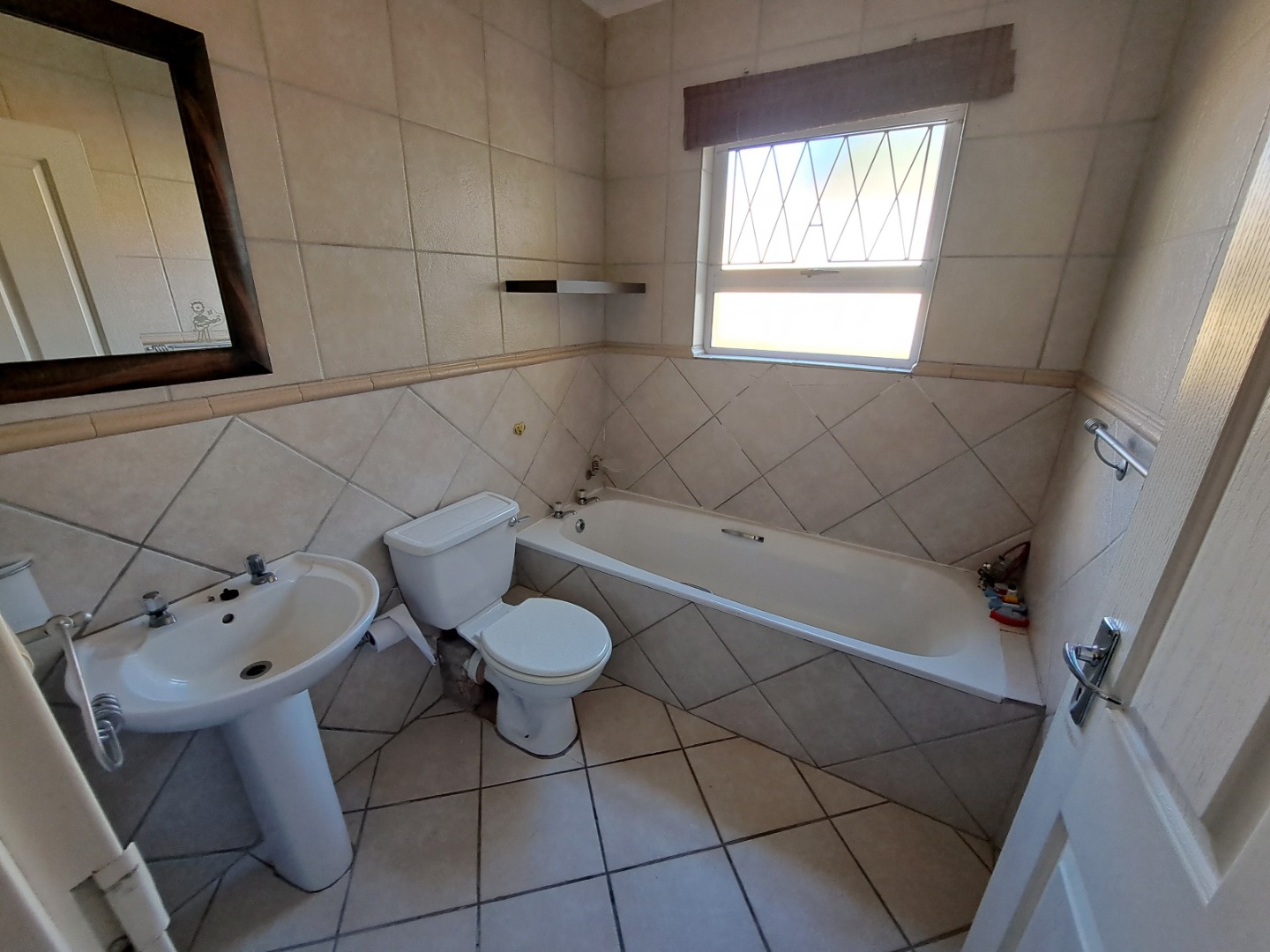 The design is efficent with open plan living, 3 bedrooms with built in cupboards a kids bathroom as well as an ensuite and a double garage. There is good security and an outdoor braai. Enclosed yard area for your furry family (dogs are allowed, unfortunately no cats)