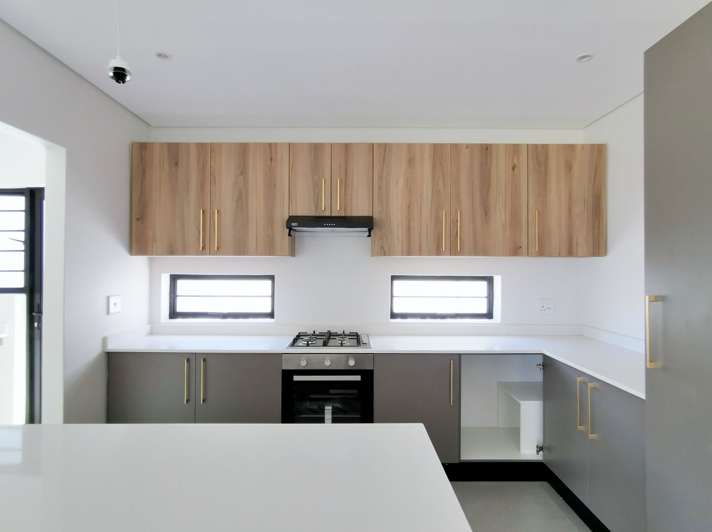Each residence features a seamless open-plan layout, stylish interiors with soft sheen finishes, Rustenburg granite countertops, and a fully fitted kitchen equipped with a gas hob, under-counter oven, and extractor. Bedrooms include built-in cupboards, and bathrooms are fitted with high-quality fixtures and finishes for everyday comfort and luxury. These homes are plastered and painted with tiled roofs, black aluminium windows with burglar bars, and remote garage doors. For added efficiency, every unit includes a solar-powered geyser and pre-paid electricity, supporting low-maintenance and energy-conscious living.