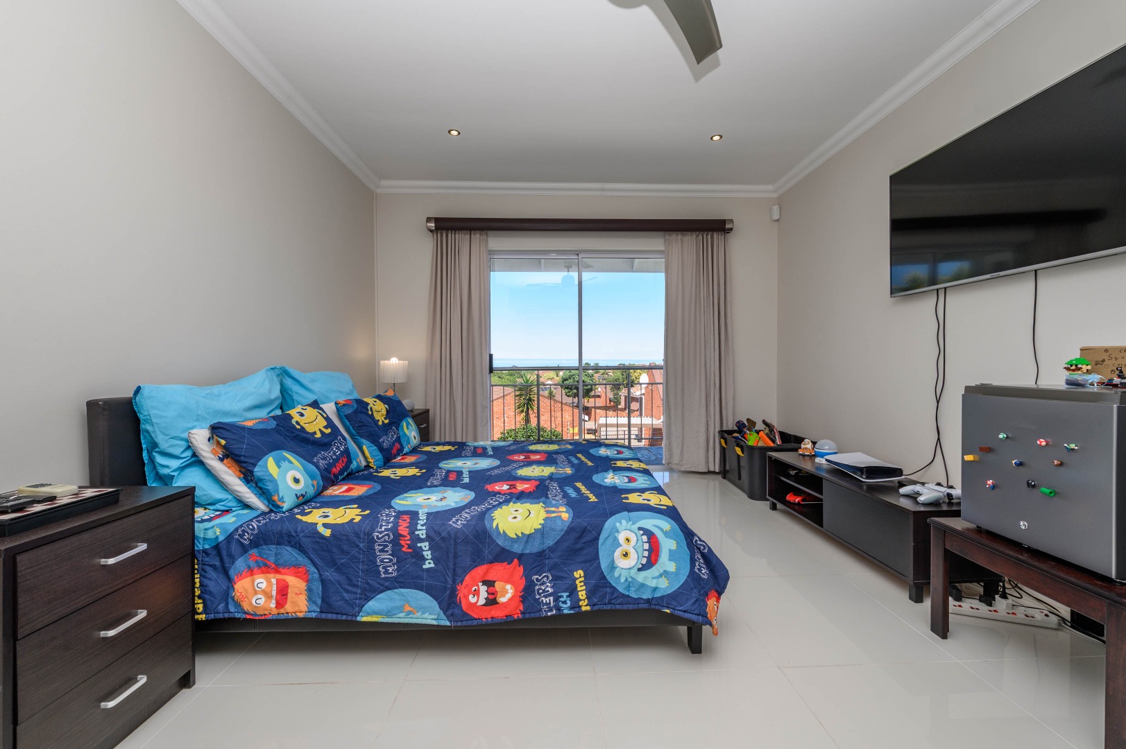 Upstairs, a pajama lounge adds an additional living space, opening onto a balcony with lovely sea views—a perfect spot to unwind.