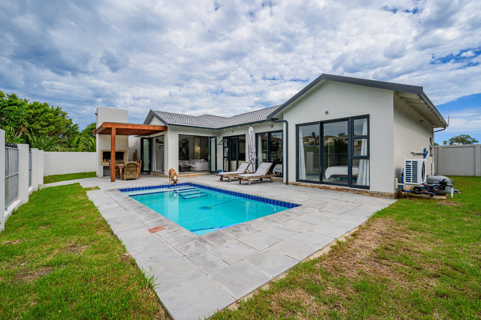 Exterior Features: Washing line, cladding/tiling to chimney and front of braai, doors for the braai unit.