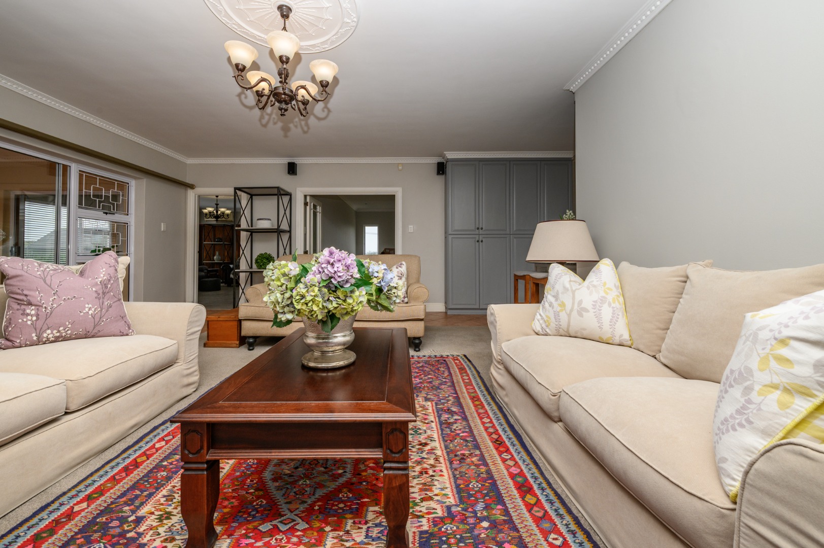 The generous layout includes a lounge, dining room, and family room, flowing into a stylish kitchen with breakfast nook.
