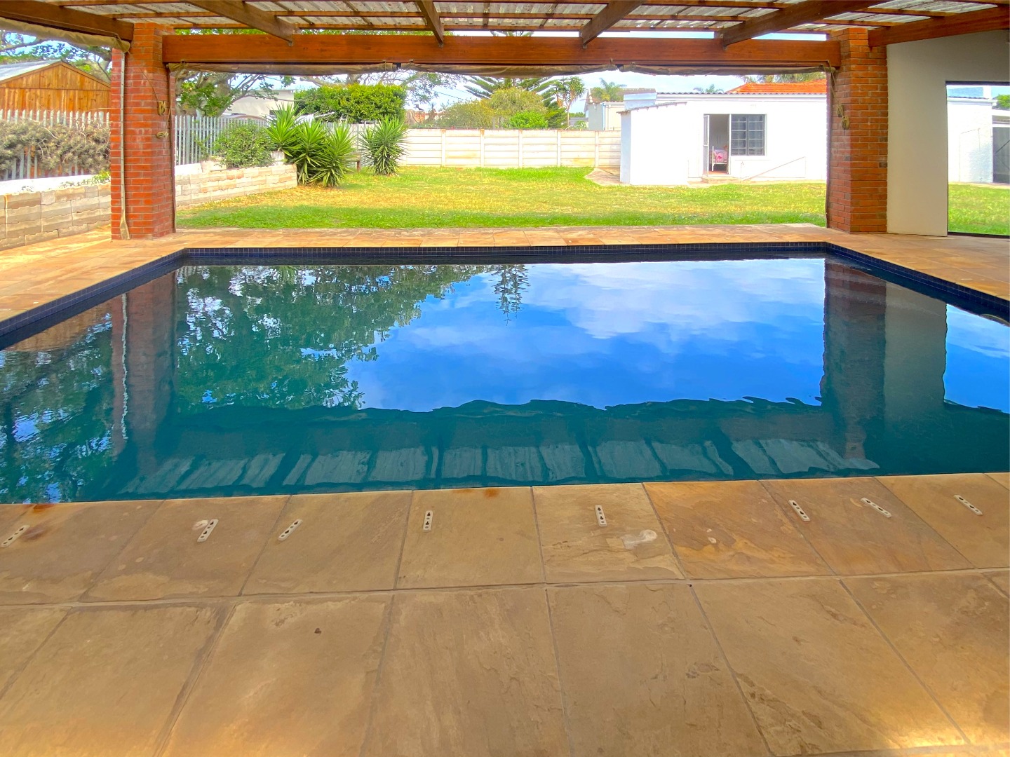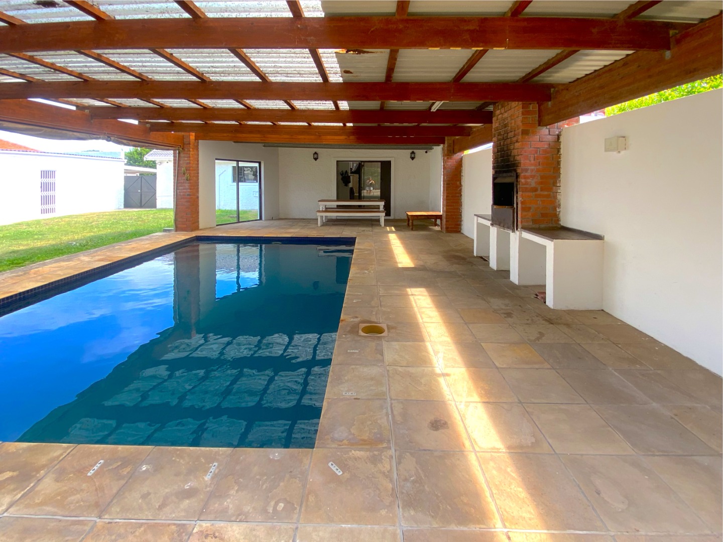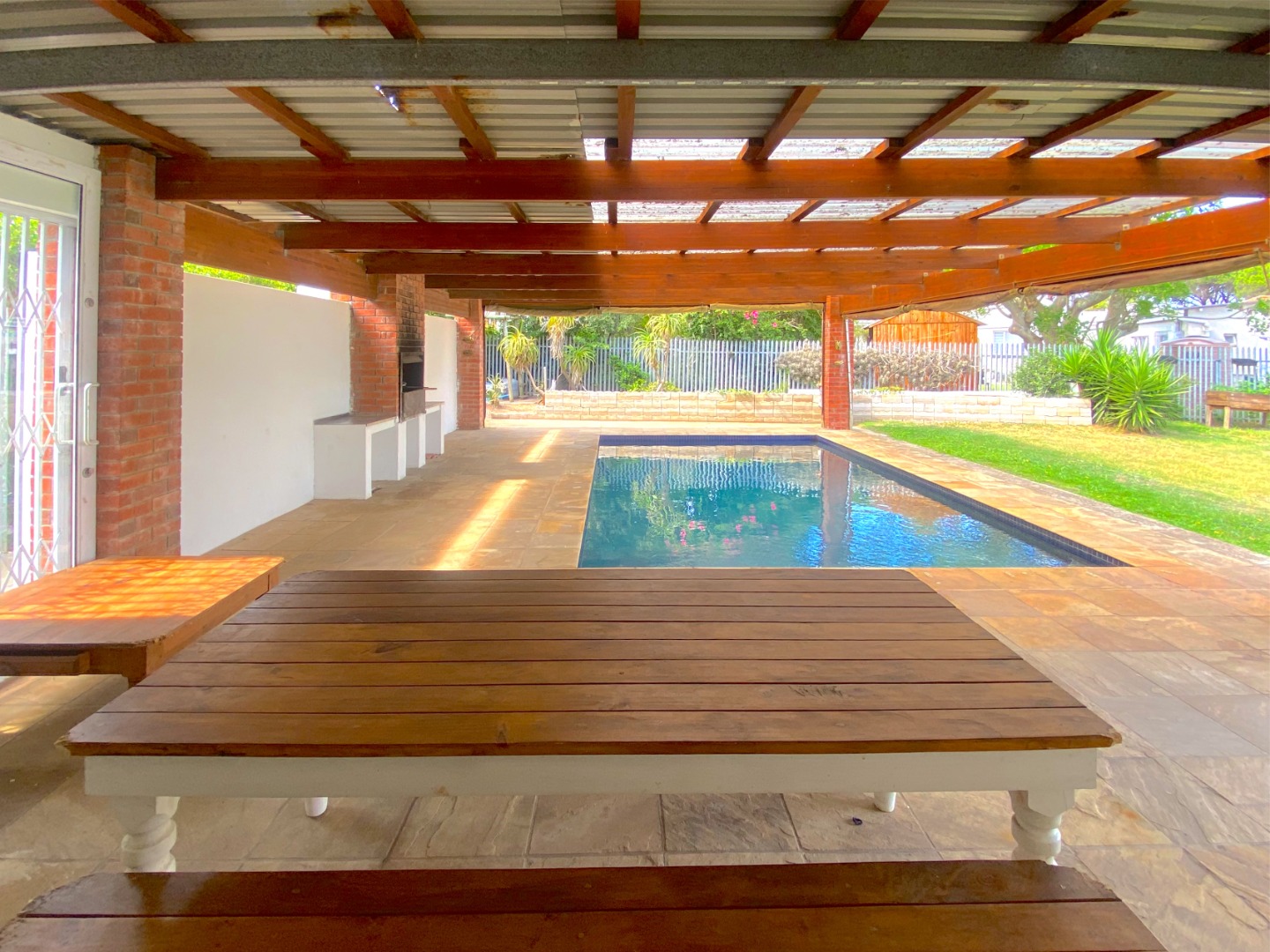 Outside, the property offers a covered pool area with a built-in braai, providing a practical space for relaxed weekends and gatherings. The yard is spacious and easy to maintain, with room for kids and pets.