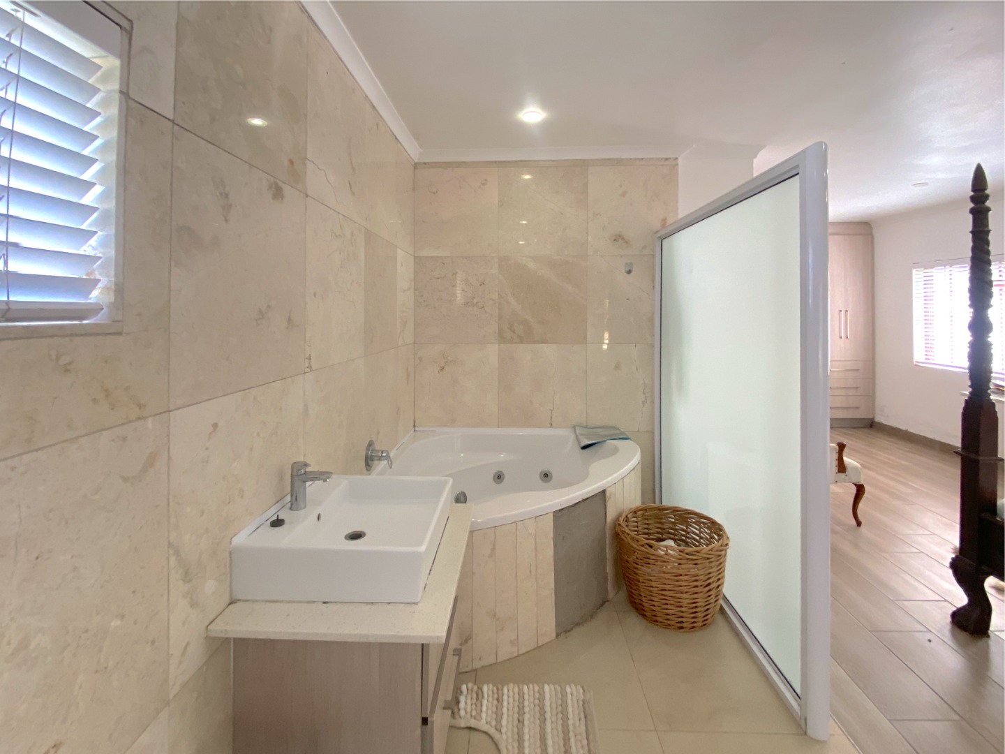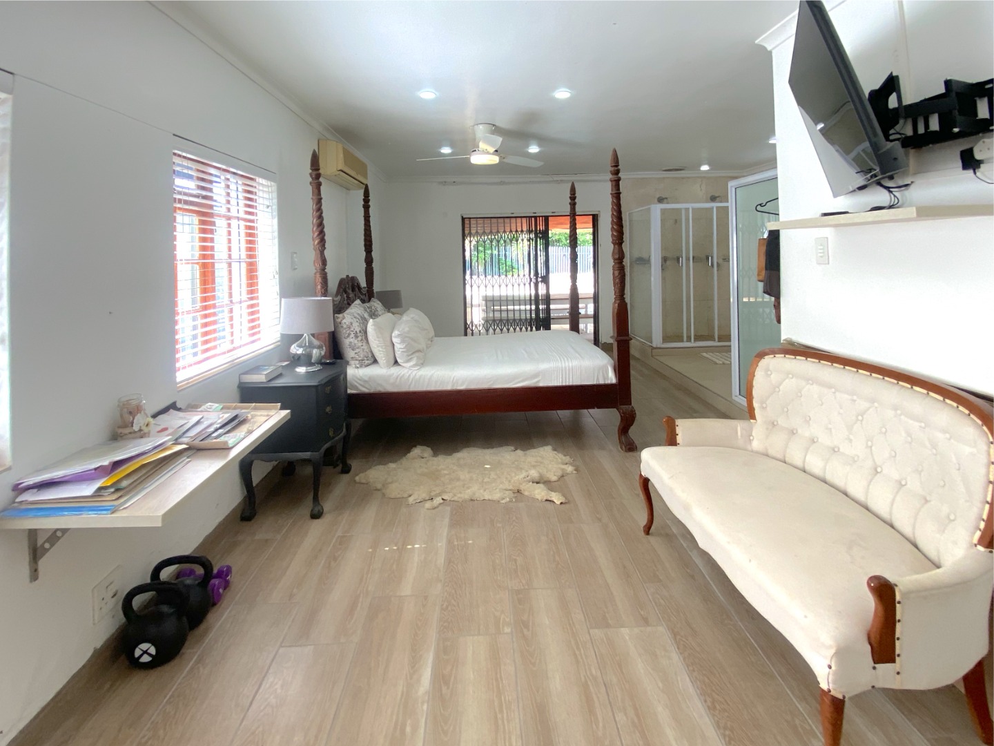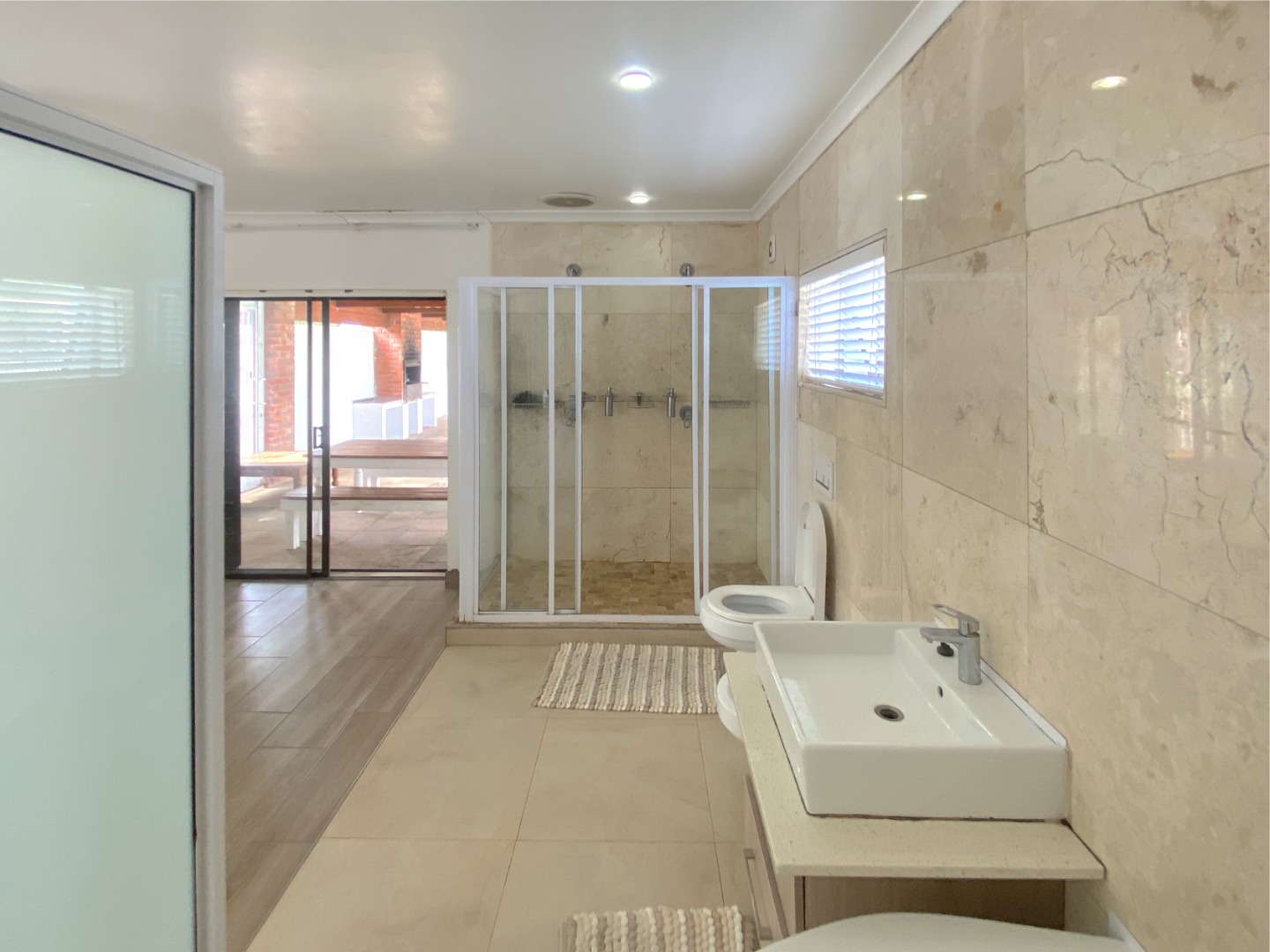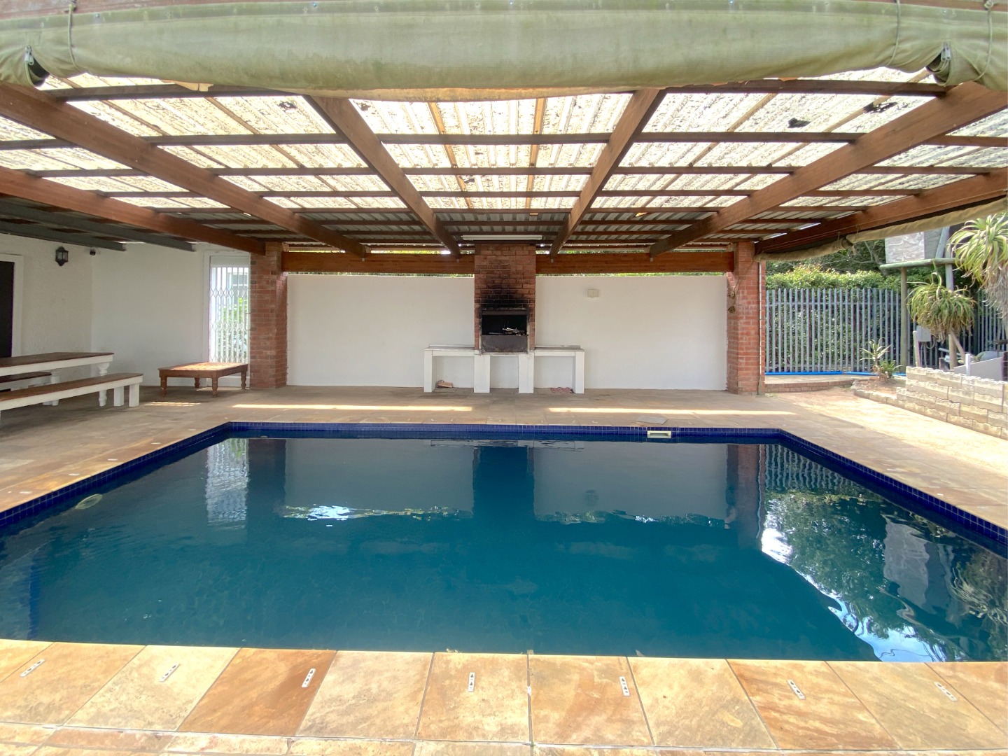 Outside, the property offers a covered pool area with a built-in braai, providing a practical space for relaxed weekends and gatherings. The yard is spacious and easy to maintain, with room for kids and pets.