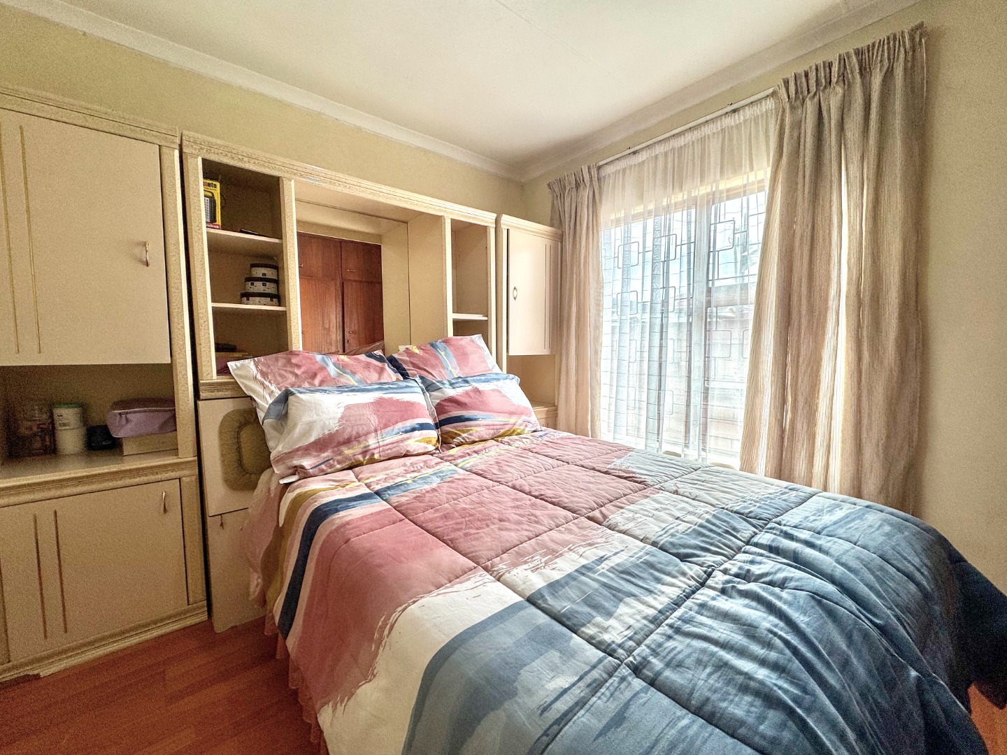 This well-maintained home offers comfortable living with three generously sized bedrooms, all featuring built-in cupboards and lovely natural light throughout.