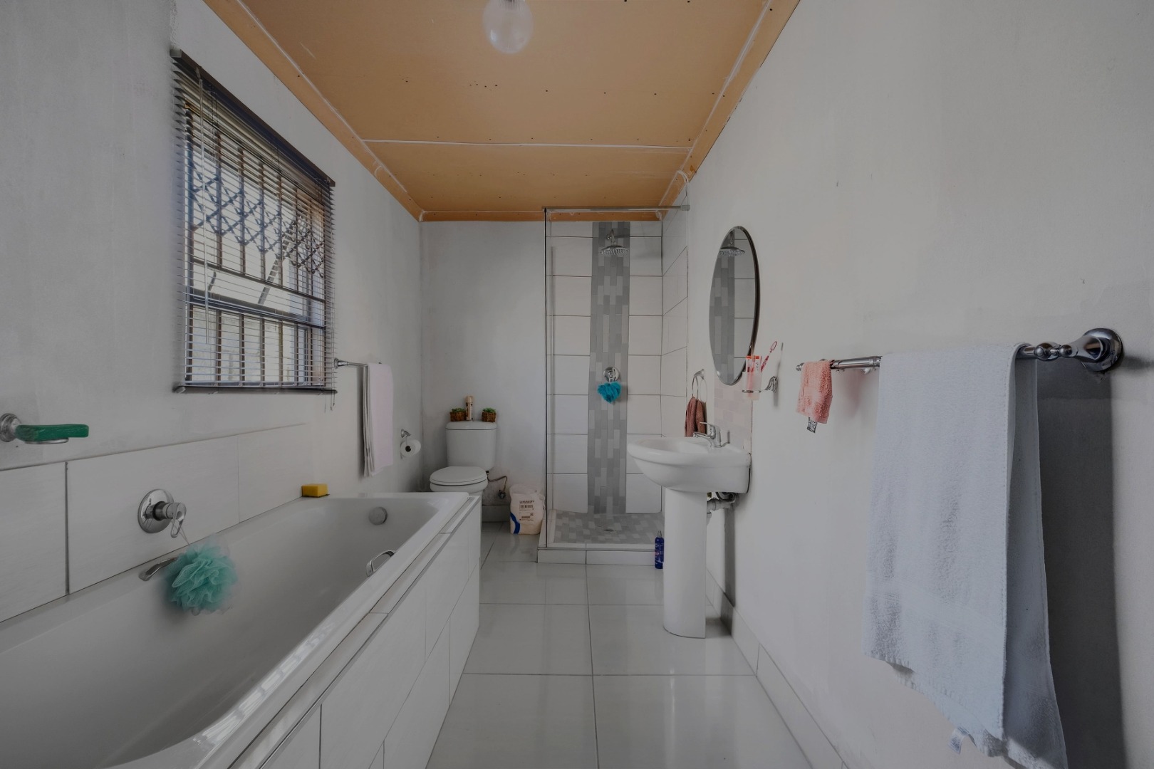 The bathroom is neatly fitted with a bath, shower, toilet, and basin – catering to both quick weekday routines and relaxed evening soaks.