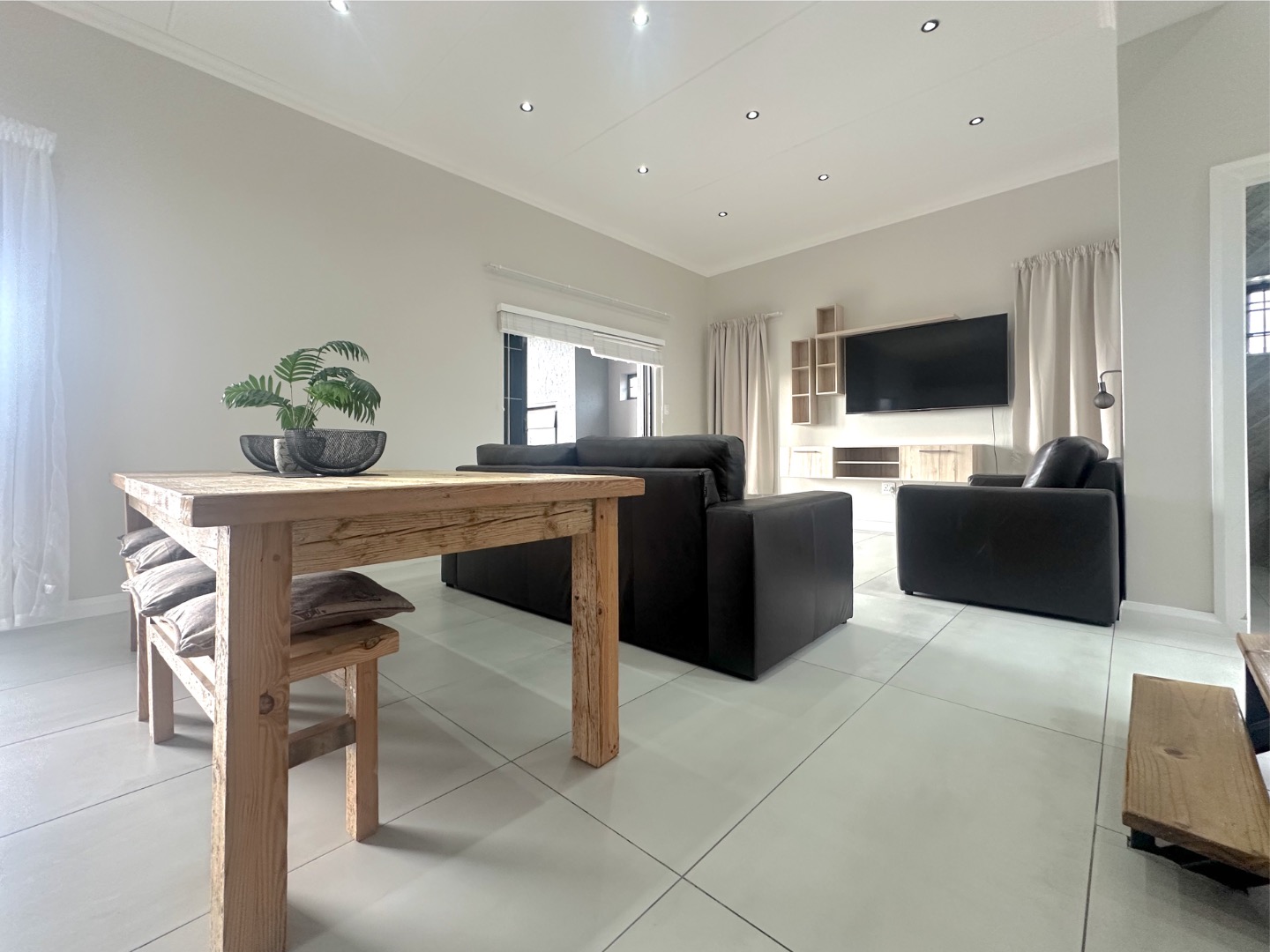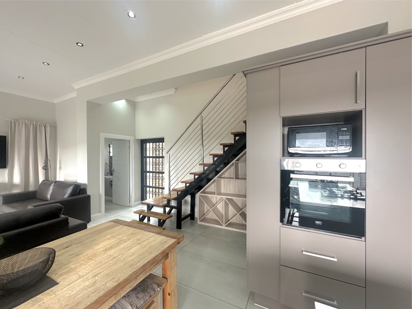 This upmarket, double-volume residence offers the perfect blend of luxury, space, and style. Boasting three spacious bedrooms, all with built-in cupboards and private access to a balcony showcasing panoramic views over the city, this home is designed for modern living.