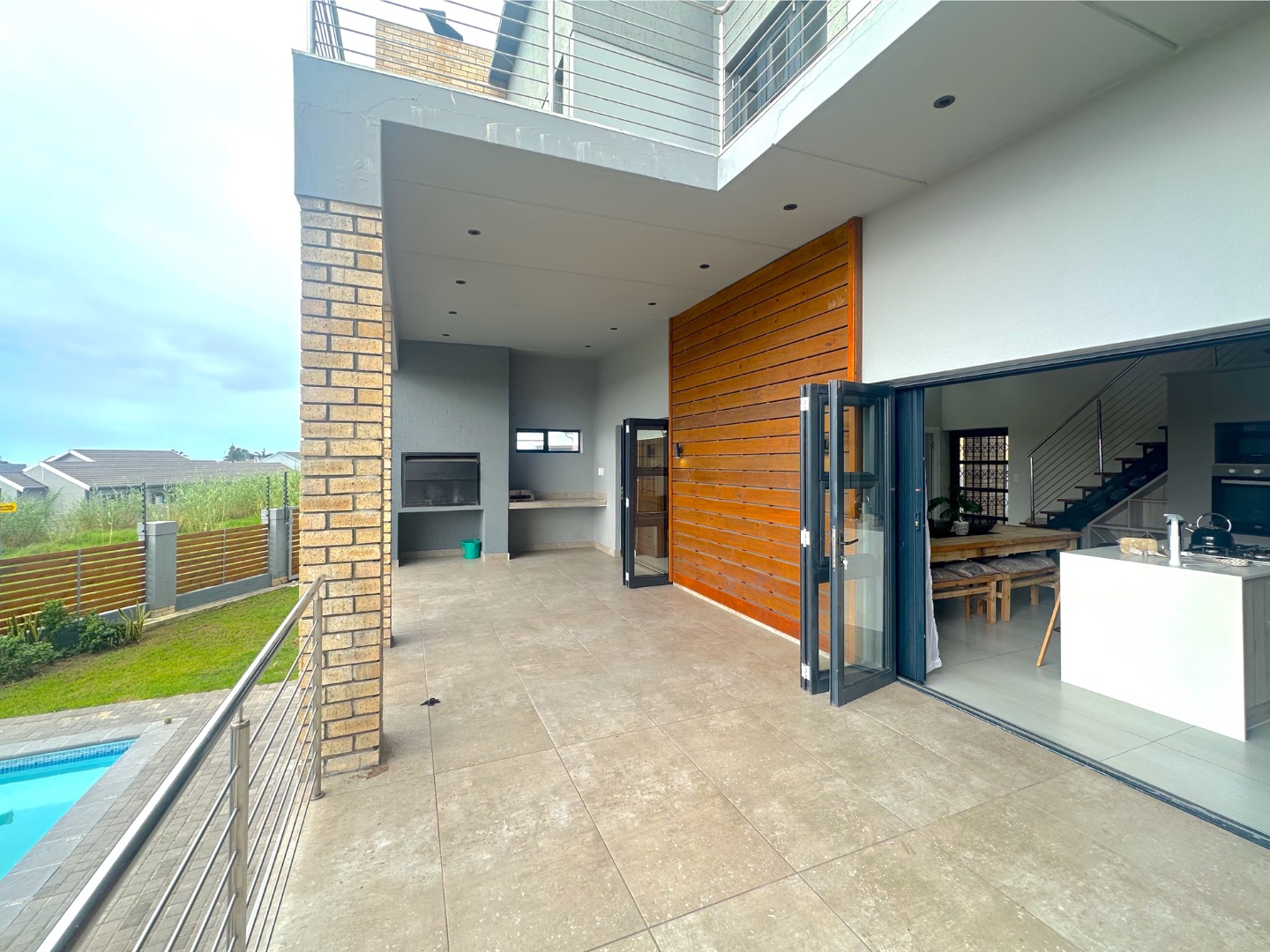 Entertain effortlessly with a large ground-floor balcony featuring a built-in braai, overlooking a sparkling swimming pool—ideal for summer gatherings. Additional highlights include:
